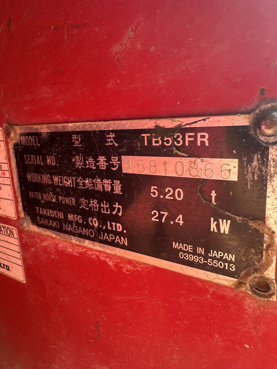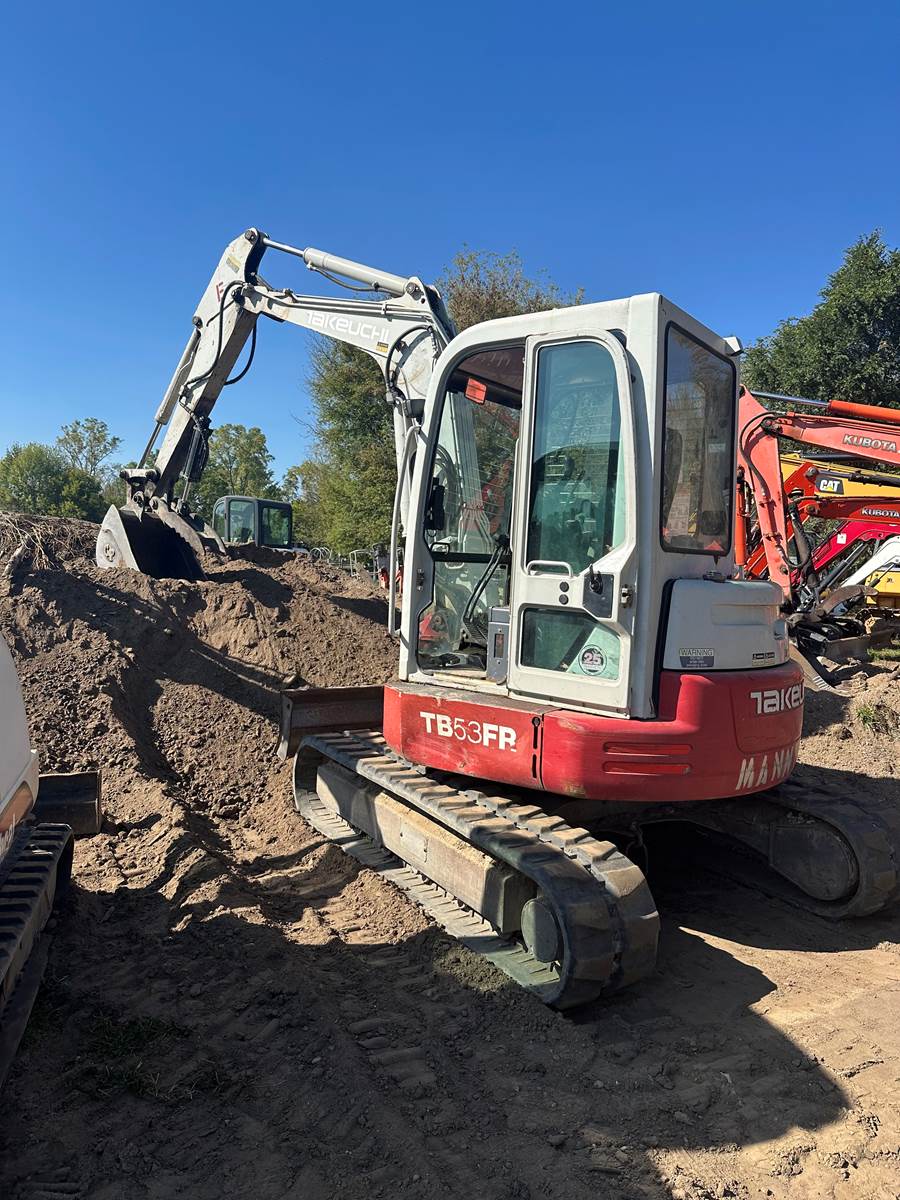 2013 Takeuchi TB53FR, Cab, Heat, Radio, 4263 hours, Hydraulic thumb, 78” blade, Yanmar diesel engine, Runs and operates great, Ready for work