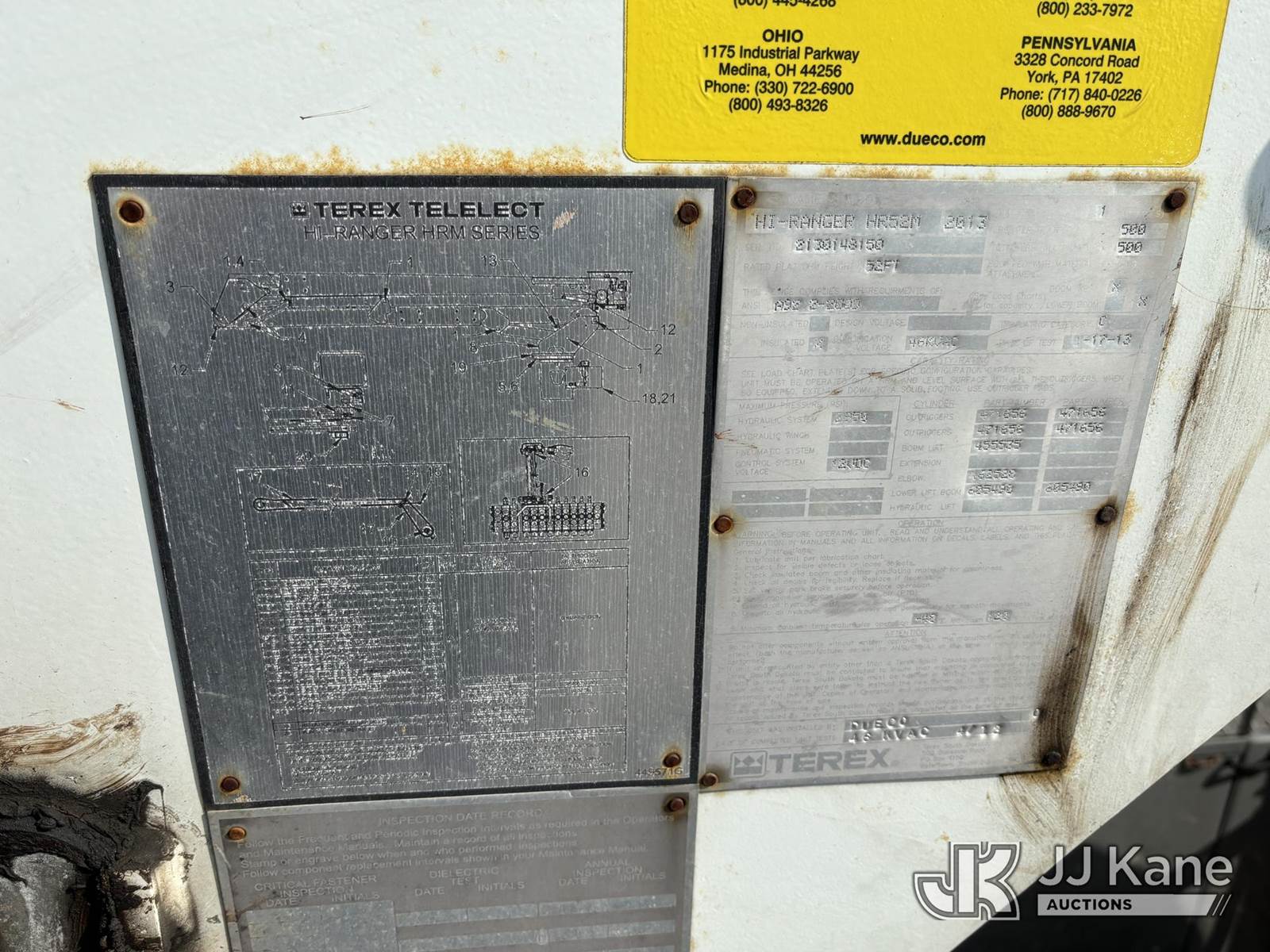 Terex/Hi-Ranger HR-52M, 57 ft, Material Handling Bucket Truck s/n 2130148150, with single-man bucket, center mounted on 2013 Freightliner M2 106 Extended-Cab Utility Truck, 6.7L Auto, diesel, A/C, (62,351 miles) (Runs Moves & Upper Operates, Body Damage) This is a Titled Item NOTE: This unit is being sold AS IS/WHERE IS via Timed Auction and is located in Plymouth Meeting, PA. Inspection & preview days for this unit are the 2 business days prior to the first day of items closing for this auction, item is located at 1402 Conshohocken Rd Plymouth Meeting, PA 19462 and hours of operations are 8a-4p. For pre-sale questions, please contact Bruce Thomas at bruce.thomas.jr@jjkane.com. REMOVAL: 10 days after the sale, Wednesday thru Friday 10 days (Excluding Saturday & Sunday. Excluding Holidays, Yard is closed Weekends) All items must be removed by the 10th day or a storage fee of $25 per item /per day will be applied. (Missing manuals, See Auction Company for Manufacturers Information to obtain manuals) (Buyer is responsible for removal. Assistance by consignor or JJ Kane Auctioneers is not assured.)