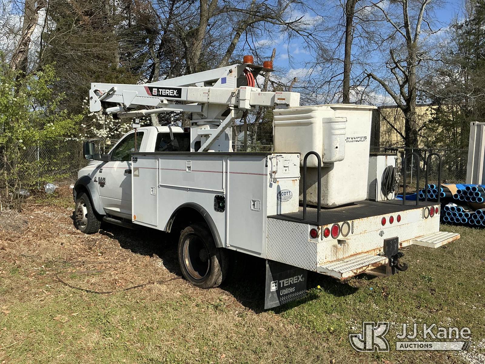 Terex/HiRanger LT40, 45 ft, Articulating & Telescopic Bucket Truck s/n 2140451632, with single-man bucket, mounted behind cab on 2013 RAM 5500 4x4 Service Truck, Cummins 6.7L diesel, Auto, A/C, (148,551 miles) (Not Running, Condition Unknown, Upper Condition Unknown) (Per Seller: Blown Motor) This is a Titled Item NOTE: This unit is being sold AS IS/WHERE IS via Timed Auction and is located in Piedmont, SC. Inspection & preview days for this unit are by appointment only; please contact us at contact@jjkane.com or 84-Go-JJKane for more details. (Missing manuals, See Auction Company for Manufacturers Information to obtain manuals) (Buyer is responsible for removal. Assistance by consignor or JJ Kane Auctions is not assured.)