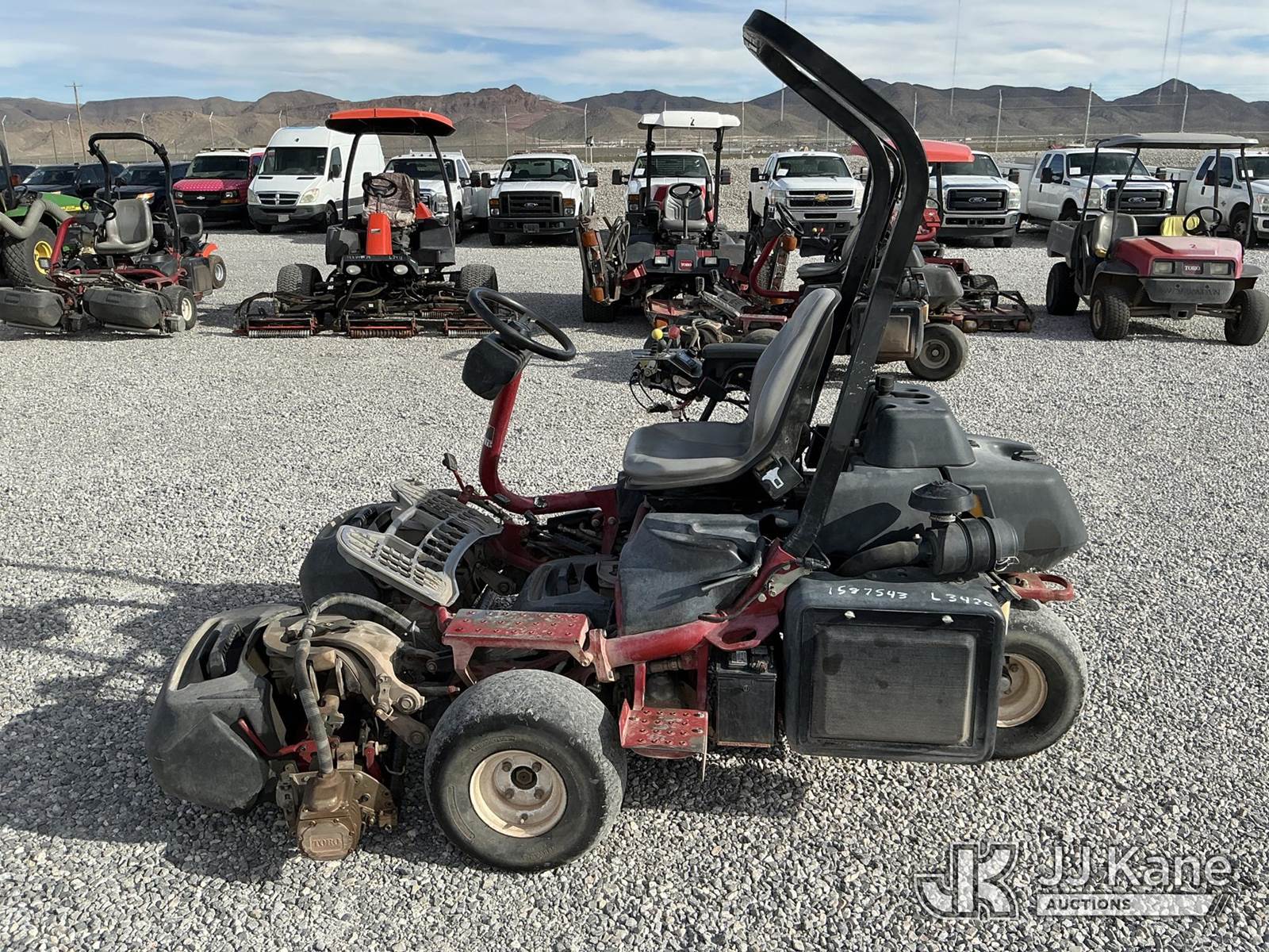 2013 Toro Greensmaster 3420 TriFlex Zero Turn Riding Mower, s/n 315000571, diesel, Hydrostatic, (Runs & Moves) (Reads 5,422 hours) NOTE: This unit is being sold AS IS/WHERE IS via Timed Auction and is located in Las Vegas, NV. Inspection & preview days for this unit are the 2 business days prior to the first day of items closing for this auction, item is located at 14655 Grand Valley Pkwy Las Vegas, NV 89165 and hours of operations are 8a-4p. Titles executed exactly as bidder registered. Ensure your name and/or business name and address in JJ Kane and/or ProxiBid is correct before bidding. For pre-sale questions, please contact Office Staff @ (801) 519-0123 and provide sale date and lot number. Las Vegas Dealer License Number DLR000053086 / OHV000053094. (Buyer is responsible for removal. Assistance by consignor or JJ Kane Auctions is not assured.)