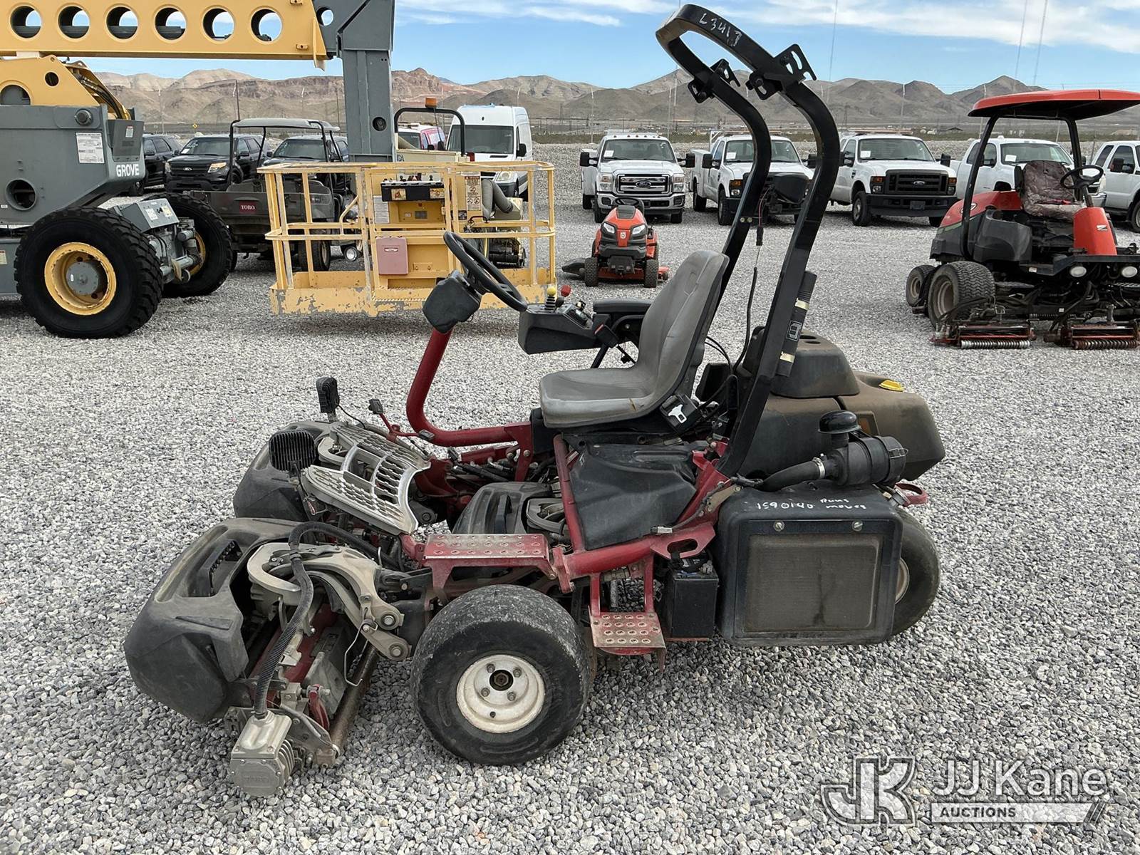 2013 Toro Greensmaster 3420 Triflex Zero Turn Riding Mower, s/n 313000161, diesel, Hydrostatic, (Runs & Moves) ( Display Not Working Can Not Verify Hours) (Seller States: Approx. 5229 Hrs.) NOTE: This unit is being sold AS IS/WHERE IS via Timed Auction and is located in Las Vegas, NV. Inspection & preview days for this unit are the 2 business days prior to the first day of items closing for this auction, item is located at 14655 Grand Valley Pkwy Las Vegas, NV 89165 and hours of operations are 8a-4p. Titles executed exactly as bidder registered. Ensure your name and/or business name and address in JJ Kane and/or ProxiBid is correct before bidding. For pre-sale questions, please contact Office Staff @ (801) 519-0123 and provide sale date and lot number. Las Vegas Dealer License Number DLR000053086 / OHV000053094. (Buyer is responsible for removal. Assistance by consignor or JJ Kane Auctions is not assured.)