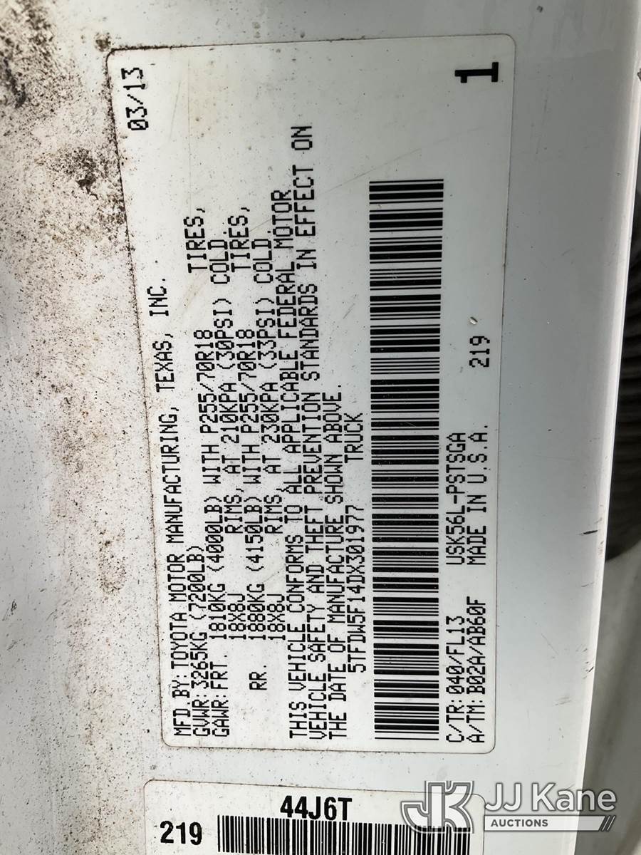 2013 Toyota Tundra Crew-Cab Pickup Truck, 5.7L V8 4wd, gas, Automatic, A/C, (218,755 miles) (Runs & Moves, Engine Noise) (Exhaust Leak & Chipped Windshield) This is a Titled Item NOTE: This unit is being sold AS IS/WHERE IS via Timed Auction and is located in Wells, ME. Inspection & preview days for this unit are by appointment only; please contact us at contact@jjkane.com or 84-Go-JJKane for more details. (Buyer is responsible for removal. Assistance by consignor or JJ Kane Auctions is not assured.)