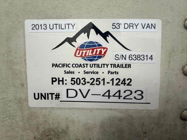 2013 UTILITY 53 ft Dry Van Trailer - Swing Door, Spring, Quad Axle, Fixed Axle