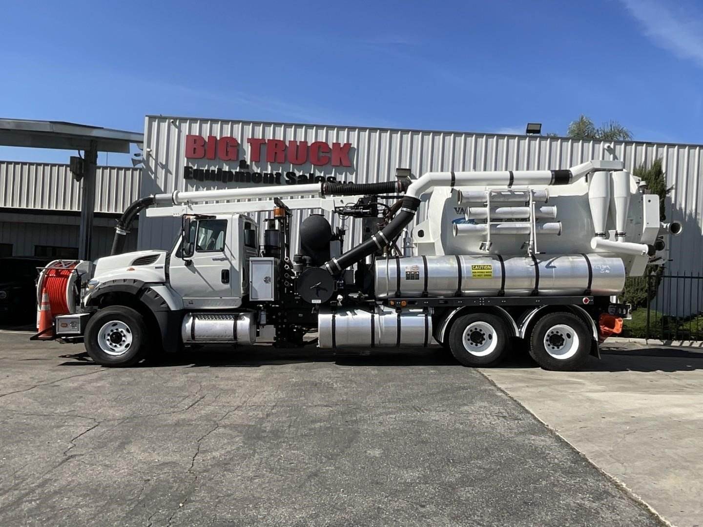2013 International 7600 Vactor 2100 Plus Hydro Excavation Truck, MaxxForce 13 @ 430 HP, Eaton Fuller 10 Speed, A/C, Air Brakes, 3 Stage Engine Brake, Vactor 2100 Plus Hydro Excavation Vacuum, Roots 824RCSV-16 PD Blower @ 1,847 Hours, 12 Cubic Yard Debris Tank, 8″ Suction Hose, 180 Deg. 8FT Telescoping Boom, 80 GPM 2,500 PSI Water Pump @ 1,414 Hours, Front Mounted 1″ Jetter Hose Reel, New 600′ Of 1″ Front Jetter Hose, Mid Ship Wash Down Gun, Hydro Excavation Hose Reel, 1,500 Gallon Water Capacity, Accumulator, Debris Body Wash Out, Wired Remote, 20K Front, 46K Rears, 66,000 GVWR, Ex-City Unit, 7,221 Total Truck Hours, Odometer Reading 53,998 Miles