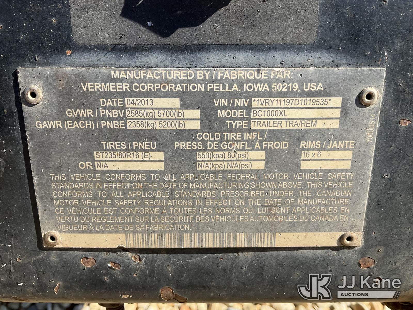 2013 Vermeer BC1000XL Chipper (12in Drum), diesel, (Engine Turns Over But Does Not Start) (Key Missing, Needs Engine/Drum Work) (Reads 1,054 hours) This is a Titled Item NOTE: This unit is being sold AS IS/WHERE IS via Timed Auction and is located in Robert, LA. Inspection & preview days for this unit are by appointment only; please contact us at contact@jjkane.com or 84-Go-JJKane for more details. License # LA AB-154 (Buyer is responsible for removal. Assistance by consignor or JJ Kane Auctioneers is not assured.)