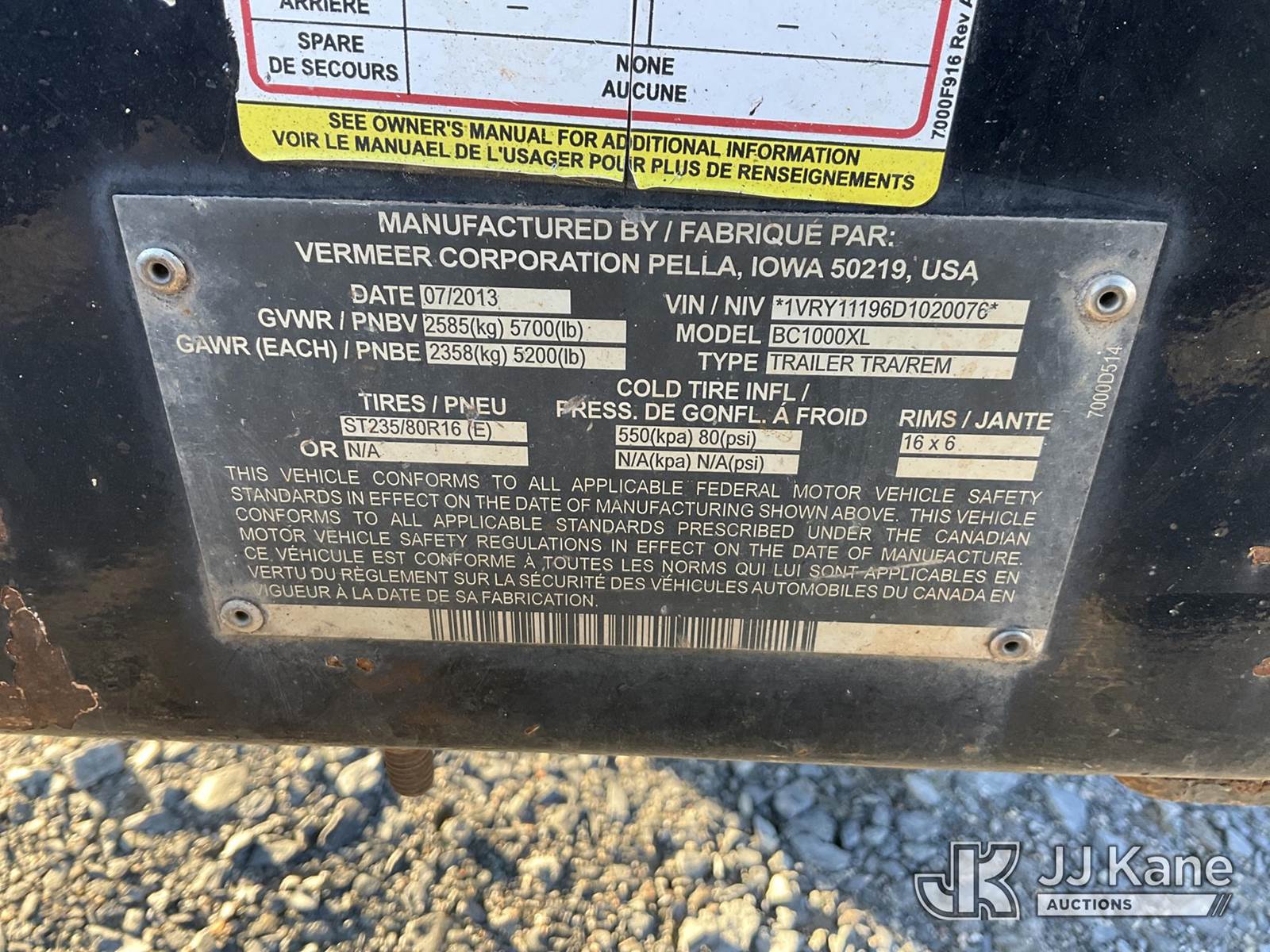 2013 Vermeer BC1000XL Chipper (12in Drum), s/n 1VRY11196D1020076, Cummins 3.3L diesel, (Certificate of Origin No Title. Not Running, Condition Unknown) (Seller States: Injection Pump Out, Can't Get Parts) NOTE: This unit is being sold AS IS/WHERE IS via Timed Auction and is located in China Grove, NC. Inspection & preview days for this unit are the 2 business days prior to the first day of items closing for this auction, item is located at 820 E NC Hwy 152 China Grove, NC 28023 and hours of operations are 8a-4p. For pre-sale questions, please contact Office Staff @ (704) 674-1113. (Buyer is responsible for removal. Assistance by consignor or JJ Kane Auctions is not assured.)