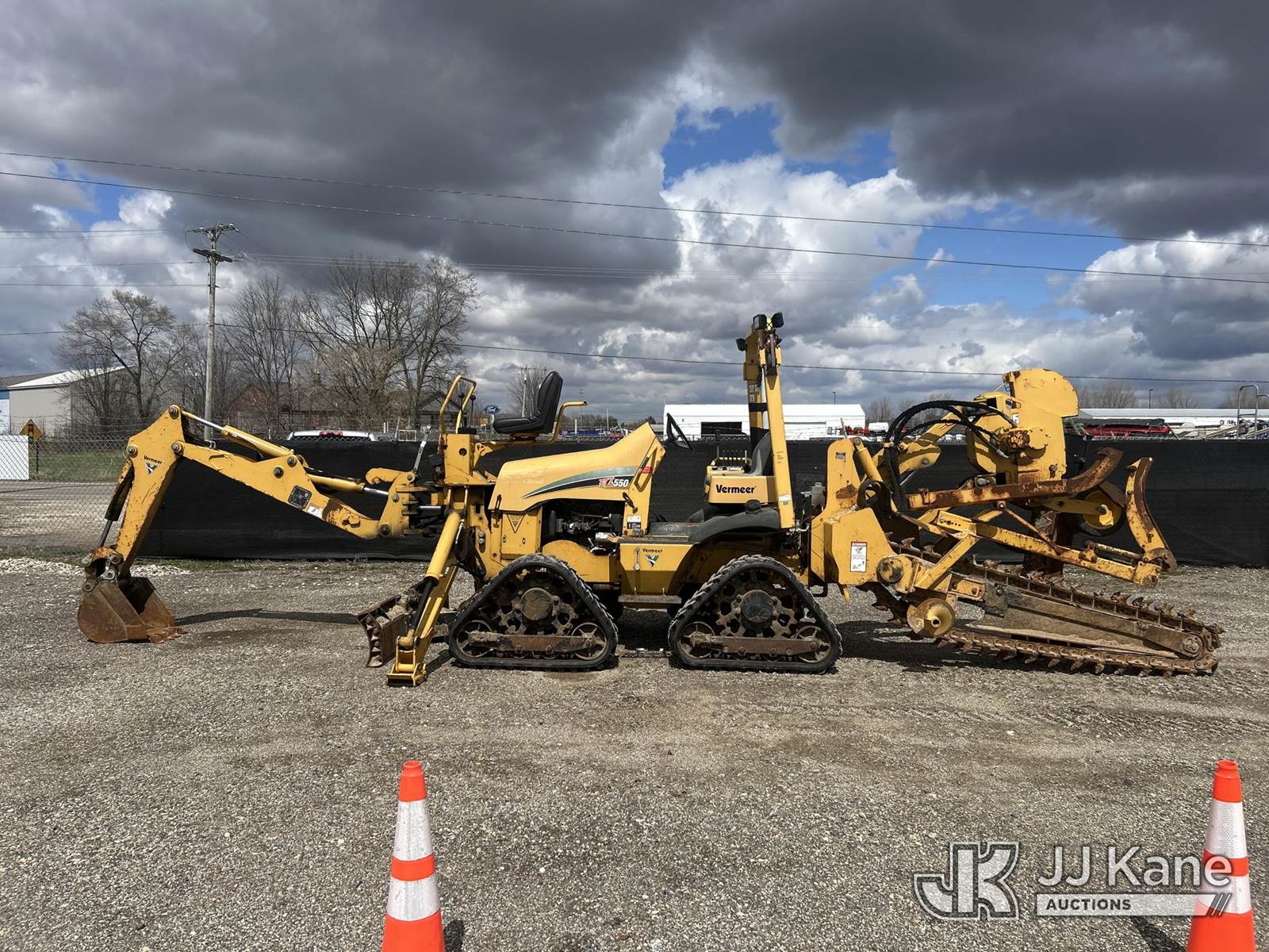2013 Vermeer RTX550 Combo Trencher/Vibratory Cable Plow, s/n 1VR910256D1000355, 4-cyl, diesel, Hydraulic Driven, with rubber tracks, 6-way backfill blade, and backhoe attachment, (Runs, Moves, & Operates) (Reads 1,785 hours) NOTE: This unit is being sold AS IS/WHERE IS via Timed Auction and is located in Charlotte, MI. Inspection & preview days for this unit are the 2 business days prior to the first day of items closing for this auction, item is located at 750 Island Hwy Charlotte, MI 48813 and hours of operations are 8a-4p. For pre-sale questions, please contact Corey Cook at (517) 983-0796 or corey.cook@jjkane.com (Buyer is responsible for removal. Assistance by consignor or JJ Kane Auctions is not assured.)