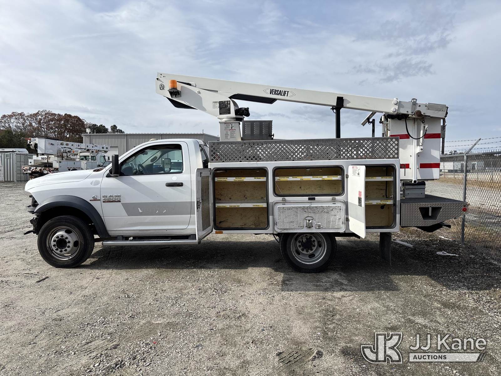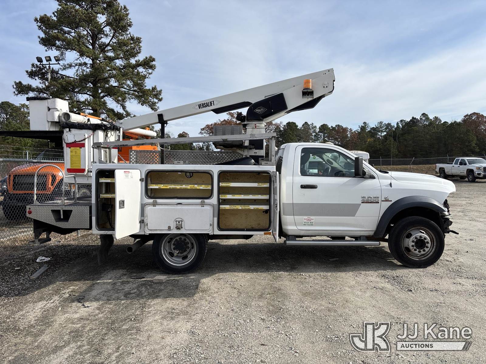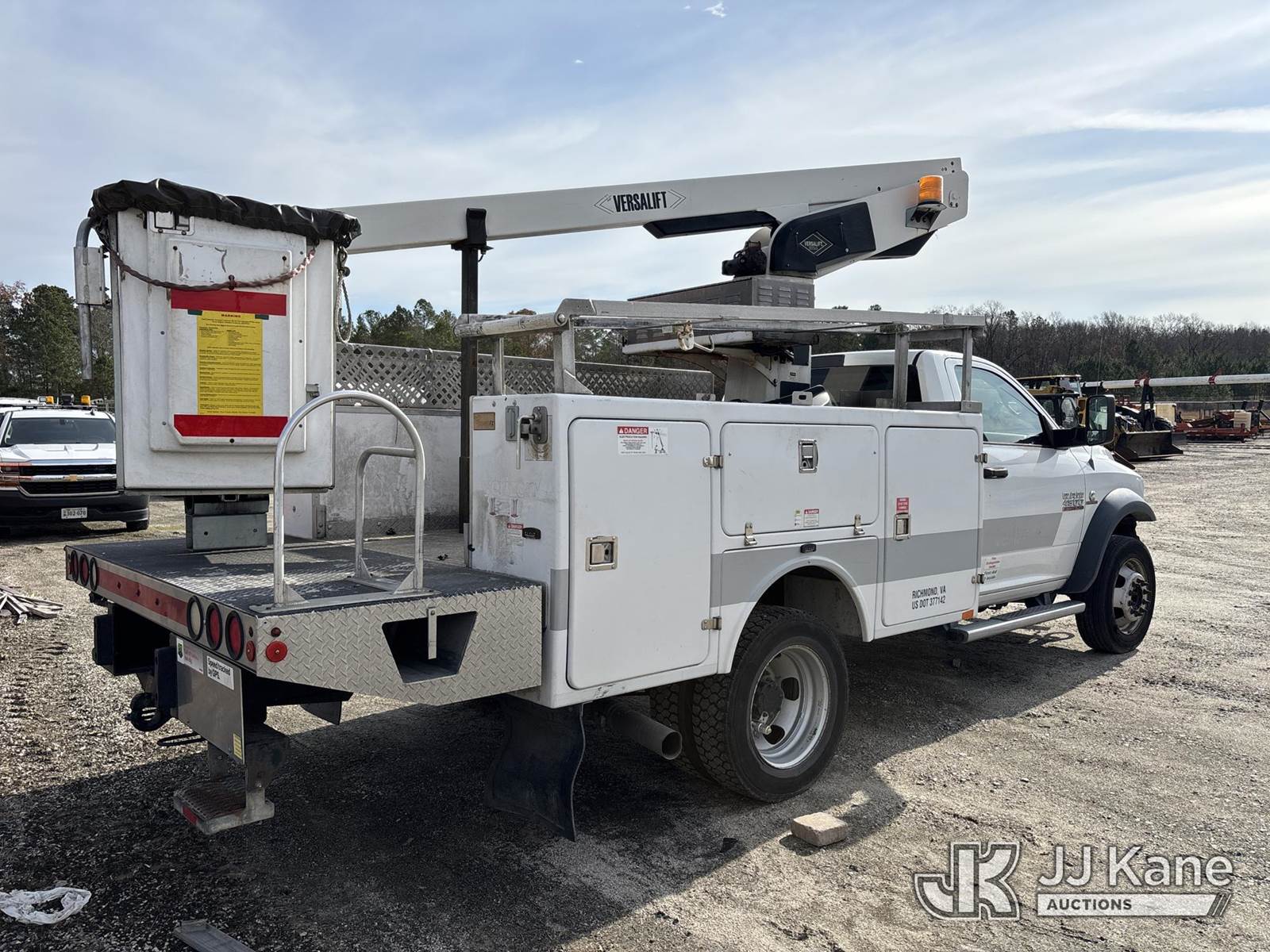 Versalift TEL29N-03, 34 ft, Telescopic Non-Insulated Bucket Truck s/n AG130835, with single-man bucket, mounted behind cab on 2013 Ram 4500 Service Truck, Cummins 6.7L diesel, Auto, (174,159 miles) (Not Running, Condition Unknown, Upper Condition Unknown, Unit Missing Grill, Front Bumper, Headlights, Must Be Towed ) (Buyer Responsible for Pickup) This is a Titled Item NOTE: This unit is being sold AS IS/WHERE IS via Timed Auction and is located in Chester, VA. Inspection & preview days for this unit are the 2 business days prior to the first day of items closing for this auction, item is located at 13301 Great Coastal Dr Chester, VA 23836 and hours of operations are 8a-4p. For pre-sale questions, please contact Chandler Blanton @ 804-807-4574. (Missing manuals, See Auction Company for Manufacturers Information to obtain manuals) (Buyer is responsible for removal. Assistance by consignor or JJ Kane Auctioneers is not assured.)