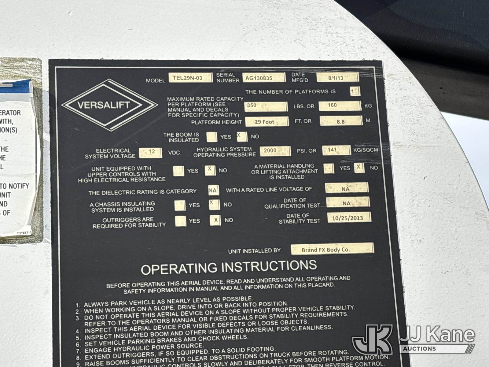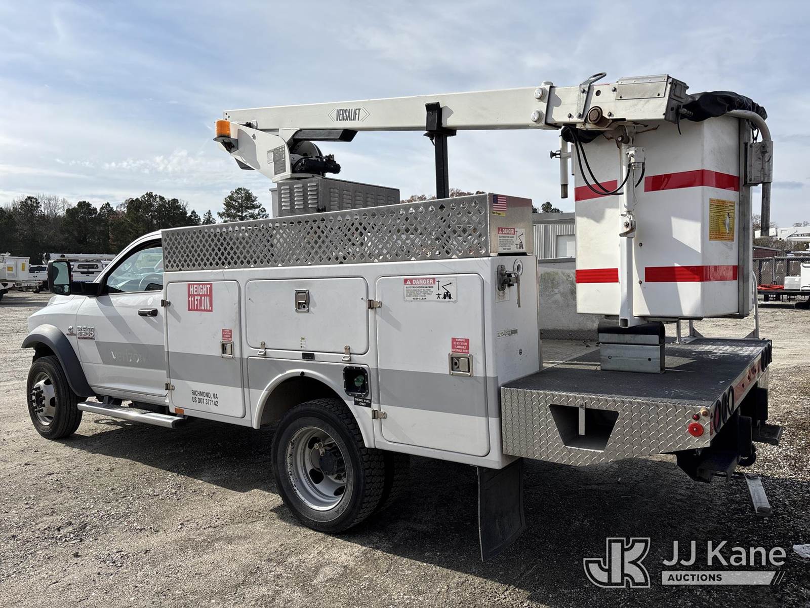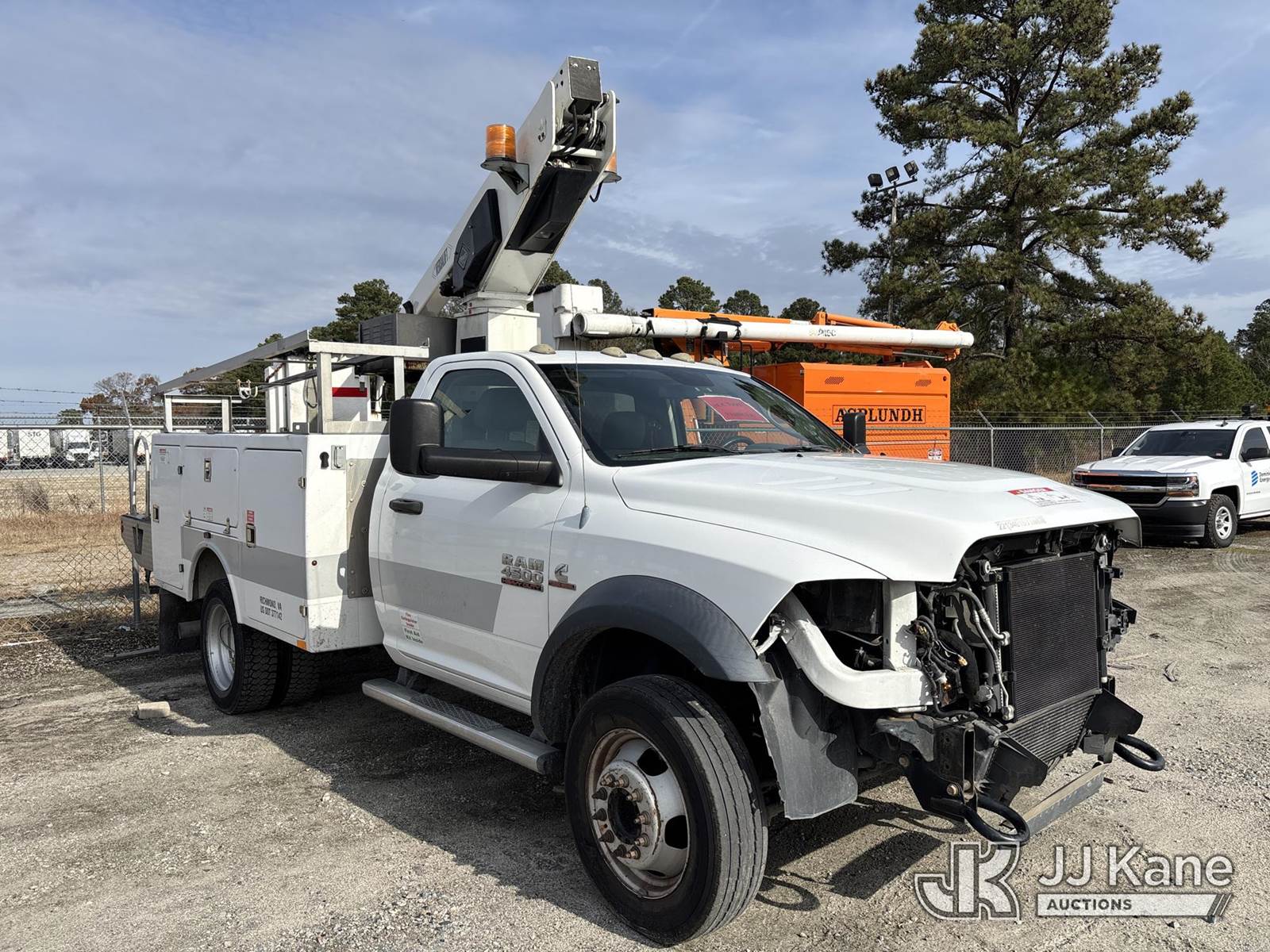 Versalift TEL29N-03, 34 ft, Telescopic Non-Insulated Bucket Truck s/n AG130835, with single-man bucket, mounted behind cab on 2013 Ram 4500 Service Truck, Cummins 6.7L diesel, Auto, (174,159 miles) (Not Running, Condition Unknown, Upper Condition Unknown, Unit Missing Grill, Front Bumper, Headlights, Must Be Towed ) (Buyer Responsible for Pickup) This is a Titled Item NOTE: This unit is being sold AS IS/WHERE IS via Timed Auction and is located in Chester, VA. Inspection & preview days for this unit are the 2 business days prior to the first day of items closing for this auction, item is located at 13301 Great Coastal Dr Chester, VA 23836 and hours of operations are 8a-4p. For pre-sale questions, please contact Chandler Blanton @ 804-807-4574. (Missing manuals, See Auction Company for Manufacturers Information to obtain manuals) (Buyer is responsible for removal. Assistance by consignor or JJ Kane Auctioneers is not assured.)