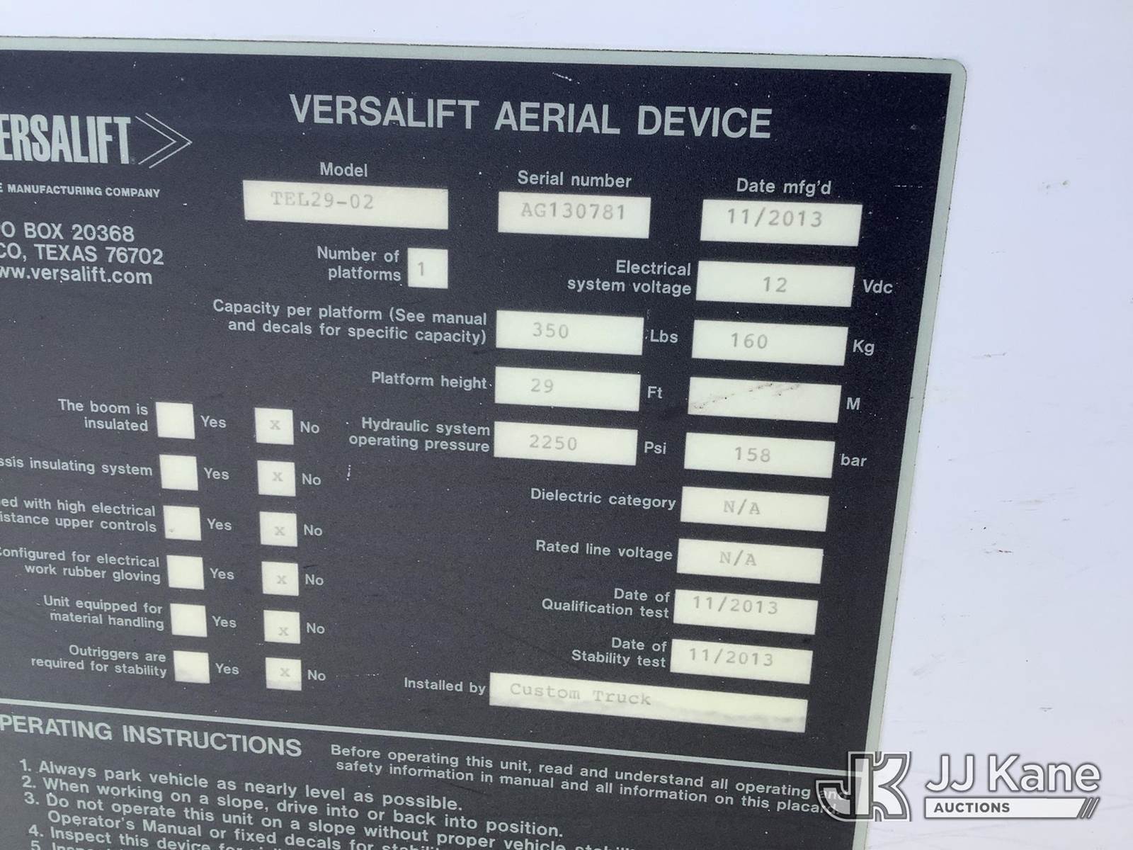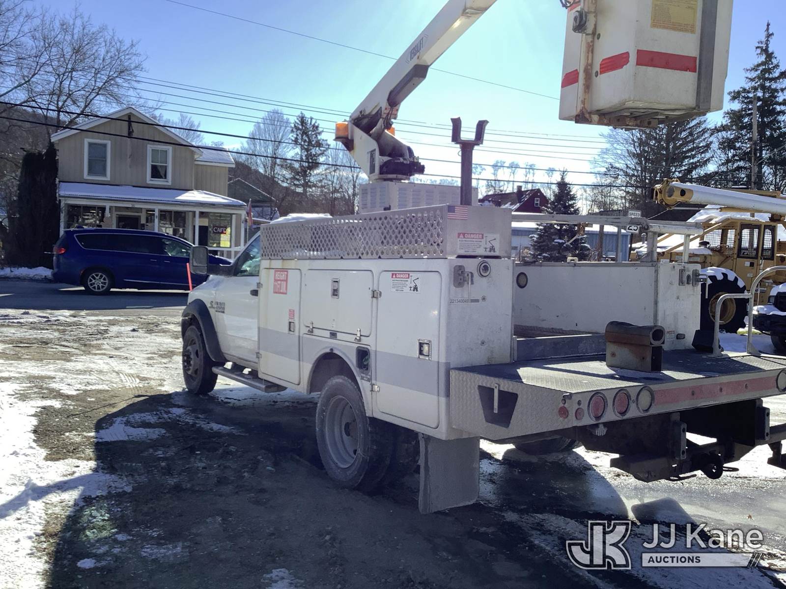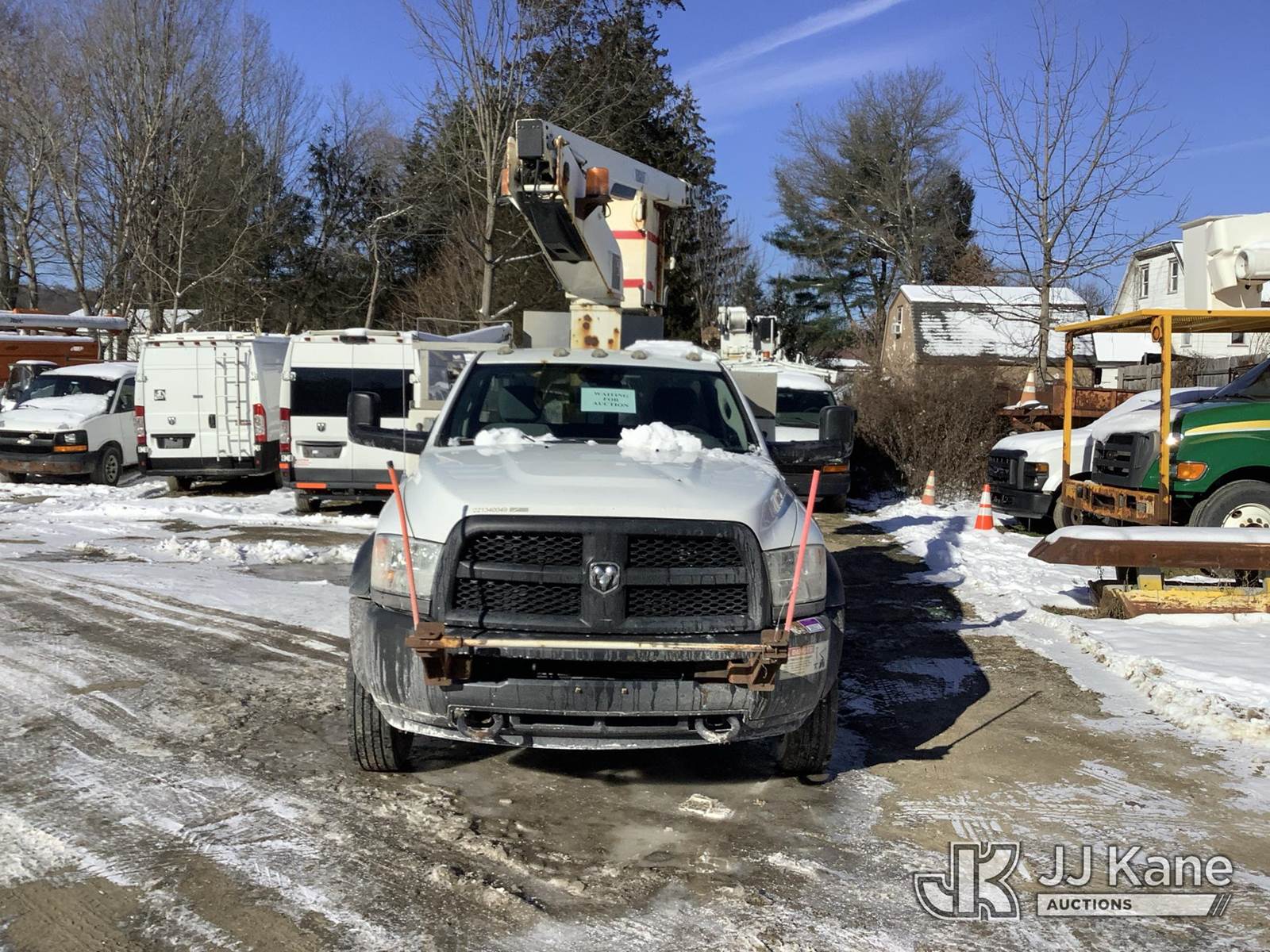 Versalift TEL29N02, 34 ft, Telescopic Non-Insulated Bucket Truck s/n AG130781, with single-man bucket, mounted behind cab on 2013 Ram 4500 Service Truck, 6.7L diesel, Auto, A/C, (188,537 miles) (Runs, Moves & Upper Operates) (Oil Pan Leak, Coolant Leak, No Heat, DEF Level Issues, Body/Rust Damage) This is a Titled Item NOTE: This unit is being sold AS IS/WHERE IS via Timed Auction and is located in Deposit, NY. Inspection & preview days for this unit are by appointment only; please contact us at contact@jjkane.com or 84-Go-JJKane for more details. (Missing manuals, See Auction Company for Manufacturers Information to obtain manuals) (Buyer is responsible for removal. Assistance by consignor or JJ Kane Auctions is not assured.)