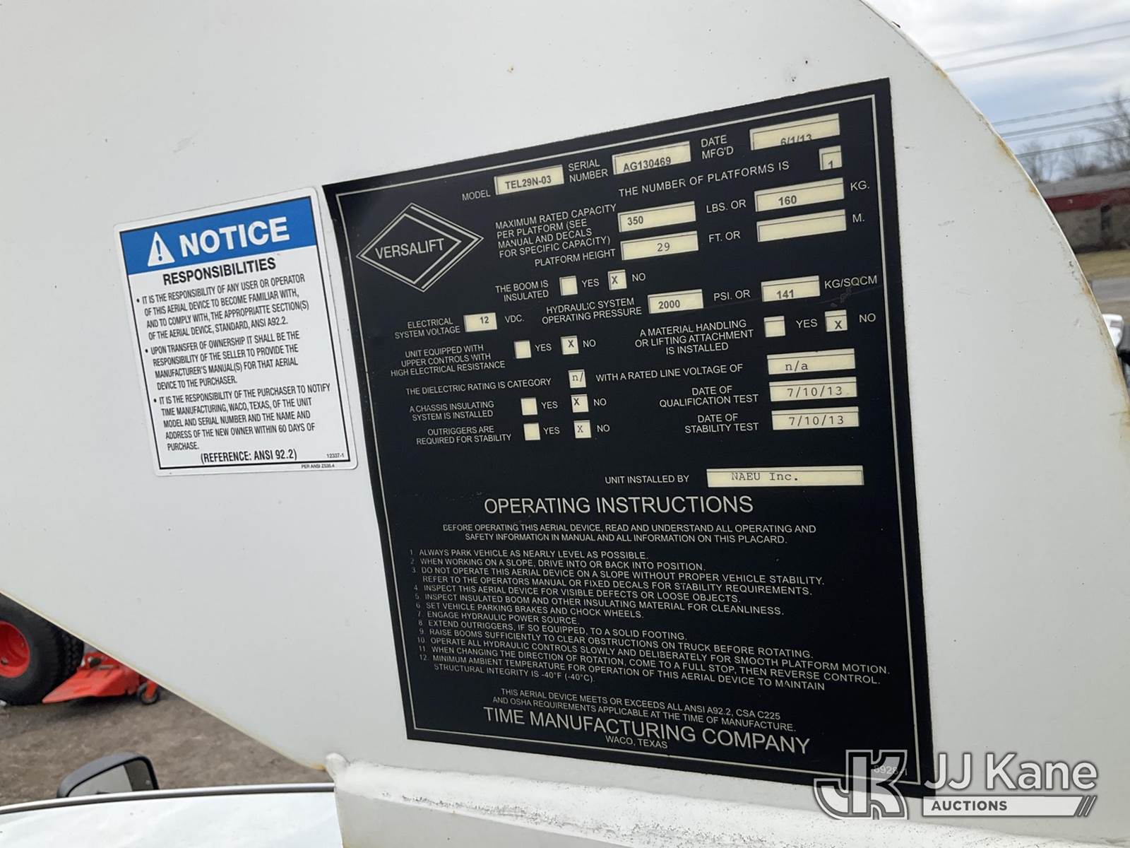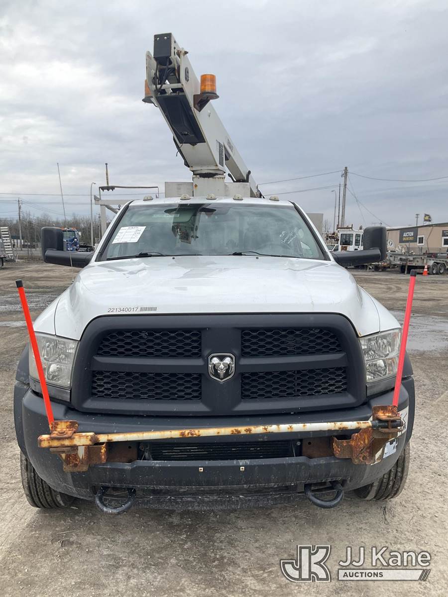 Versalift TEL29N03, 34 ft, Telescopic Non-Insulated Bucket Truck s/n AG130469, with Single Man Bucket , mounted behind cab on 2013 RAM 4500 Service Truck, Cummins 6.7L diesel, Auto, A/C, (71,734 miles) (Runs, Moves & Upper Operates, Low Coolant Light On) This is a Titled Item NOTE: This unit is being sold AS IS/WHERE IS via Timed Auction and is located in Rome, NY. Inspection & preview days for this unit are the 2 business days prior to the first day of items closing for this auction, item is located at 5835 Success Dr Rome, NY 13440 and hours of operations are 8a-4p. For pre-sale questions, please contact Ryan Jackson @ (315) 749-3790 or Ryan.Jackson@jjkane.com. (Manuals provided in cab) (Buyer is responsible for removal. Assistance by consignor or JJ Kane Auctions is not assured.)