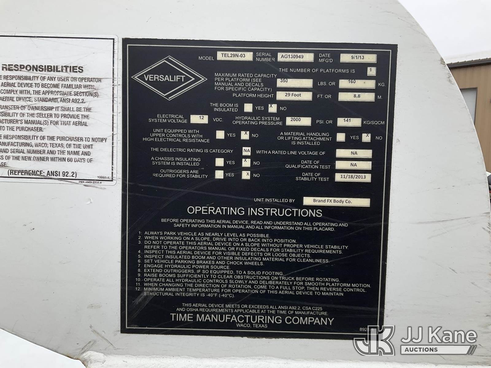 Versalift TEL29N03, 34 ft, Telescopic Non-Insulated Bucket Van s/n AG130949, with Single Man Bucket, mounted on 2013 RAM 4500 Service Truck, 6.7L L6 Diesel, Auto, A/C, (164,773 miles) (Runs, Moves & Operates, Check Engine & ABS LIghts On) (Removal is by Appointment Only, Buyer MUST make a appointment prior to picking up, Buyer/Transporter Must have PAID IN FULL RELEASE. No onsite assistance available, Please Come prepared.) (Reads 775 hours) This is a Titled Item NOTE: This unit is being sold AS IS/WHERE IS via Timed Auction and is located in Hagerstown, MD. Inspection & preview days for this unit are by appointment only; please contact us at contact@jjkane.com or 84-Go-JJKane for more details. For pre-sale questions, please contact the on-site office @ (301) 895-7777 or Kevin.Waggoner@JJKane.com. (Manuals provided in cab) (Buyer is responsible for removal. Assistance by consignor or JJ Kane Auctions is not assured.)