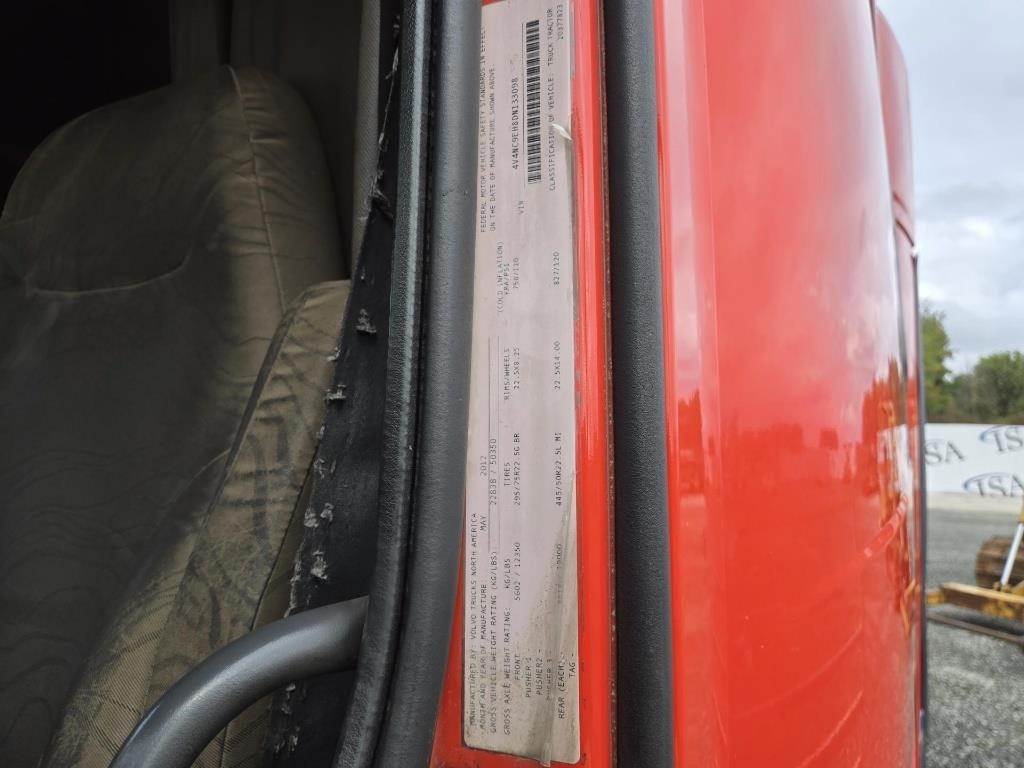 Location: ISA Yard: Merrill, WI Volvo D13 Turbo Diesel Engine, Volvo I-Shift Automatic Transmission, GVWR: 50350LB, 12350LB Front Axle, 38000LB Rears, Air Ride, Engine Brake, Differential Lock, Air Release Fifth Wheel Slide, Double Bunk, Rear Climate Controls, Heat, A/C, Radio, Cruise Control, Air Ride Seats, Power Passenger Window, Power Mirrors, Air Ride Seats, Full Aluminum Rims, 295/75R22.5 Front Tires, 275/80R22.5 and 295/75R22.5 Rear Tires, VIN: 4V4NC9EH8DN133098 Miles Shown: 1051056 Pickup Info: Integrity Sales & Auction LLC