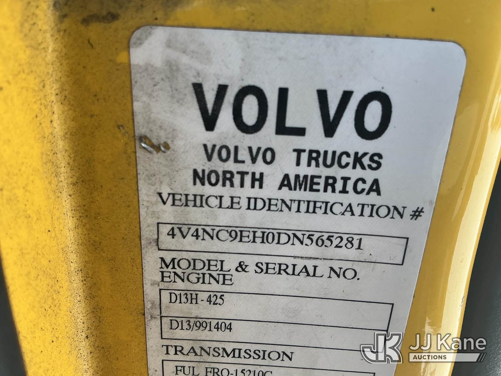 2013 Volvo VNL Truck Tractor, 12.8L L6 DIESEL 6X4, 12-spd, A/C, with sliding 5th wheel, (554,406 miles) (Runs & Moves) (Check Engine/ABS Lights On, Hood Latch Inoperable, Body/Paint Damage) This is a Titled Item NOTE: This unit is being sold AS IS/WHERE IS via Timed Auction and is located in Fort Wayne, IN. Inspection & preview days for this unit are the 2 business days prior to the first day of items closing for this auction, item is located at 3020 Commercial Rd Fort Wayne, IN 46809 and hours of operations are 8a-4p. For pre-sale questions, please contact Eric Mcintosh @ (260) 205-2483 (Buyer is responsible for removal. Assistance by consignor or JJ Kane Auctions is not assured.)