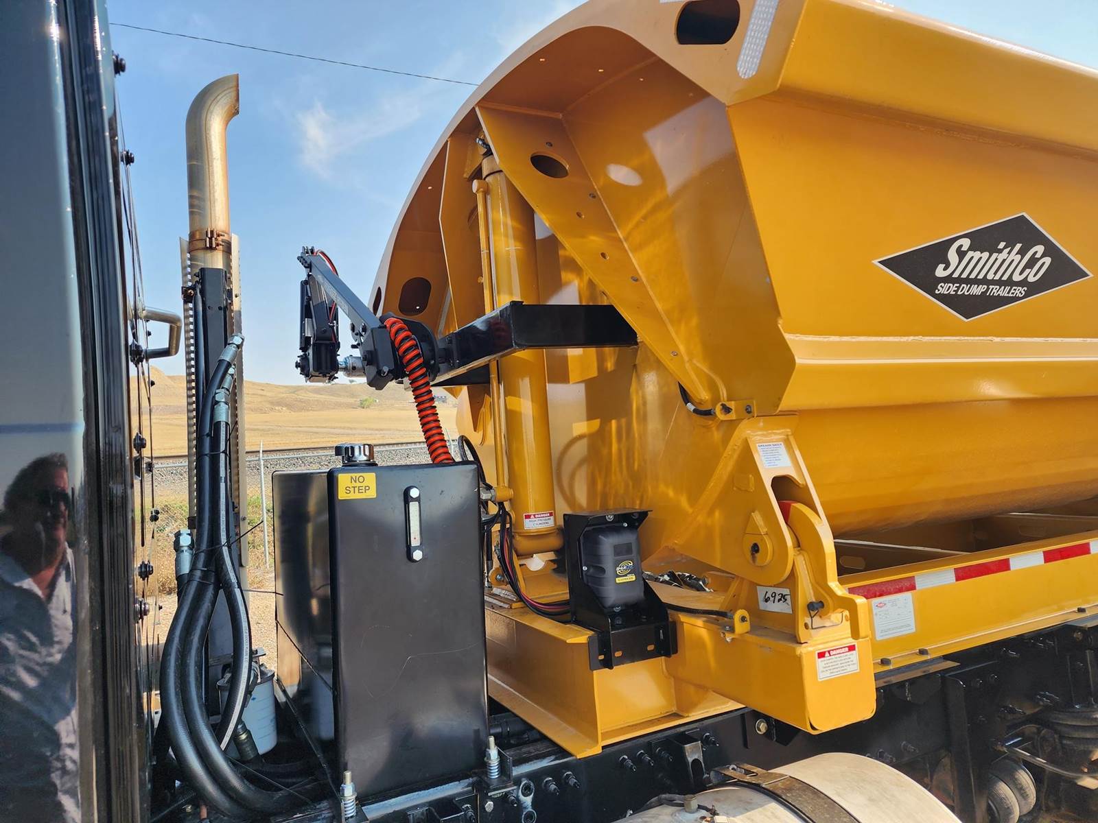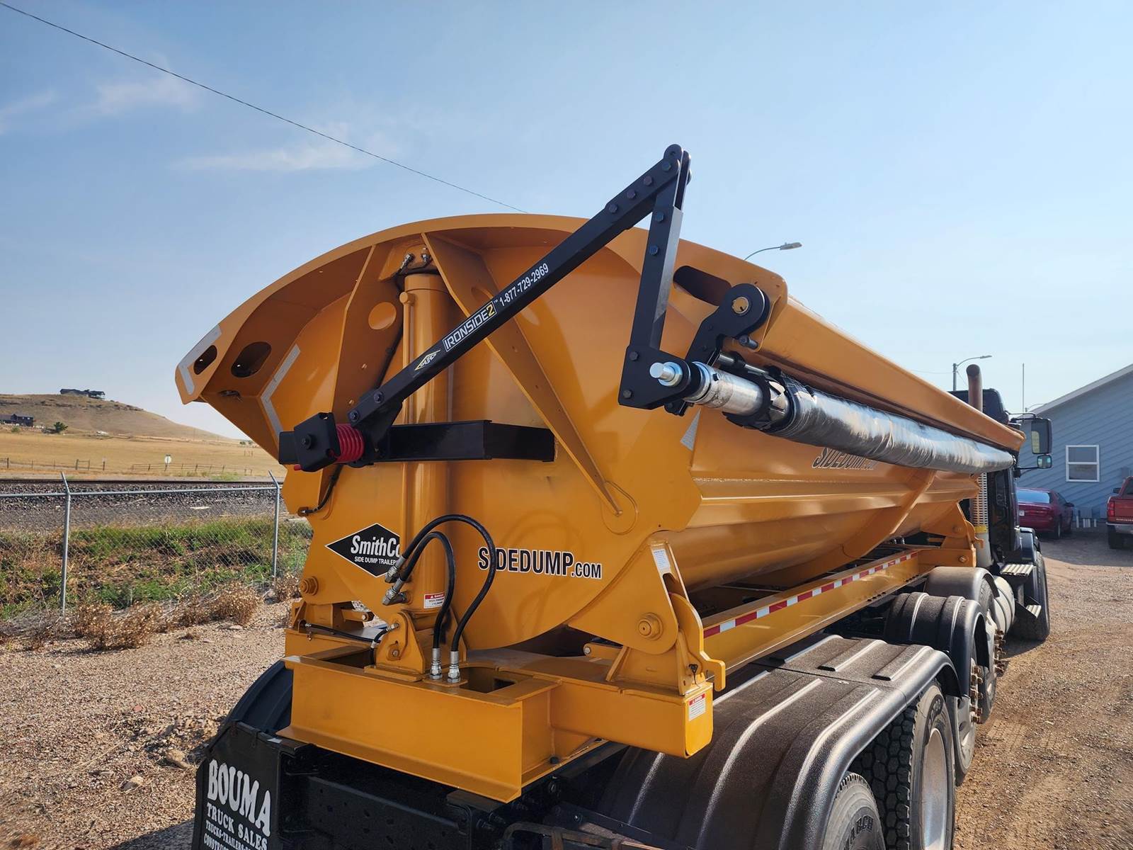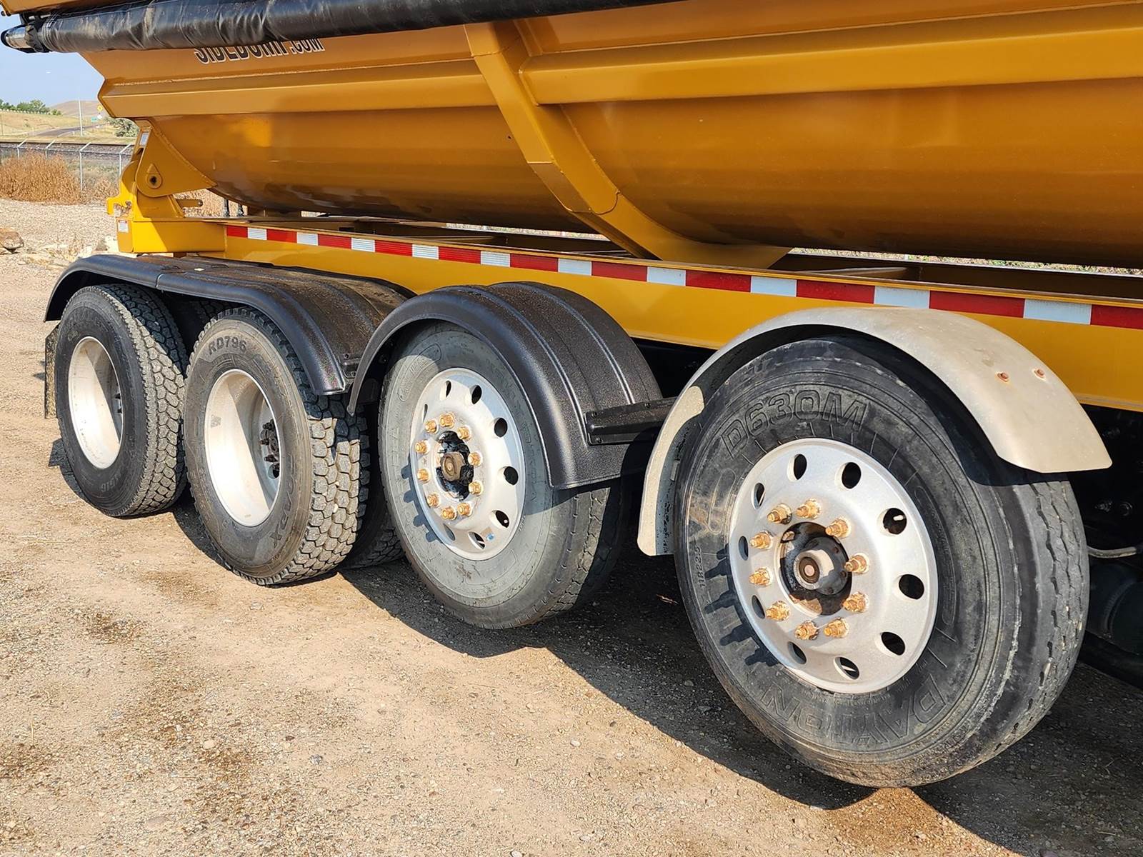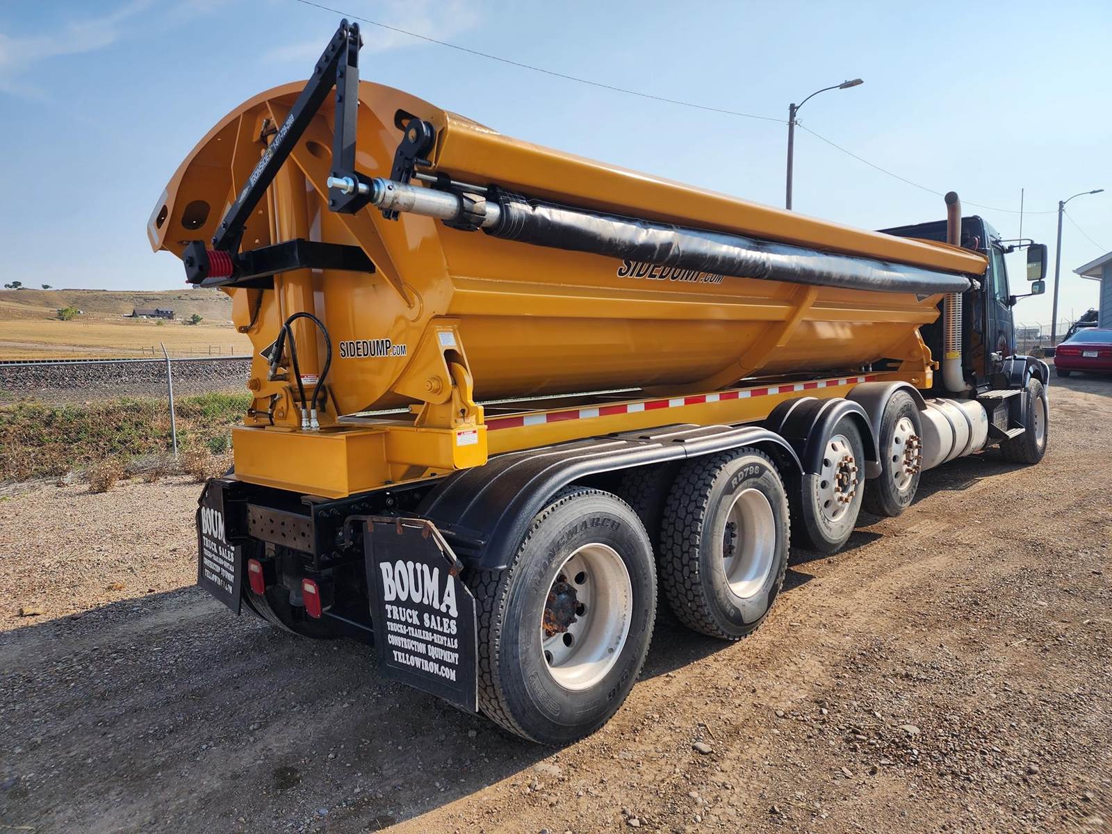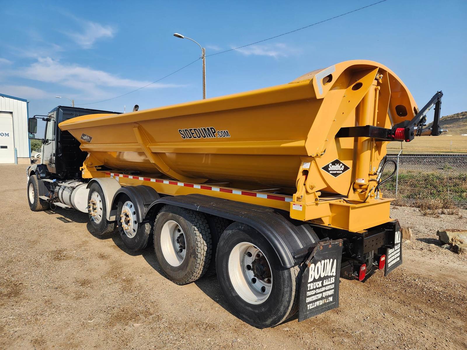 SIDEDUMP TRUCK, NEW 20ft AR450 SMITHCO SIDE DUMP BED, New Electric tarp, D16 Engine, 550hp, I-Shift, 12 Speed, Jake, 14.6, k Front, 46, k Rears, 3-WAY LOCKERS, 46K MERITOR REARS, 2 FACTORY STEERABLE LIFT AXLES, ALI ARC BUMPER, DOUBLE FRAME, ALL NEW INJECTORS.