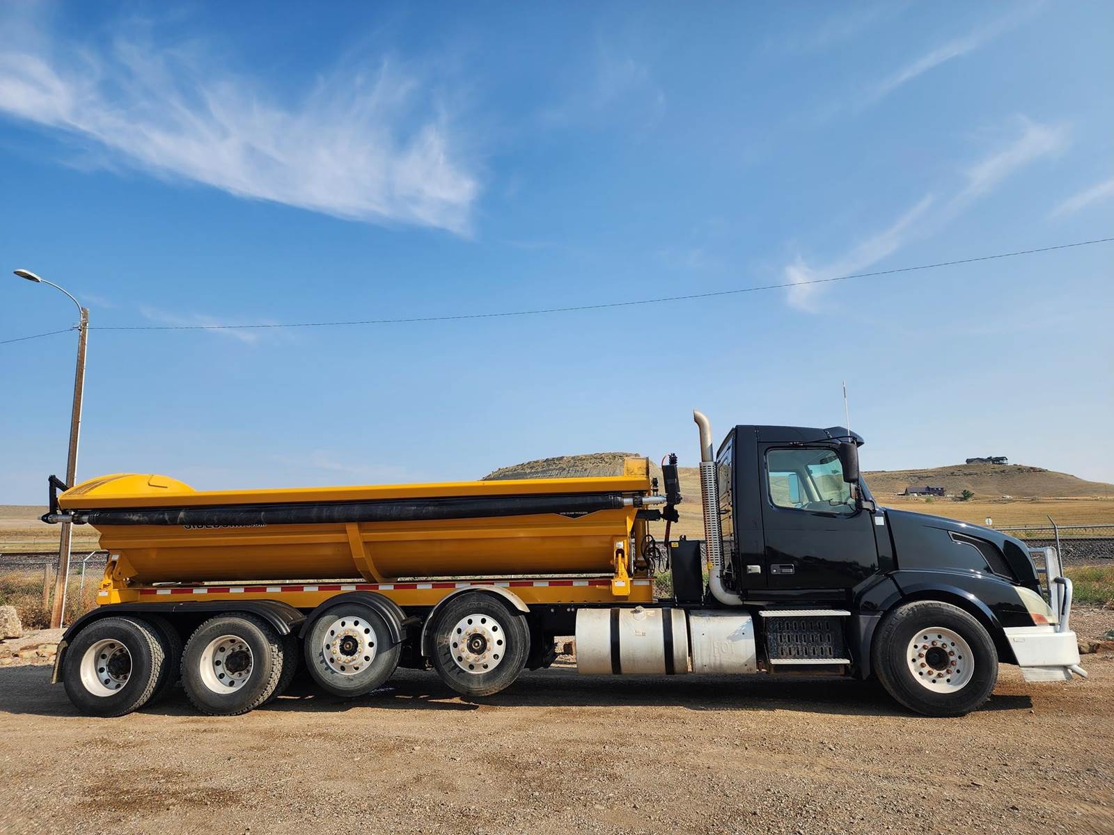 Solid dump truck, N14 Cummins, 10 spd manual trans, air lift gate, rear apron, Pintle hitch and plumbed for pup trailer