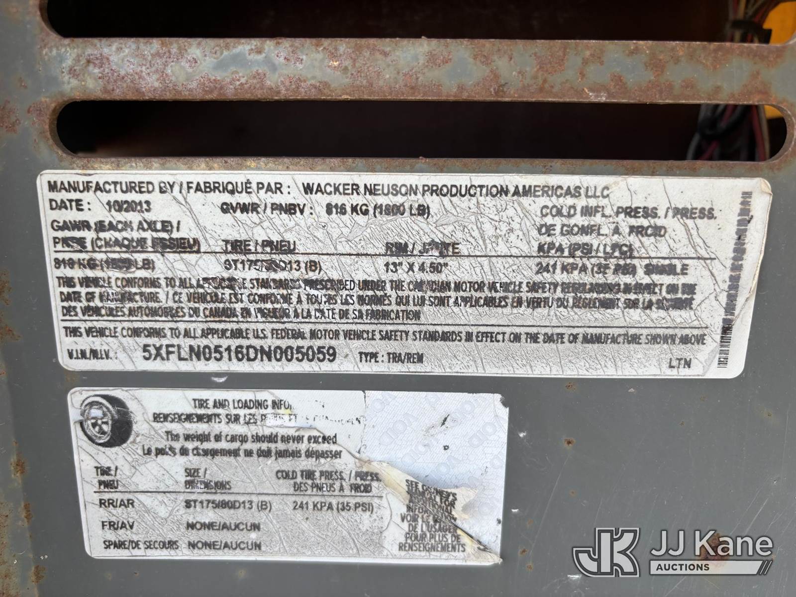 2013 Wacker Neuson LTN6 Portable Light Tower, s/n 5XFLN0516DN005059, diesel, trailer mtd. (No Title) (Not Running, Condition Unknown) (Body & Paint Damage) (Reads 4,023 hours) NOTE: This unit is being sold AS IS/WHERE IS via Timed Auction and is located in Westlake, FL. Inspection & preview days for this unit are the 2 business days prior to the first day of items closing for this auction, item is located at 4003 Seminole Pratt Whitney Rd Westlake, FL 33470 and hours of operations are 8a-4p. For pre-sale questions, please contact: Matt Johnson @ (205) 847-9106. (Buyer is responsible for removal. Assistance by consignor or JJ Kane Auctions is not assured.)