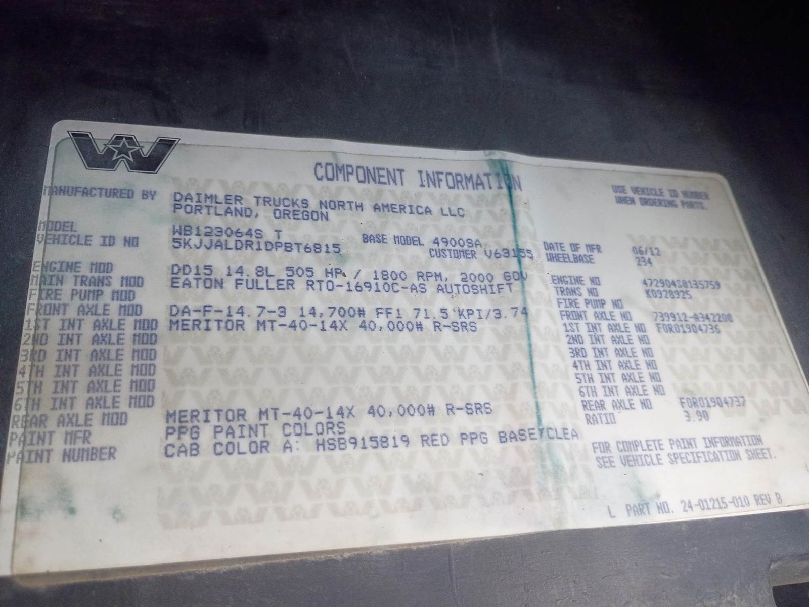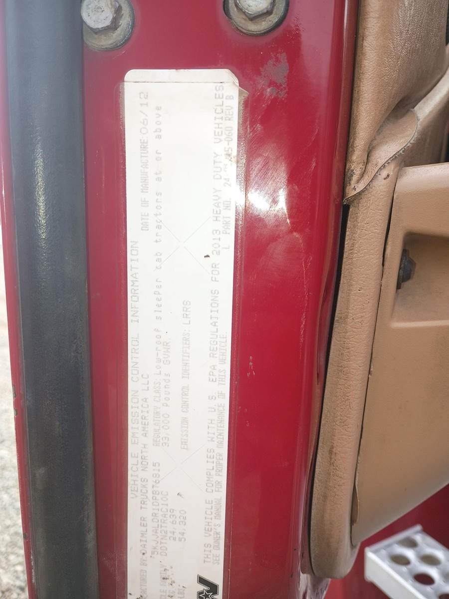 Detroit Diesel DD15 Turbo Diesel Engine, Eaton Fuller Automated Transmission, Interaxle Lock, PTO, 54320LB GVWR, 14320LB Front Axle GAWR, Single Line Wet Kit, Air Ride Suspension, Single Frame, Approx. 48" Air Sliding Fifth Wheel, Sleeper Cab, Heat/AC, Radio, Cruise Control, Heated Mirrors, Powered Passenger Window and Mirror, Power Locks, Full Aluminum Rims, 11R24.5 Front Tires, 11R22.5 Rear Tires,