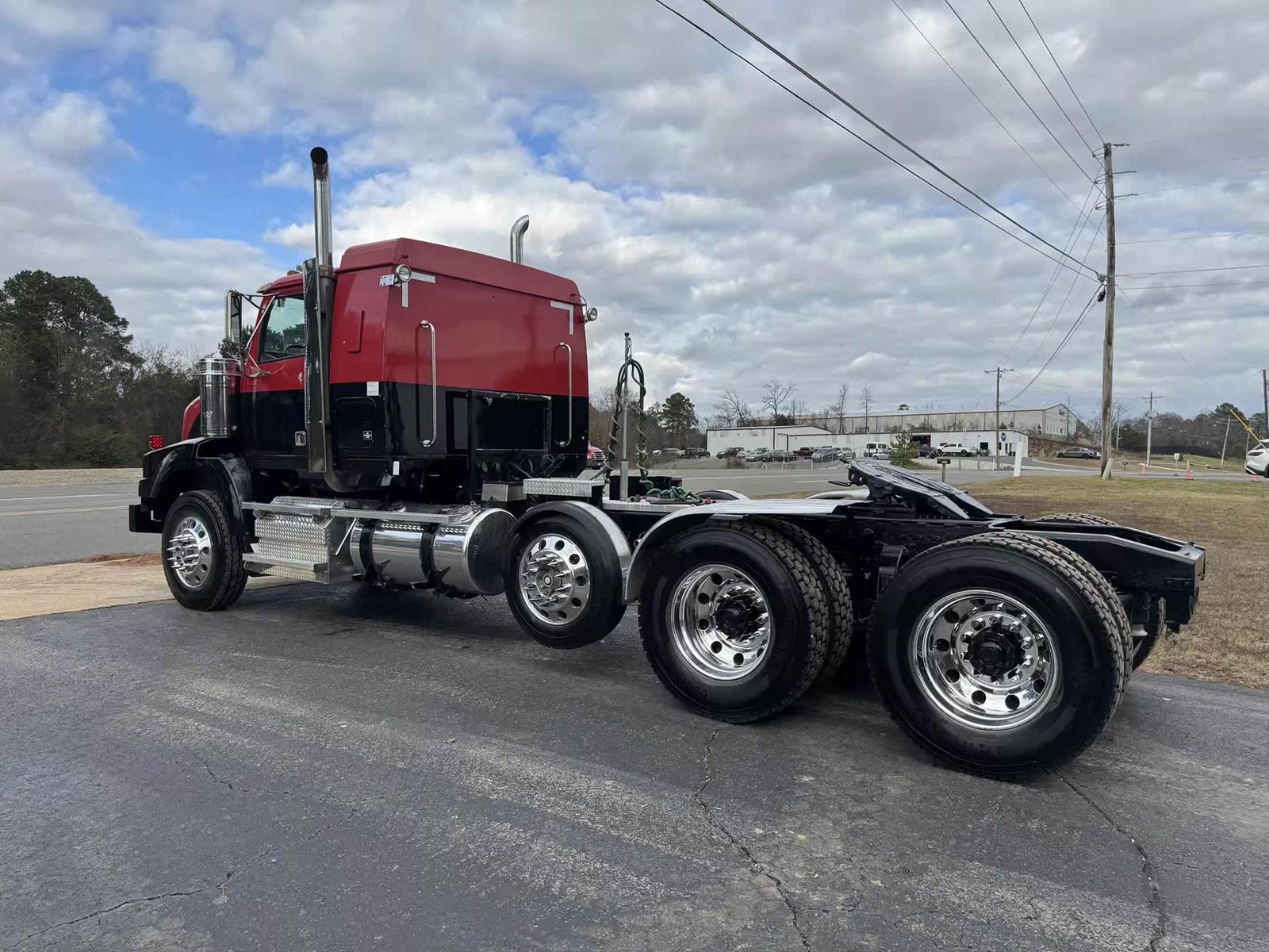 2013 WESTERN STAR 4900, 48,570 MILES, 8,796 HOURS, DD-15, 500HP, EATON FULLER 18 SPEED, 16,000 LB FRONT AXLE, 46,000 LB REAR AXLES, 13,200 LB PUSHER AXLE, FULL LOCKERS, DOUBLE FRAME, WET KIT, AIR LINER SUSPENSION, GOOD RUBBER, COLD A/C.