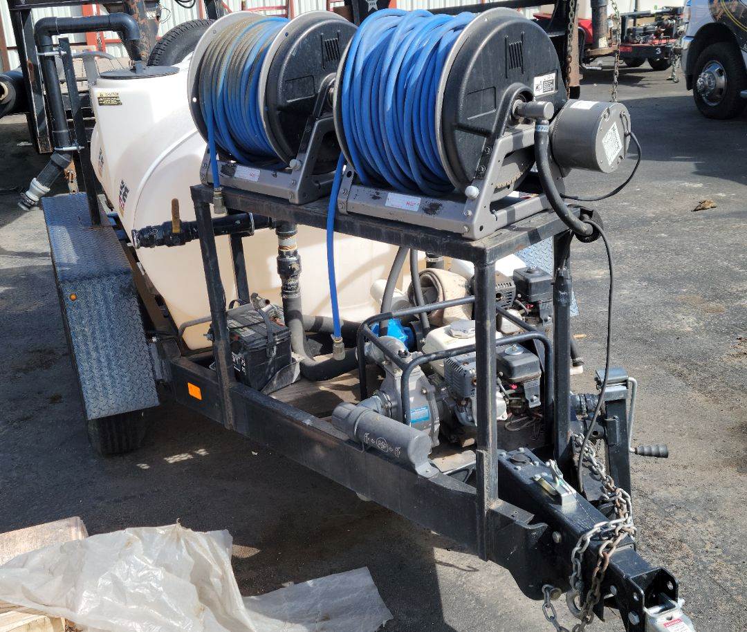 2015 WYLIE EXPRESS WATER WAGON. POWER WASHER PW3. INCLUDES 2 HOSE REELS, 2 MOTORS, 2 PUMPS, WATER WAGON SPRAYER, EXTRA TIRE ON THE BACK. THE WEIGHT OF THE CARGO IS NOT TO EXCEED 42OO LBS. ACTUAL WEIGHT: 1800 LBS. 500 GALLON WATER WAGON.TANDEM SURGE BRAKE AXLES, DOT APPROVED TRAILER. THE VIN NUMBER CORRESPONDS TO THE TRAILER. USER FRIENDLY. GVWR: 6000 LBS. GAWR: 3500 LBS. TIRES: ST 225 / 75D15.USES: DUST ABATEMENT, WATER HAULING, FIRE CONTROL, CONCRETE SAW AND WATER AND MORE.
