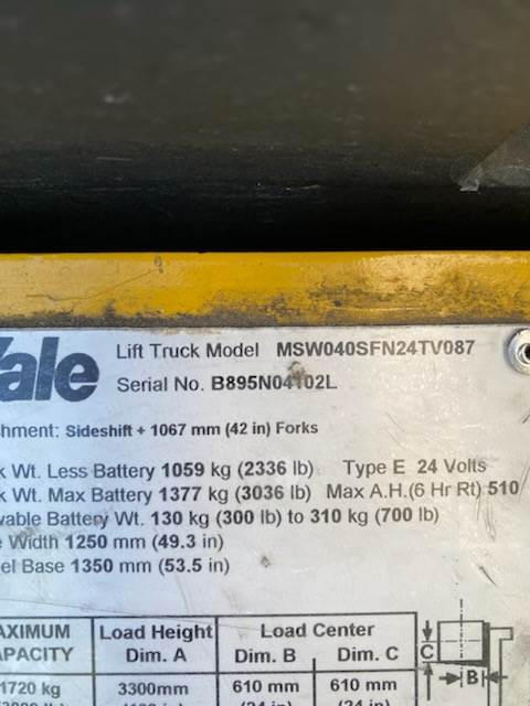 2013 Yale MSW040SFN24TV087, serial