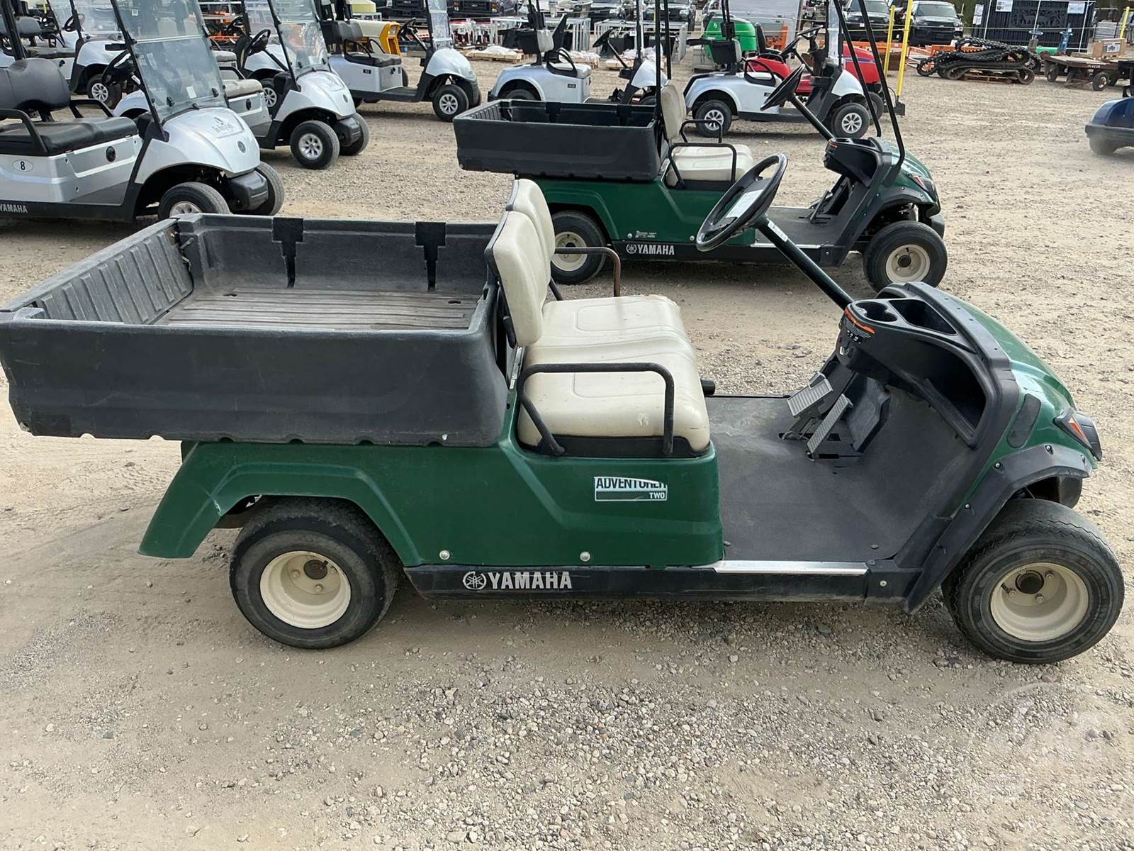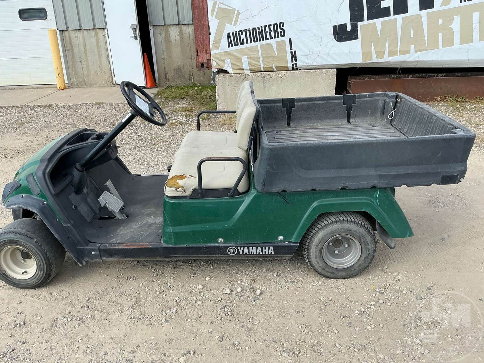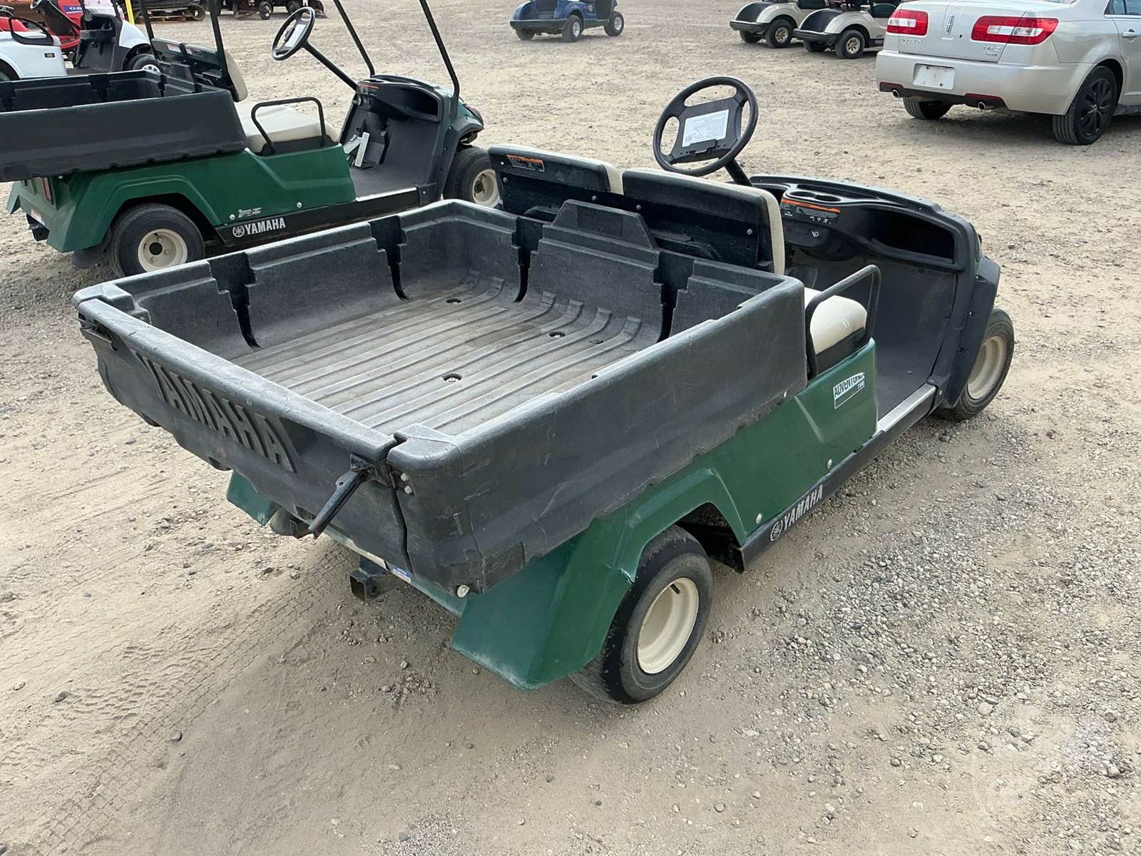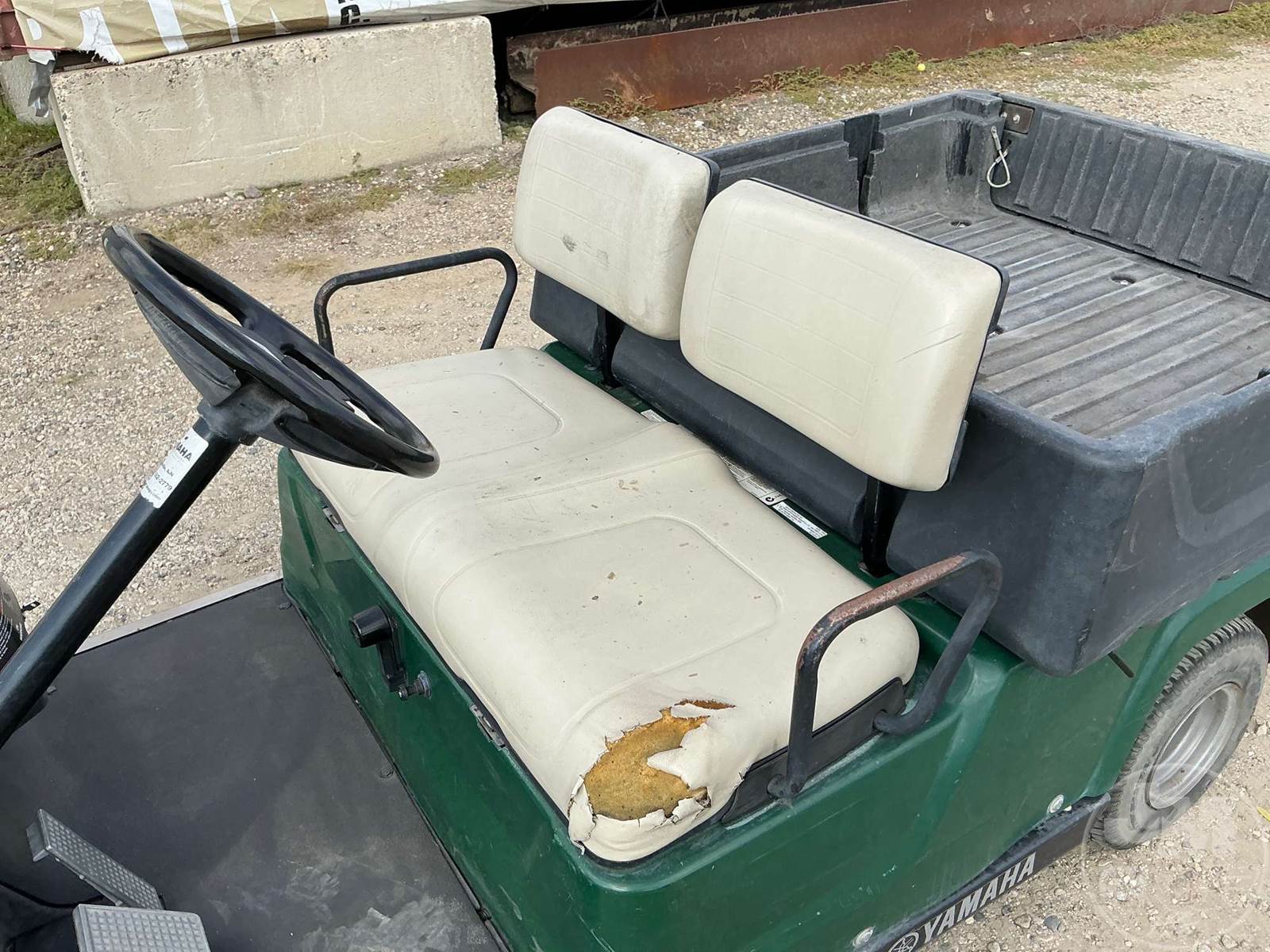 YAMAHA GOLF CART, GAS, GREEN, 2 SEAT, UTILITY BOX, MANUAL DUMP BOX, LIGHTS ****NO TITLE, BILL OF SALE ONLY****
