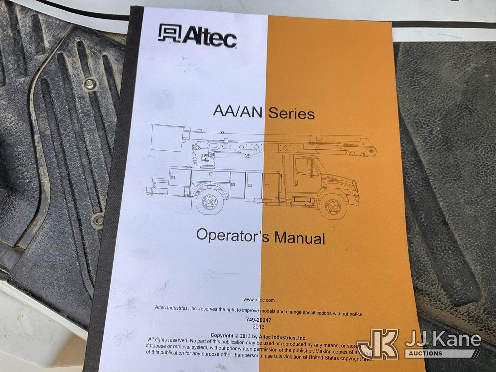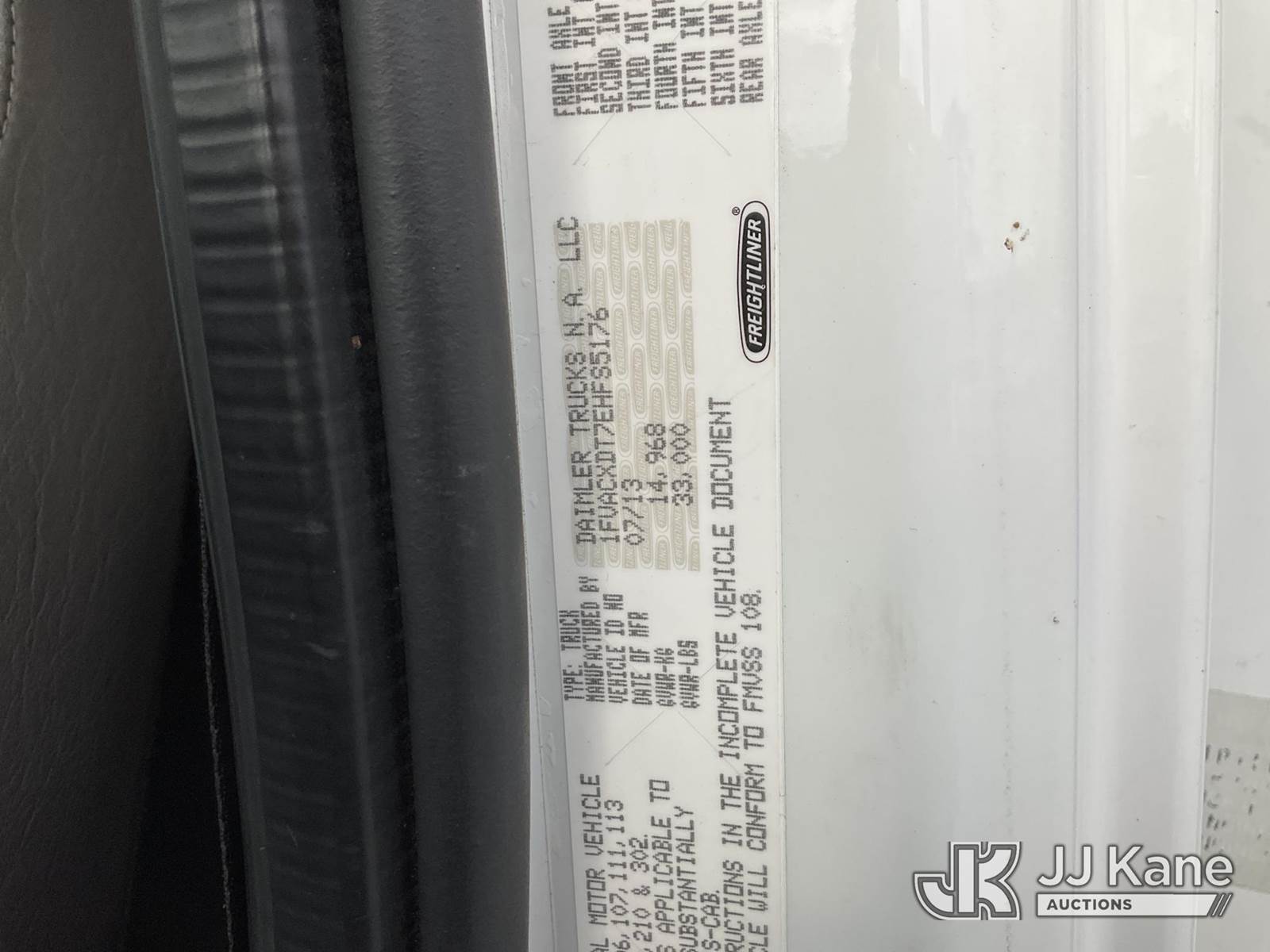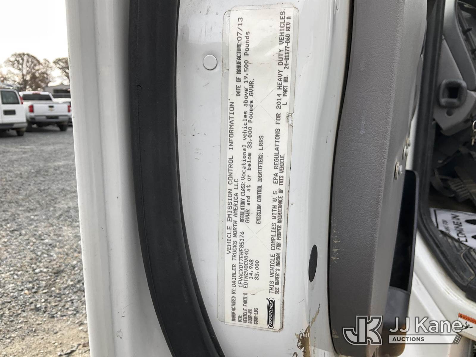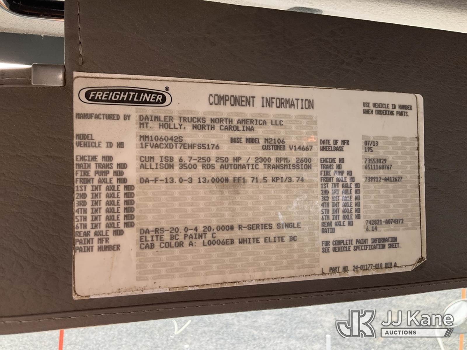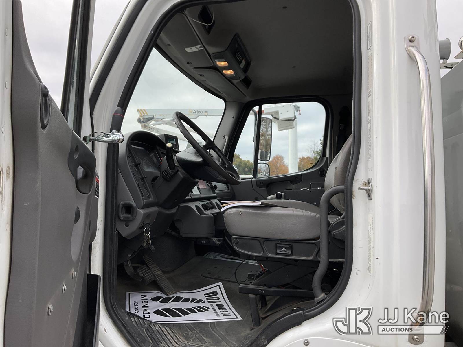 Altec AA55E-MH, 60 ft, Material Handling Bucket Truck s/n 0913FH0668, with two-man bucket, rear mounted on 2014 Freightliner M2 106 Utility Truck, Cummins ISB 6.7L diesel, Auto, A/C, with front winch & TireBoss tire pressure control, (104,963 miles) (Duke Unit) (Runs, Moves & Upper Operates) (Missing Upper Placard) This is a Titled Item NOTE: This unit is being sold AS IS/WHERE IS via Timed Auction and is located in China Grove, NC. Inspection & preview days for this unit are the 2 business days prior to the first day of items closing for this auction, item is located at 820 E NC Hwy 152 China Grove, NC 28023 and hours of operations are 8a-4p. For pre-sale questions, please contact Office Staff @ (704) 674-1113. (Manuals provided in cab) (Buyer is responsible for removal. Assistance by consignor or JJ Kane Auctioneers is not assured.)