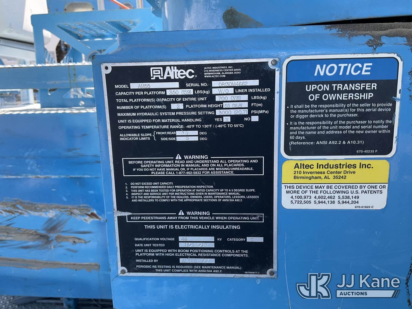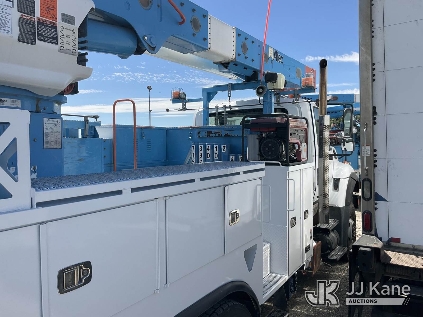 Altec AM55, 60 ft, Articulating Material Handling Bucket Truck s/n 0813DM4662, with double bucket & 4 hyd outriggers, rear mounted on 2014 International 7500 T/A Utility Truck, 9.3L L6 6X6, DIESEL, Auto, A/C, with winch, spotlight, pintle hitch, (39,106 miles) (Not Running, Condition Unknown, Electrical Fault) (Reads 2,982 hours) (Bidding Restricted to Licensed Vehicle Dealers Only), May be subject to ARB Regulations This is a Titled Item NOTE: This unit is being sold AS IS/WHERE IS via Timed Auction and is located in Dixon, CA. Inspection & preview days for this unit are the 2 business days prior to the first day of items closing for this auction, item is located at 8668 Sparling Ln Dixon, CA 95620 and hours of operations are 8a-4p. For pre-sale questions, please contact JJ Kane Staff at (707) 678-8060 (dixon@jjkane.com). Dealer License Number 45696. (Manuals provided in cab) (Buyer is responsible for removal. Assistance by consignor or JJ Kane Auctions is not assured.)