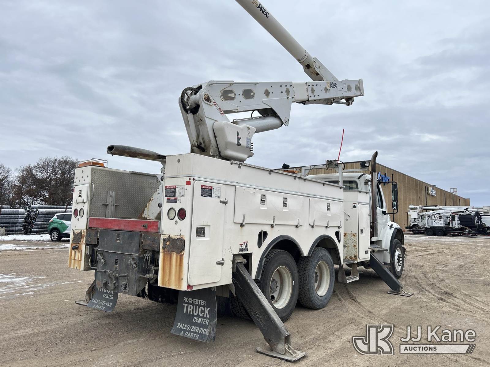 Altec AM55, 60 ft, Over-Center Material Handling Bucket Truck s/n 0114DM4945, with two man bucket, rear mounted on 2014 Freightliner M2 106 T/A Utility Truck, 8.9L diesel, Auto, 6X4, A/C, (145,222 miles) Co-op Owned (Runs, Moves & Upper Operates) This is a Titled Item NOTE: This unit is being sold AS IS/WHERE IS via Timed Auction and is located in Shakopee, MN. For more information & removal arrangements please contact Cole Jalivay at 651-421-3305. (Missing manuals, See Auction Company for Manufacturers Information to obtain manuals) (Buyer is responsible for removal. Assistance by consignor or JJ Kane Auctions is not assured.)