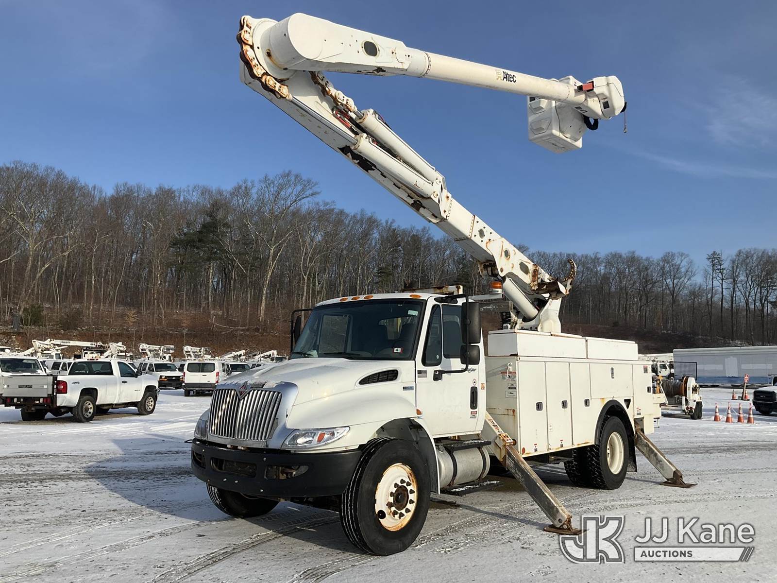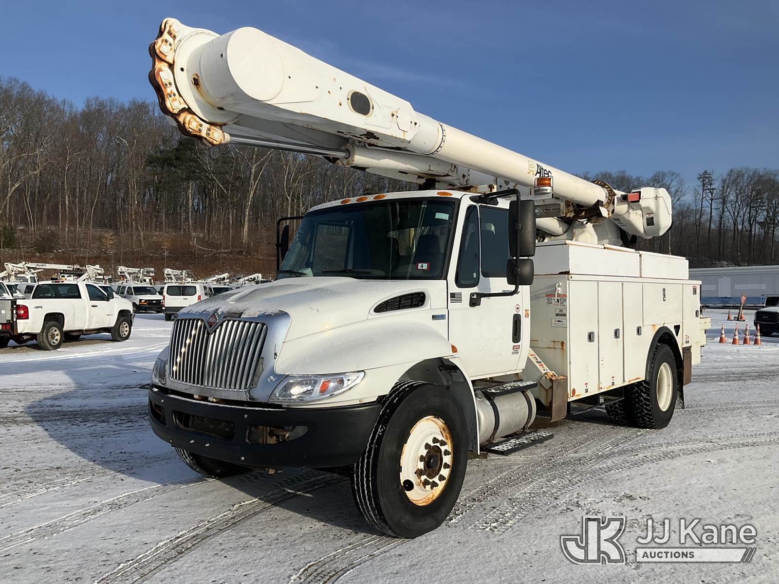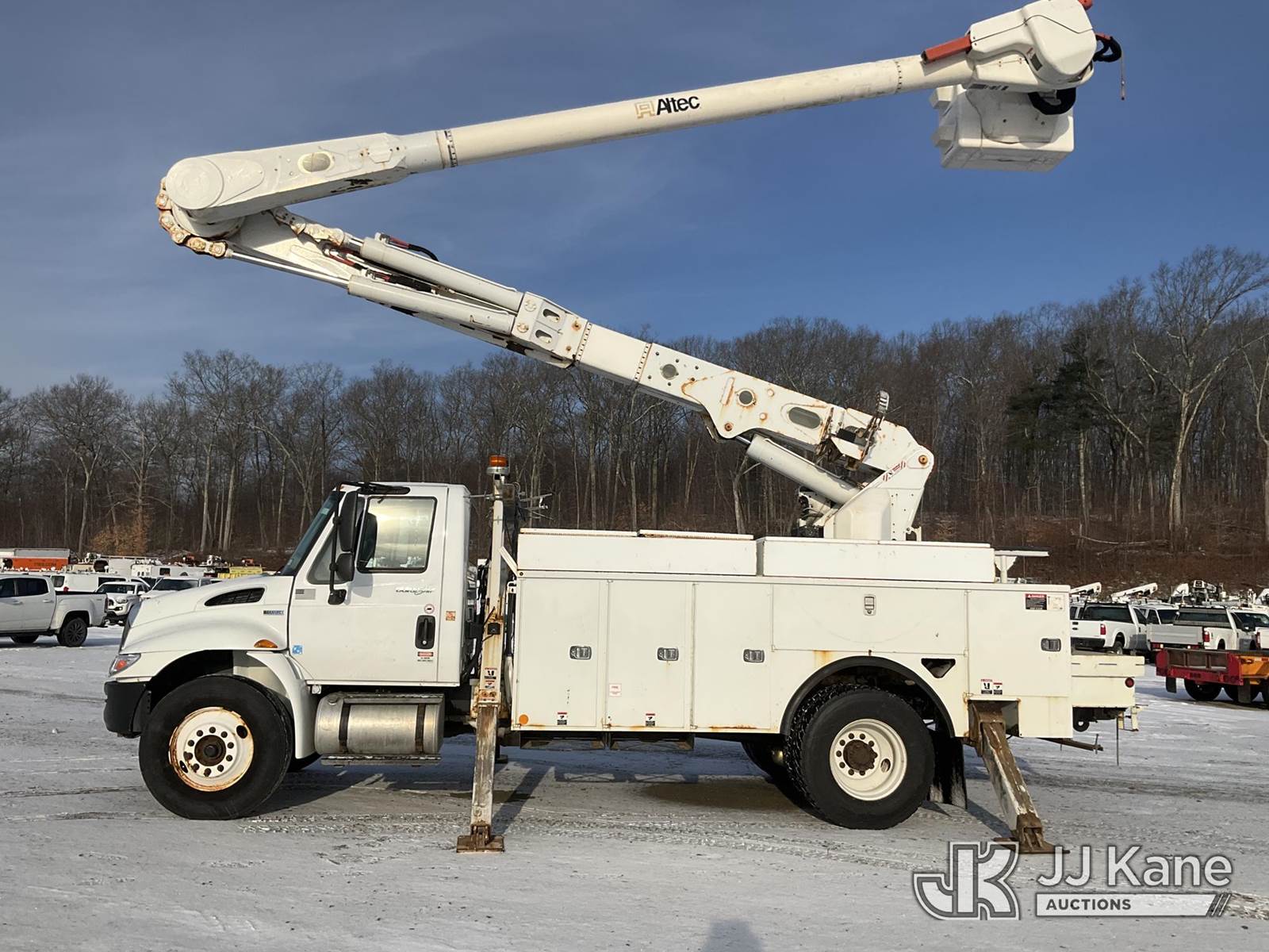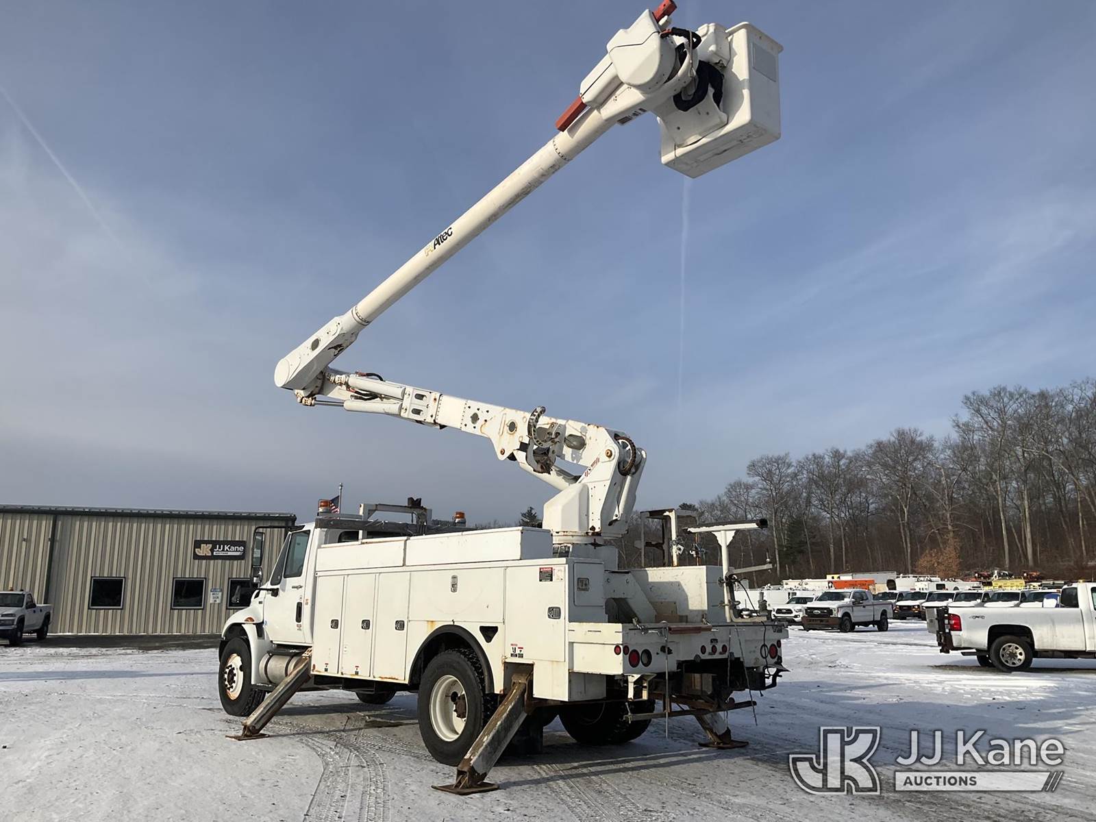 Altec AM55, 60 ft, Over-Center Material Handling Bucket Truck s/n 0114-DM4905, with two-man bucket & 4 hyd outriggers, rear mounted on 2014 International DuraStar 4300 Utility Truck, MaxxForce 7.6L Auto, 4X2, diesel, A/C, (92,061 miles) (Runs, Moves & Upper Operates) (Reads 9,627 hours) This is a Titled Item NOTE: This unit is being sold AS IS/WHERE IS via Timed Auction and is located in Shrewsbury, MA. Inspection & preview days for this unit are the 2 business days prior to the first day of items closing for this auction, item is located at 11 Fortune Blvd Shrewsbury, MA 01545 and hours of operations are 8a-4p. For pre-sale questions, please contact Rob Gifford @ (508) 864-4126. (Manuals provided in cab) (Buyer is responsible for removal. Assistance by consignor or JJ Kane Auctions is not assured.)