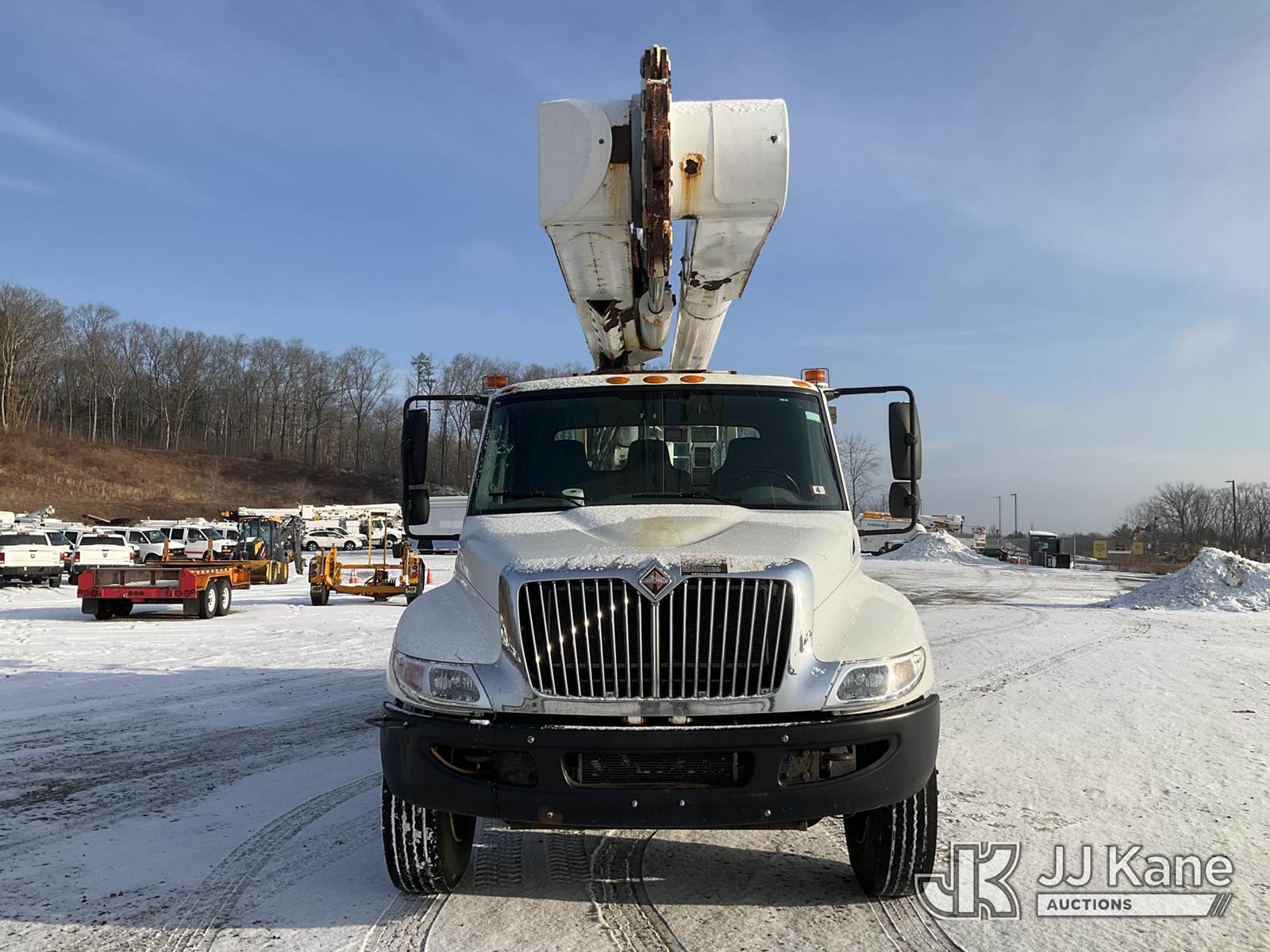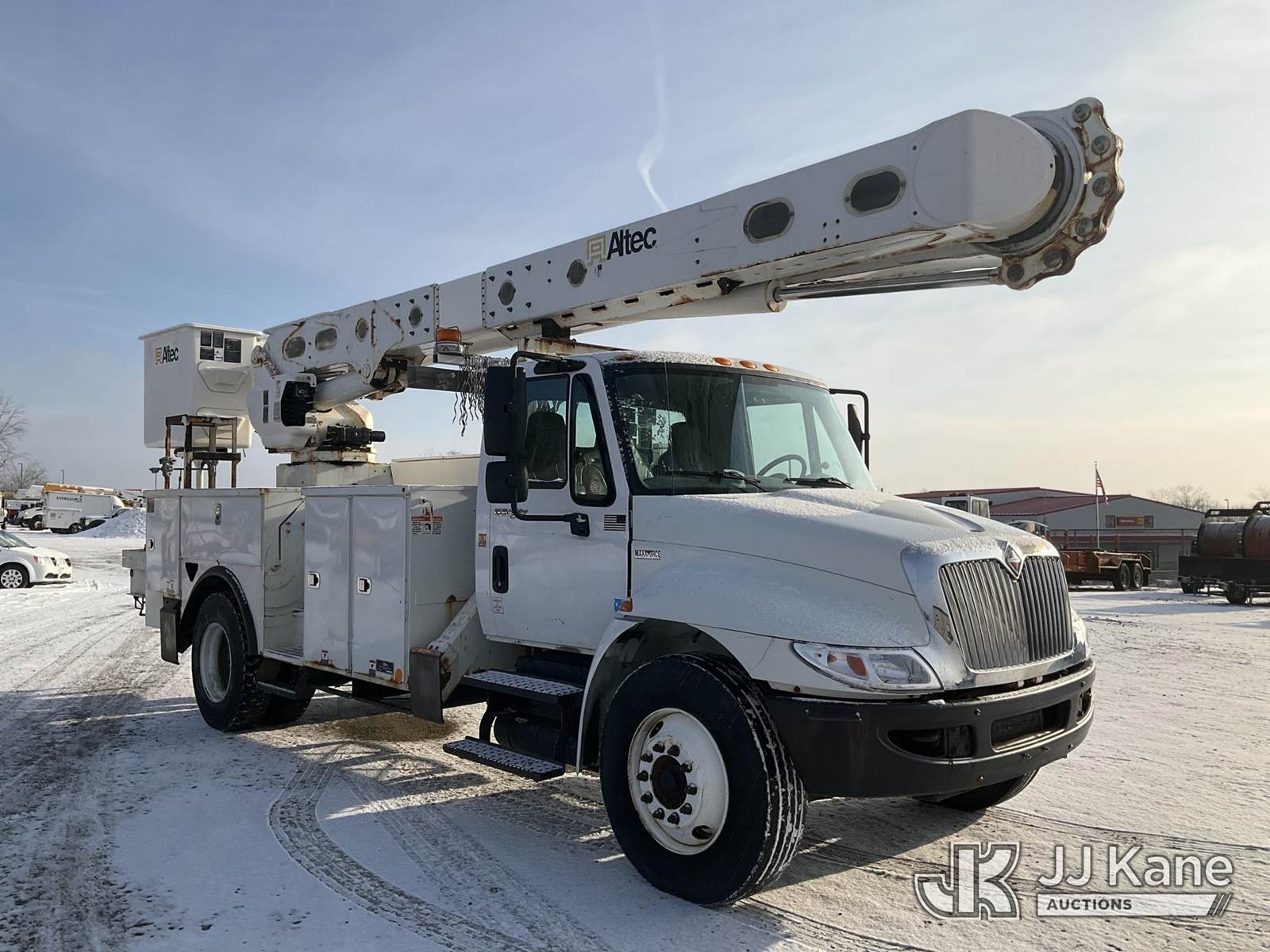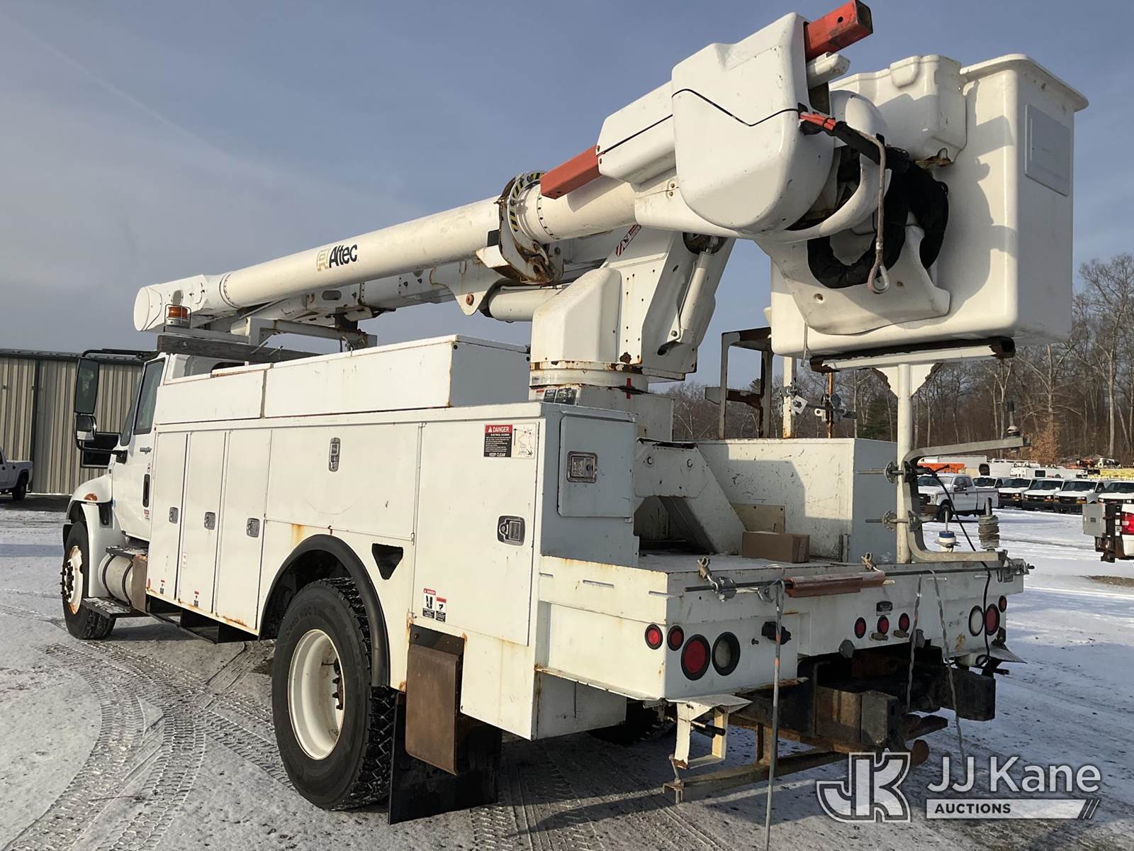 Altec AM55, 60 ft, Over-Center Material Handling Bucket Truck s/n 0114-DM4905, with two-man bucket & 4 hyd outriggers, rear mounted on 2014 International DuraStar 4300 Utility Truck, MaxxForce 7.6L Auto, 4X2, diesel, A/C, (92,061 miles) (Runs, Moves & Upper Operates) (Reads 9,627 hours) This is a Titled Item NOTE: This unit is being sold AS IS/WHERE IS via Timed Auction and is located in Shrewsbury, MA. Inspection & preview days for this unit are the 2 business days prior to the first day of items closing for this auction, item is located at 11 Fortune Blvd Shrewsbury, MA 01545 and hours of operations are 8a-4p. For pre-sale questions, please contact Rob Gifford @ (508) 864-4126. (Manuals provided in cab) (Buyer is responsible for removal. Assistance by consignor or JJ Kane Auctions is not assured.)