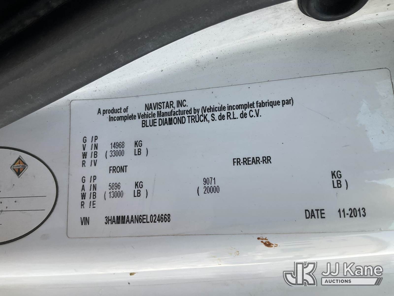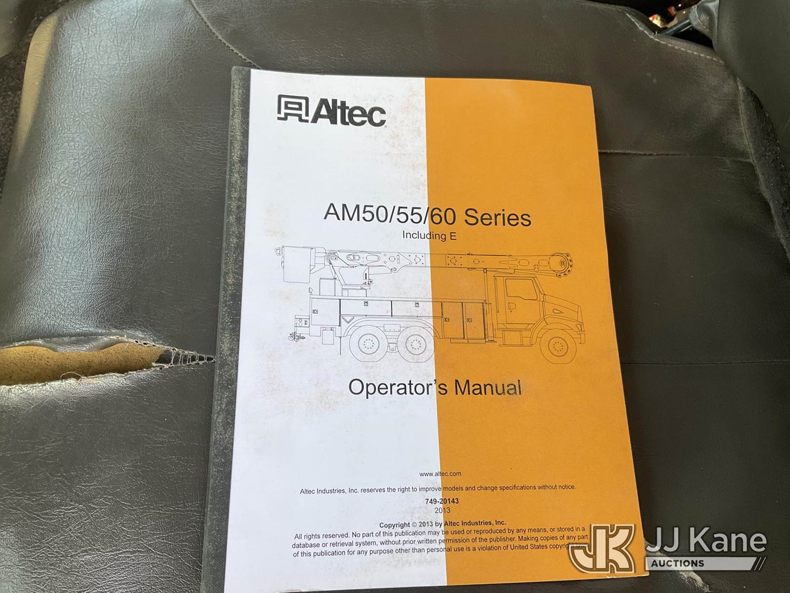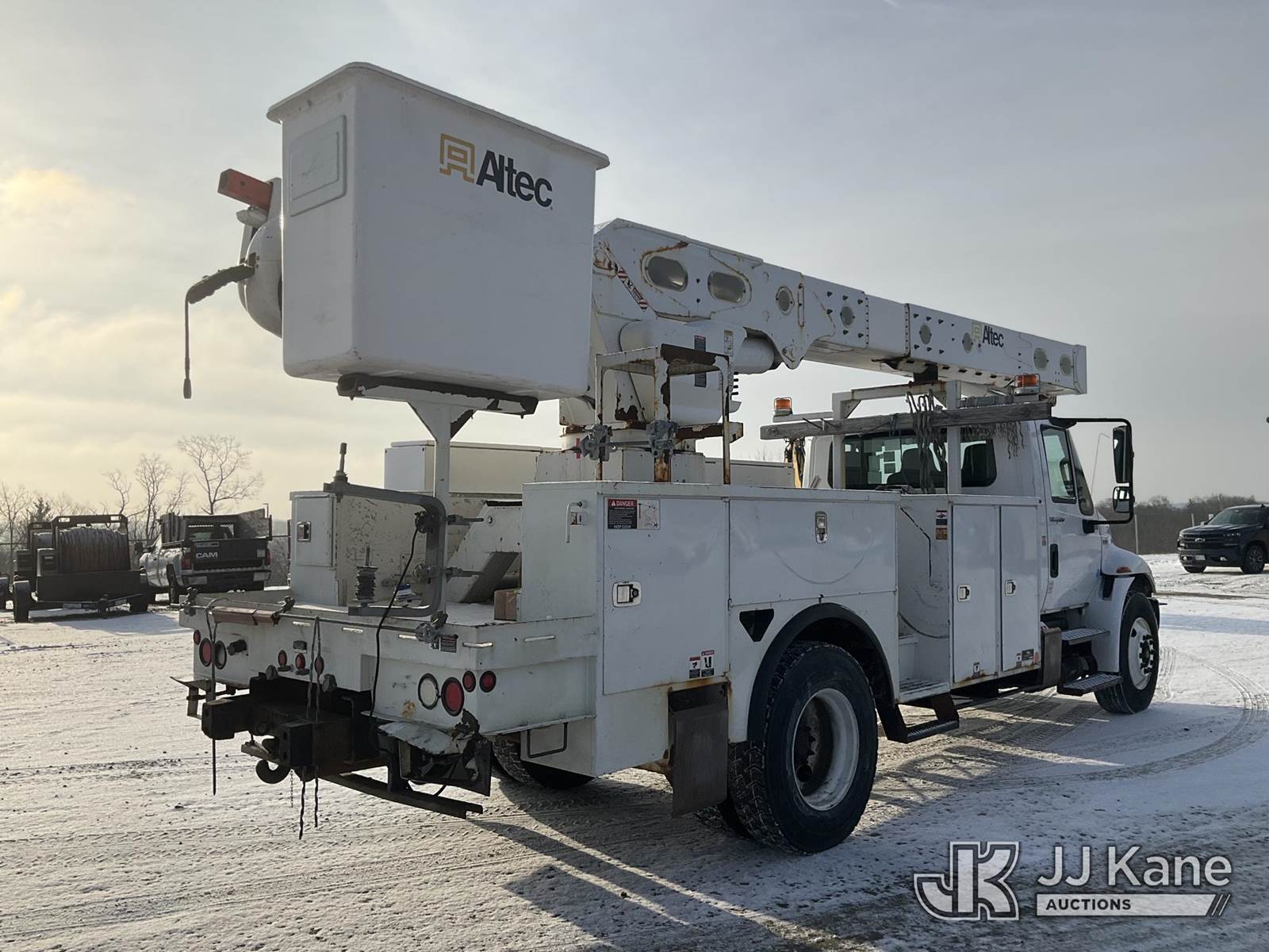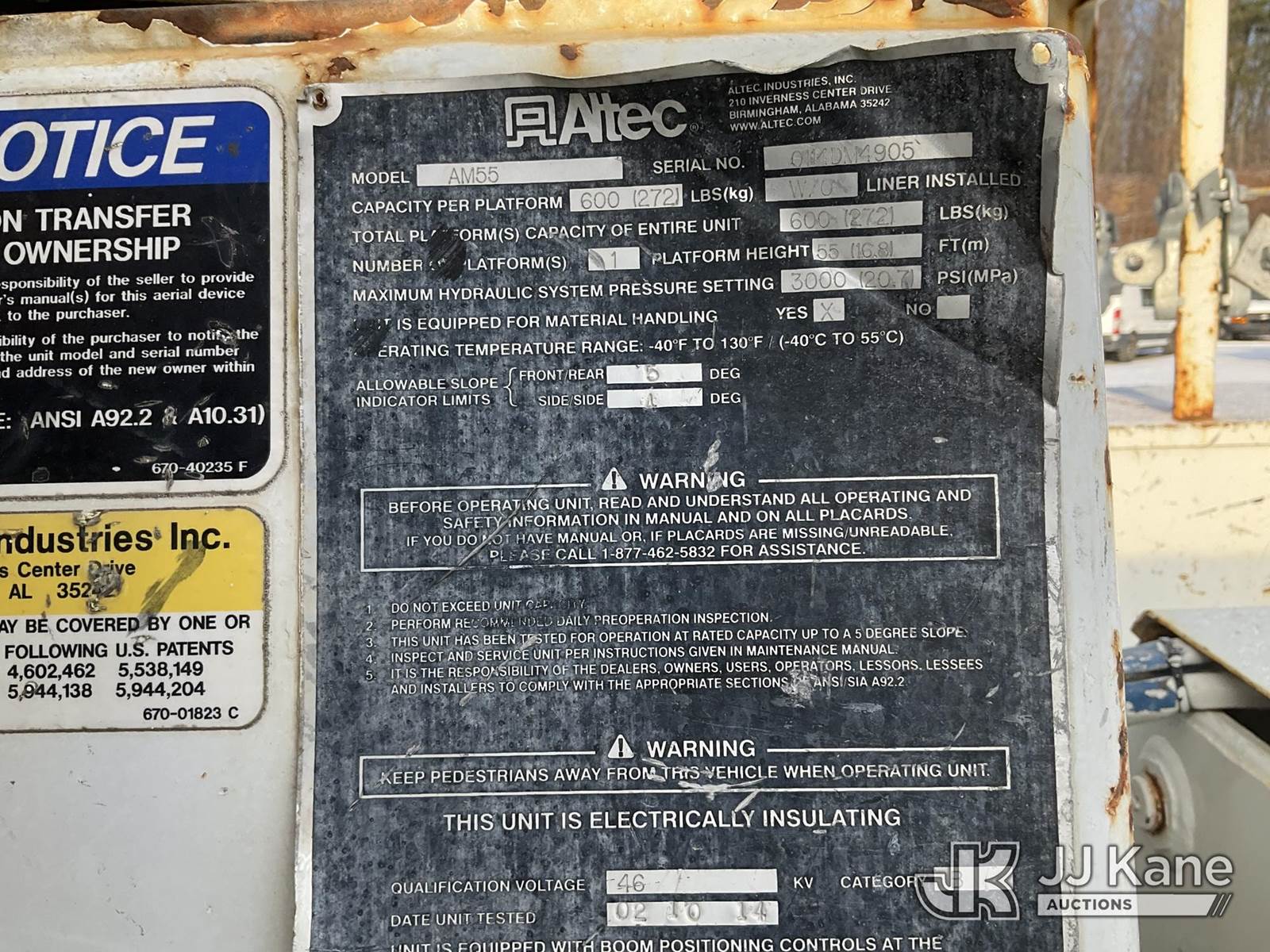 Altec AM55, 60 ft, Over-Center Material Handling Bucket Truck s/n 0114-DM4905, with two-man bucket & 4 hyd outriggers, rear mounted on 2014 International DuraStar 4300 Utility Truck, MaxxForce 7.6L Auto, 4X2, diesel, A/C, (92,061 miles) (Runs, Moves & Upper Operates) (Reads 9,627 hours) This is a Titled Item NOTE: This unit is being sold AS IS/WHERE IS via Timed Auction and is located in Shrewsbury, MA. Inspection & preview days for this unit are the 2 business days prior to the first day of items closing for this auction, item is located at 11 Fortune Blvd Shrewsbury, MA 01545 and hours of operations are 8a-4p. For pre-sale questions, please contact Rob Gifford @ (508) 864-4126. (Manuals provided in cab) (Buyer is responsible for removal. Assistance by consignor or JJ Kane Auctions is not assured.)