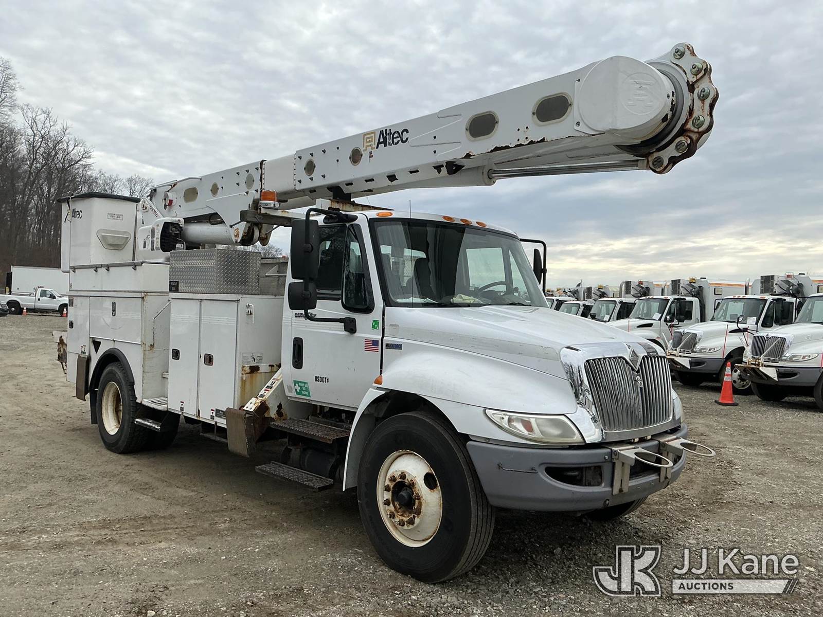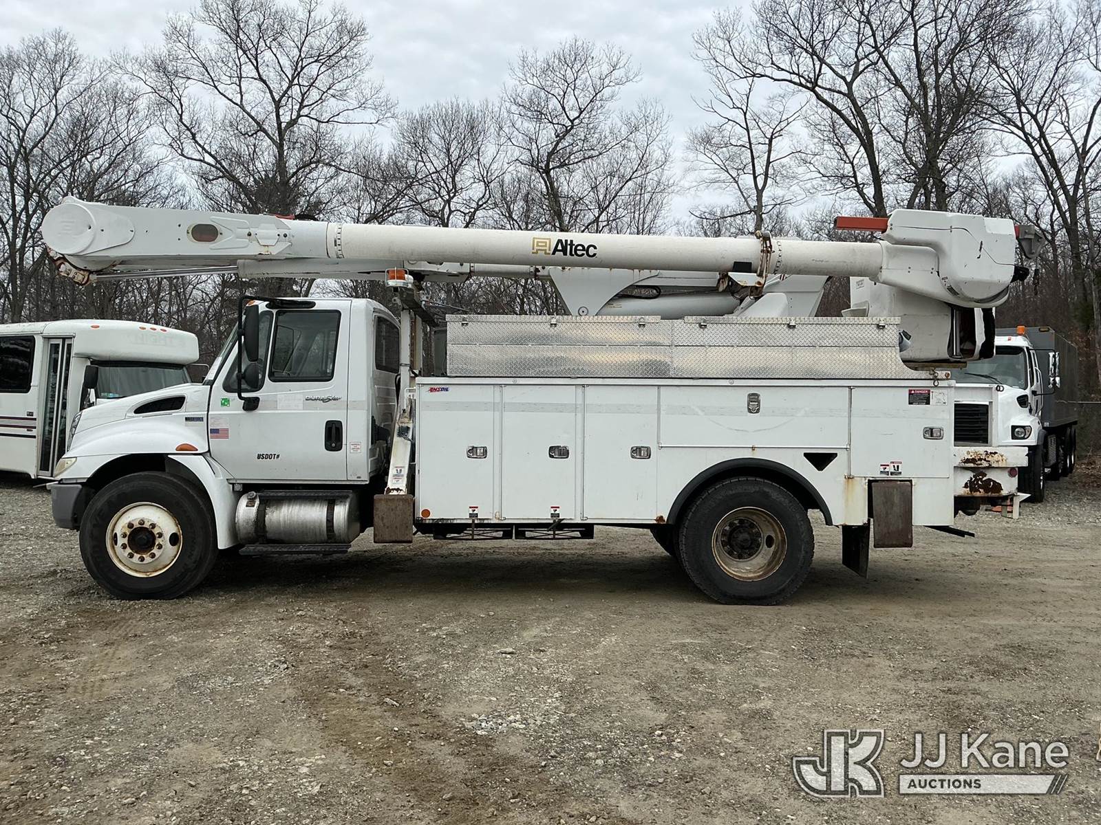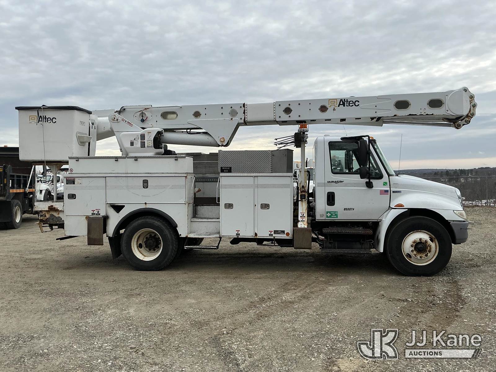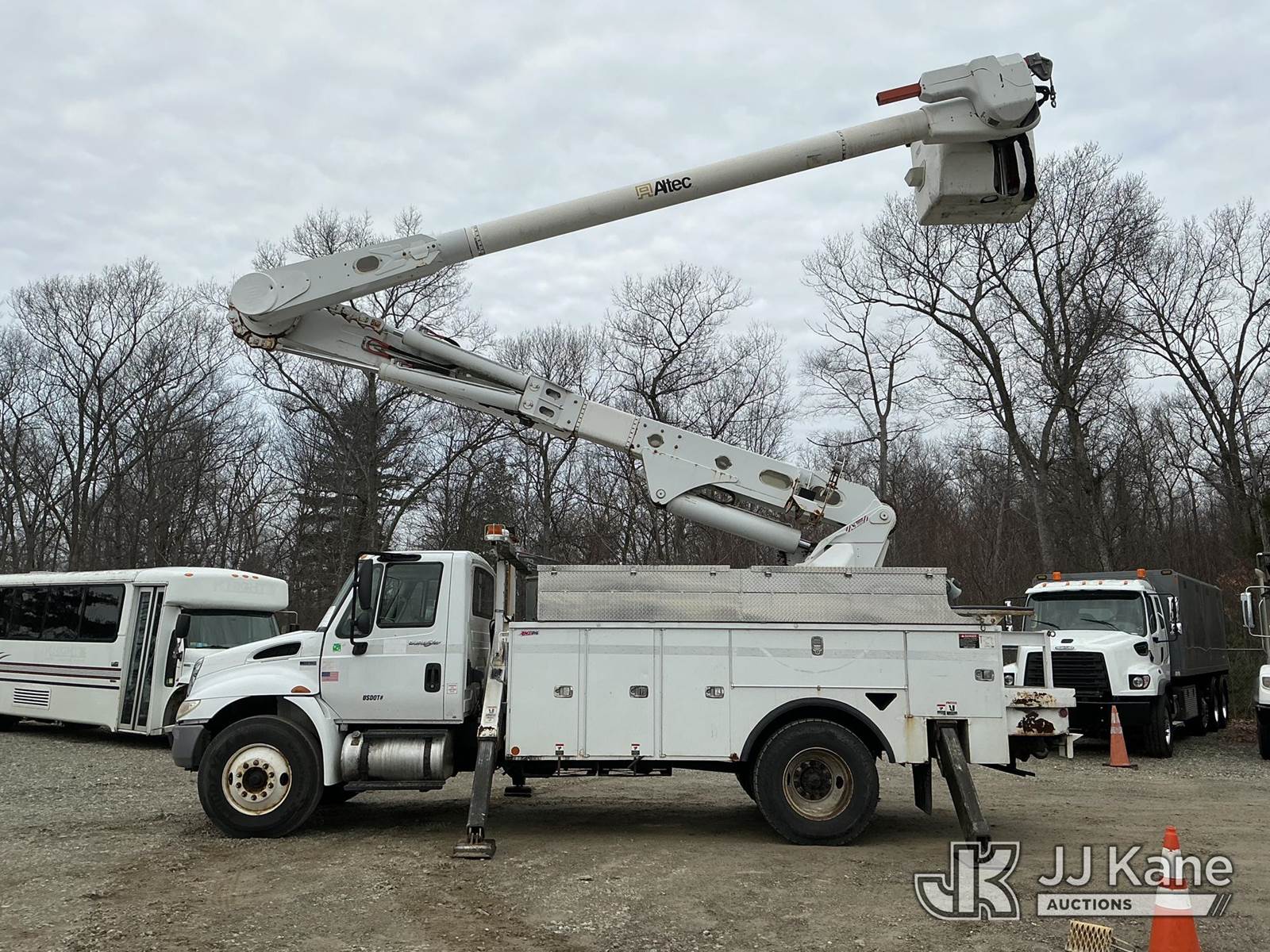 Altec AM55-MH, 60 ft, Material Handling Bucket Truck s/n 0313DM4454, with two-man bucket & 4 hyd outriggers, rear mounted on 2014 International DuraStar 4300 Utility Truck, MaxxForce 7.6L 4X2, diesel, Auto, A/C, (82,571 miles) (Runs, Moves & Upper Operates) (Check Transmission Message On Dash, Missing Upper ID Plate) (Reads 8,867 hours) This is a Titled Item NOTE: This unit is being sold AS IS/WHERE IS via Timed Auction and is located in Shrewsbury, MA. Inspection & preview days for this unit are the 2 business days prior to the first day of items closing for this auction, item is located at 11 Fortune Blvd Shrewsbury, MA 01545 and hours of operations are 8a-4p. For pre-sale questions, please contact Rob Gifford @ (508) 864-4126. (Manuals provided in cab) (Buyer is responsible for removal. Assistance by consignor or JJ Kane Auctions is not assured.)