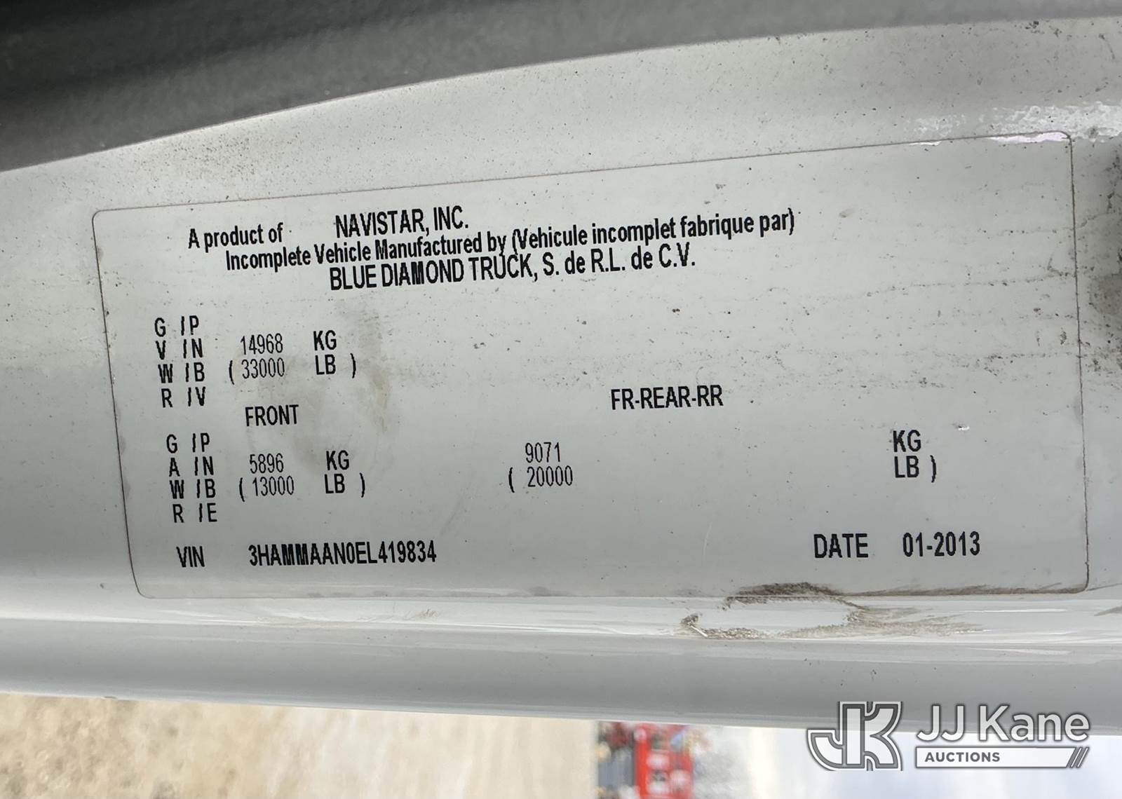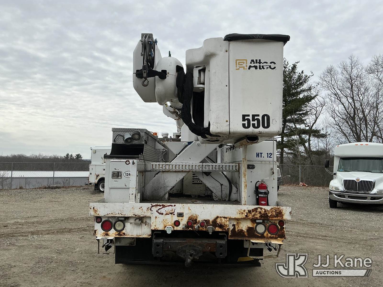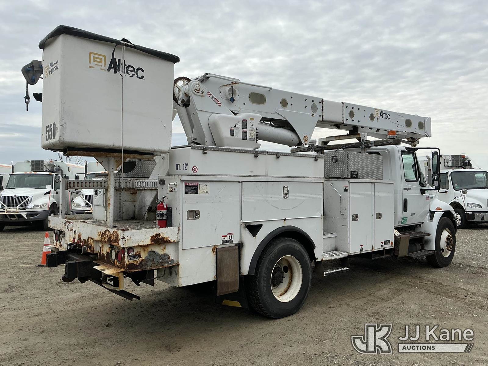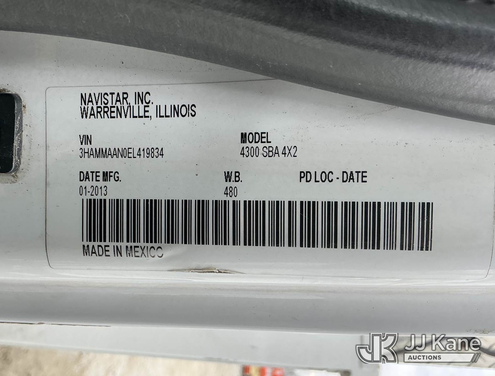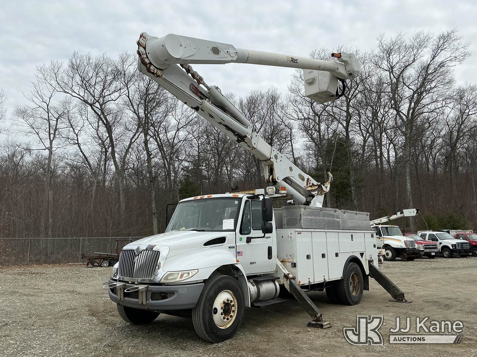 Altec AM55-MH, 60 ft, Material Handling Bucket Truck s/n 0313DM4454, with two-man bucket & 4 hyd outriggers, rear mounted on 2014 International DuraStar 4300 Utility Truck, MaxxForce 7.6L 4X2, diesel, Auto, A/C, (82,571 miles) (Runs, Moves & Upper Operates) (Check Transmission Message On Dash, Missing Upper ID Plate) (Reads 8,867 hours) This is a Titled Item NOTE: This unit is being sold AS IS/WHERE IS via Timed Auction and is located in Shrewsbury, MA. Inspection & preview days for this unit are the 2 business days prior to the first day of items closing for this auction, item is located at 11 Fortune Blvd Shrewsbury, MA 01545 and hours of operations are 8a-4p. For pre-sale questions, please contact Rob Gifford @ (508) 864-4126. (Manuals provided in cab) (Buyer is responsible for removal. Assistance by consignor or JJ Kane Auctions is not assured.)