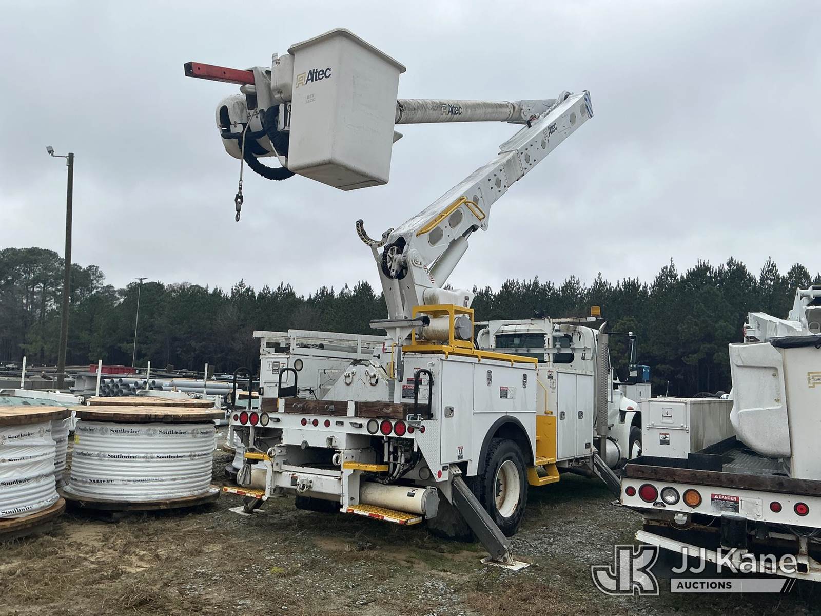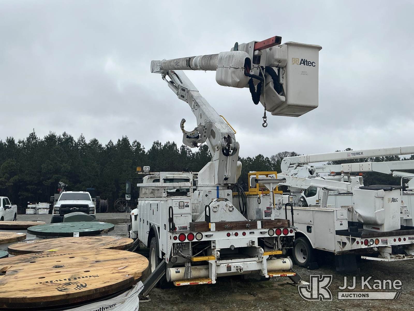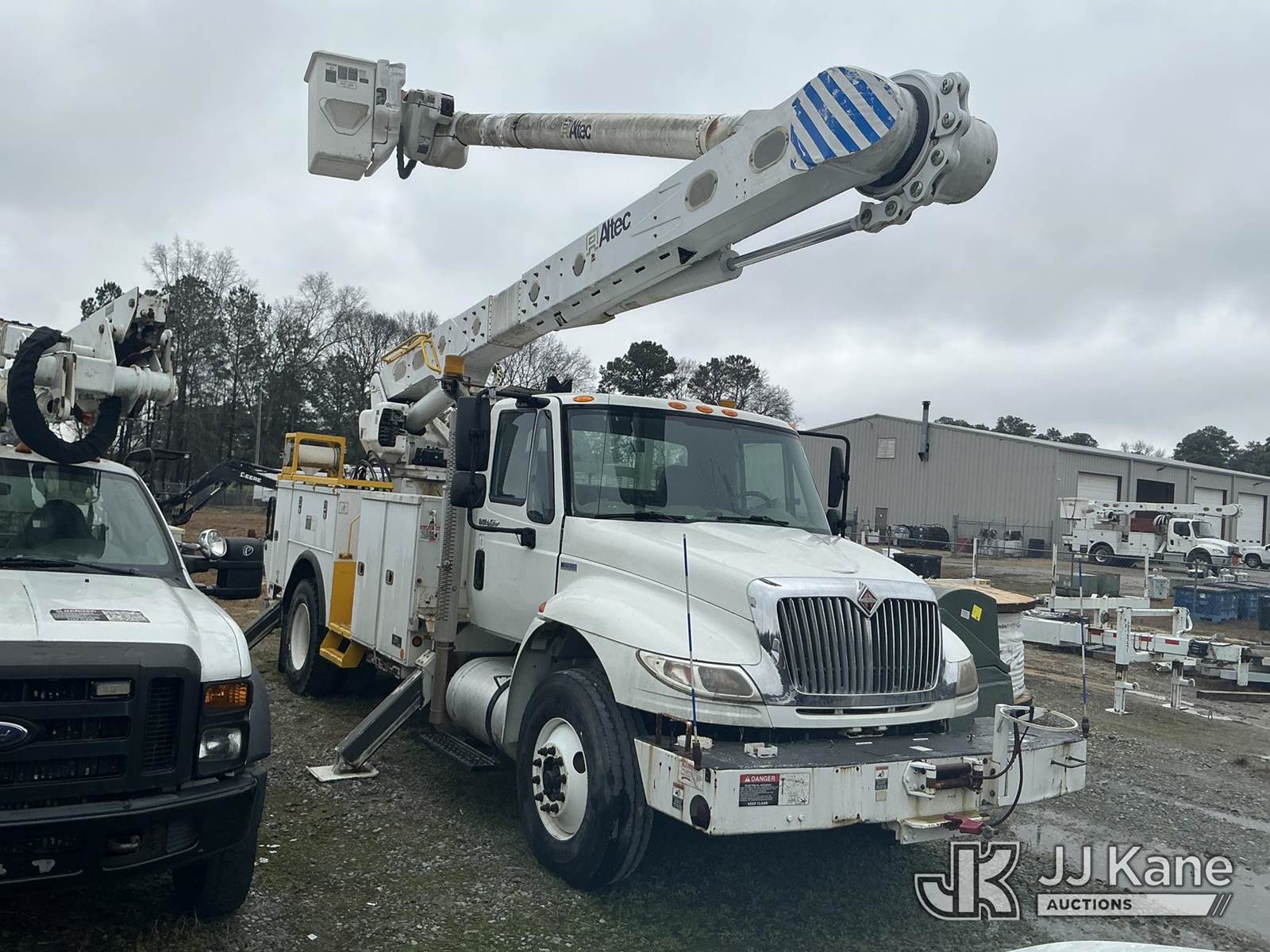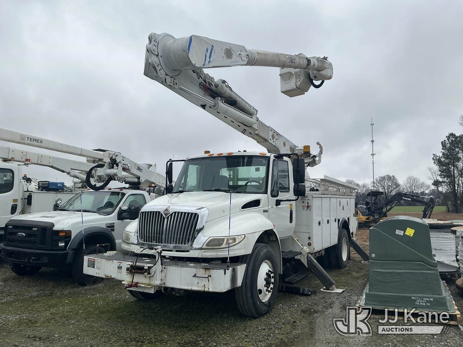 Altec AM55-MH, 60 ft, Over-Center Material Handling Bucket Truck s/n 0813DM4692, with single man bucket & 4 hydraulic outriggers, rear mounted on 2014 International 4300 Utility Truck, 7.6L L6 diesel, Auto, A/C, with front winch, (82,824 miles) (Runs, Moves, Upper Operates) (Missing Upper Plate) This is a Titled Item NOTE: This unit is being sold AS IS/WHERE IS via Timed Auction and is located in La Grange, NC. Inspection & preview days for this unit are by appointment only; please contact us at contact@jjkane.com or 84-Go-JJKane for more details. (Missing manuals, See Auction Company for Manufacturers Information to obtain manuals) (Buyer is responsible for removal. Assistance by consignor or JJ Kane Auctions is not assured.)
