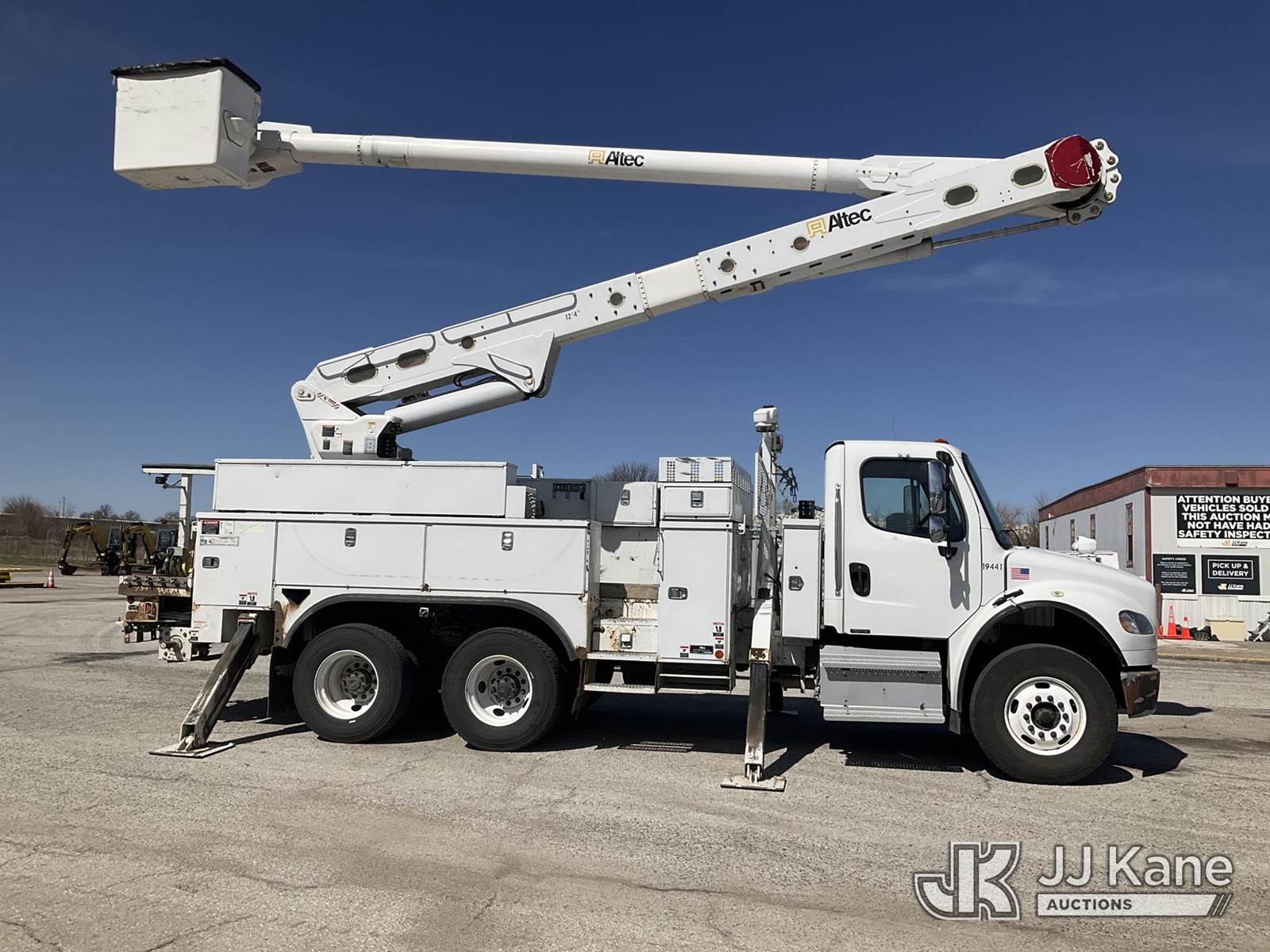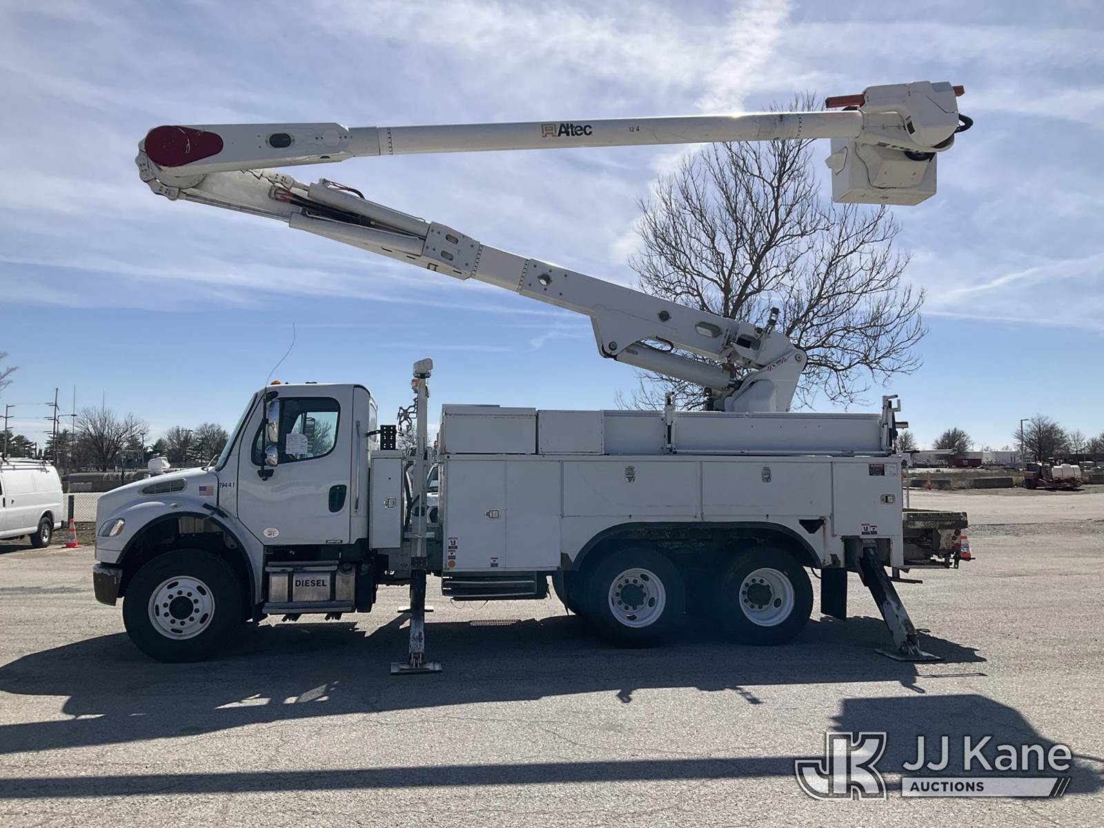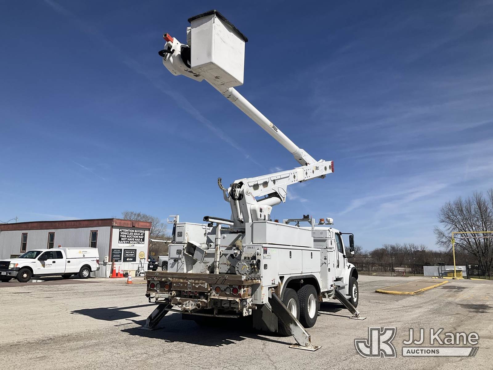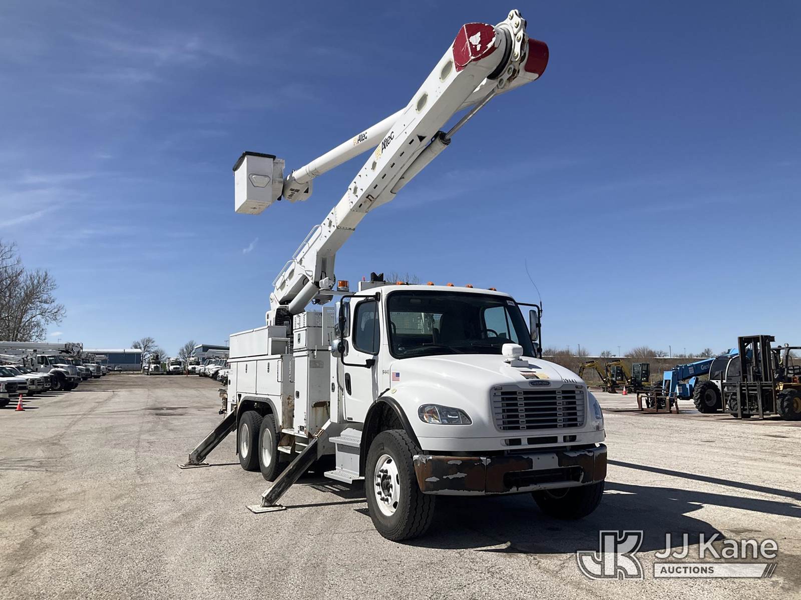 Altec AM60, 65 ft, Over-Center Material Handling Bucket Truck s/n 0513DM4548, with 2 Man Bucket, 4 Hydraulic Outriggers, & Capstan Winch, rear mounted on 2014 Freightliner M2 106 T/A Utility Truck, 8.9L L6 DIESEL 6X4, Auto, A/C, (97,220 miles) (Runs, Moves, & Upper Operates The manufacturer has notified JJ Kane that this equipment is subject to an open recall. CSN 612 Trailer Relay Module Circuit Breaker Change The equipment should not be operated until this is addressed. Buyer is responsible for reviewing the recall notice and contacting the manufacturer to schedule the recommended corrective actions. Associated costs may be covered by the manufacturer in some cases.) (Reads 9,522 hours) This is a Titled Item NOTE: This unit is being sold AS IS/WHERE IS via Timed Auction and is located in Kansas City, MO. Inspection & preview days for this unit are the 2 business days prior to the first day of items closing for this auction, item is located at 962 Tel Aviv Ave Kansas City, MO 64153 and hours of operations are 8a-4p. For pre-sale questions, please contact Ricky McPherson @ (816) 610-2250. (Missing manuals, See Auction Company for Manufacturers Information to obtain manuals) (Buyer is responsible for removal. Assistance by consignor or JJ Kane Auctions is not assured.)