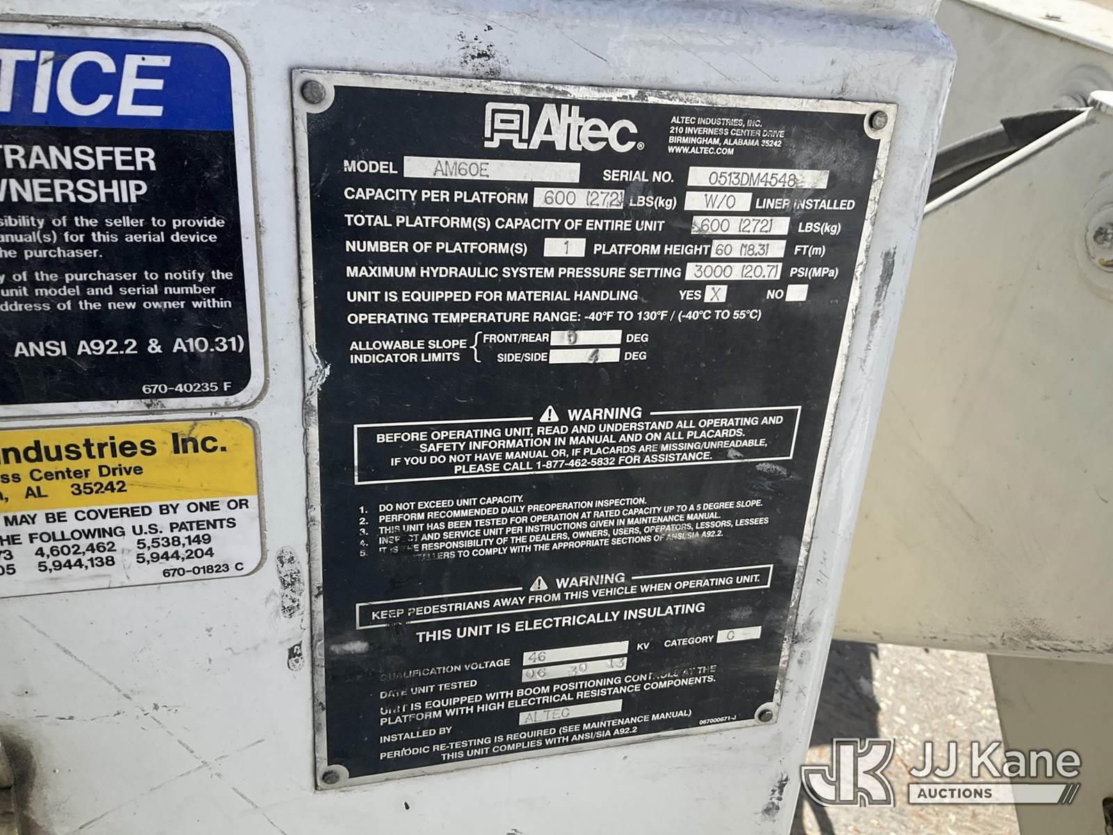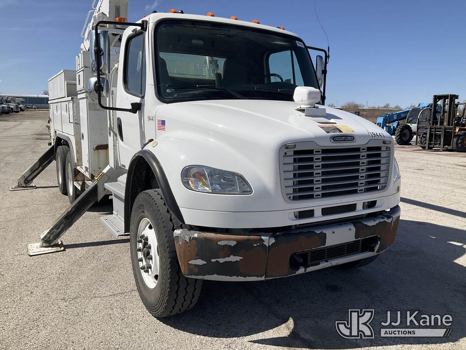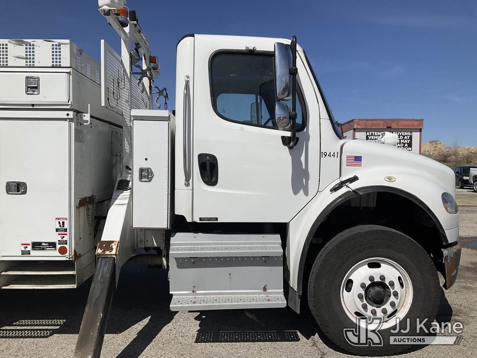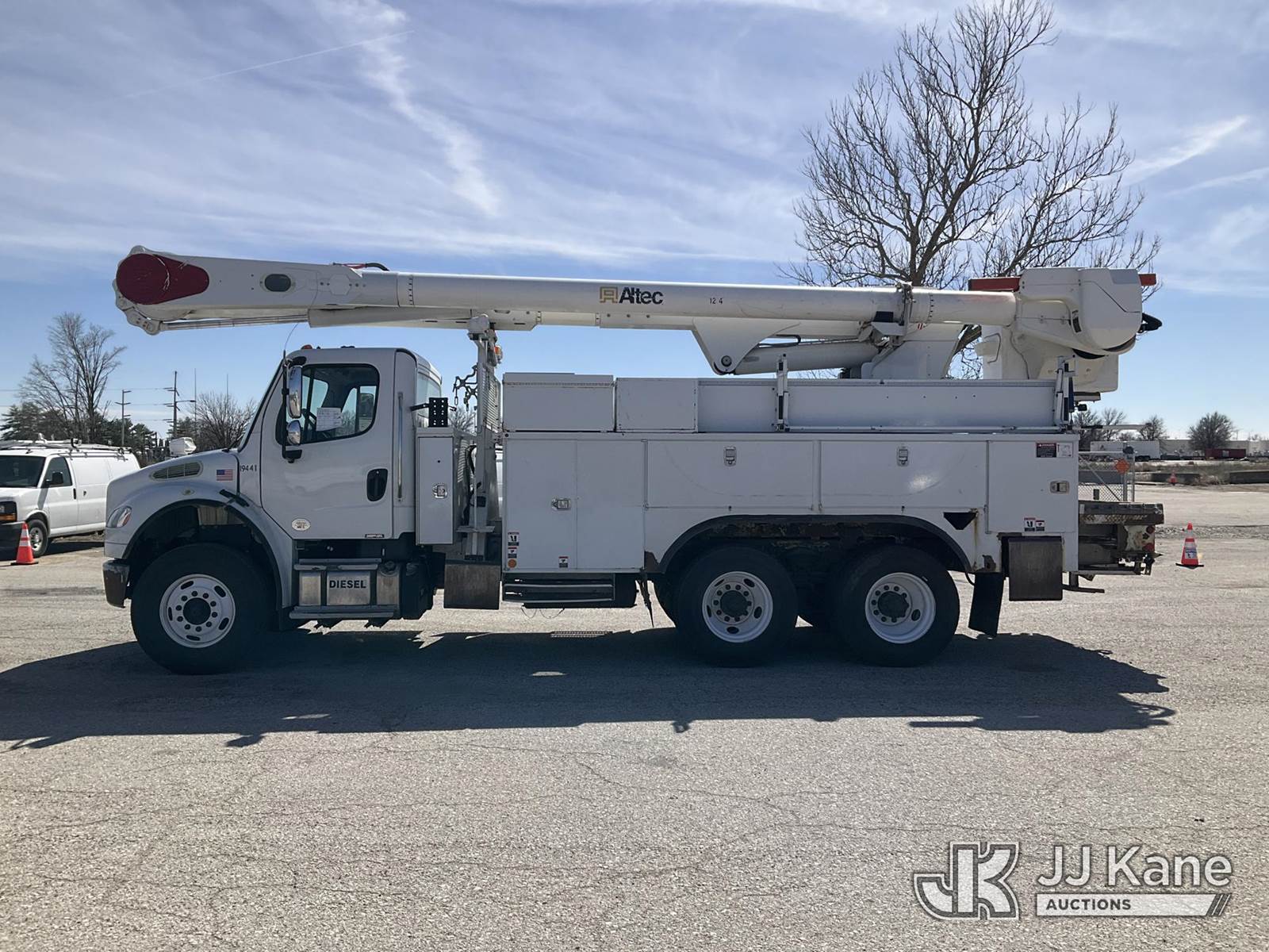 Altec AM60, 65 ft, Over-Center Material Handling Bucket Truck s/n 0513DM4548, with 2 Man Bucket, 4 Hydraulic Outriggers, & Capstan Winch, rear mounted on 2014 Freightliner M2 106 T/A Utility Truck, 8.9L L6 DIESEL 6X4, Auto, A/C, (97,220 miles) (Runs, Moves, & Upper Operates The manufacturer has notified JJ Kane that this equipment is subject to an open recall. CSN 612 Trailer Relay Module Circuit Breaker Change The equipment should not be operated until this is addressed. Buyer is responsible for reviewing the recall notice and contacting the manufacturer to schedule the recommended corrective actions. Associated costs may be covered by the manufacturer in some cases.) (Reads 9,522 hours) This is a Titled Item NOTE: This unit is being sold AS IS/WHERE IS via Timed Auction and is located in Kansas City, MO. Inspection & preview days for this unit are the 2 business days prior to the first day of items closing for this auction, item is located at 962 Tel Aviv Ave Kansas City, MO 64153 and hours of operations are 8a-4p. For pre-sale questions, please contact Ricky McPherson @ (816) 610-2250. (Missing manuals, See Auction Company for Manufacturers Information to obtain manuals) (Buyer is responsible for removal. Assistance by consignor or JJ Kane Auctions is not assured.)