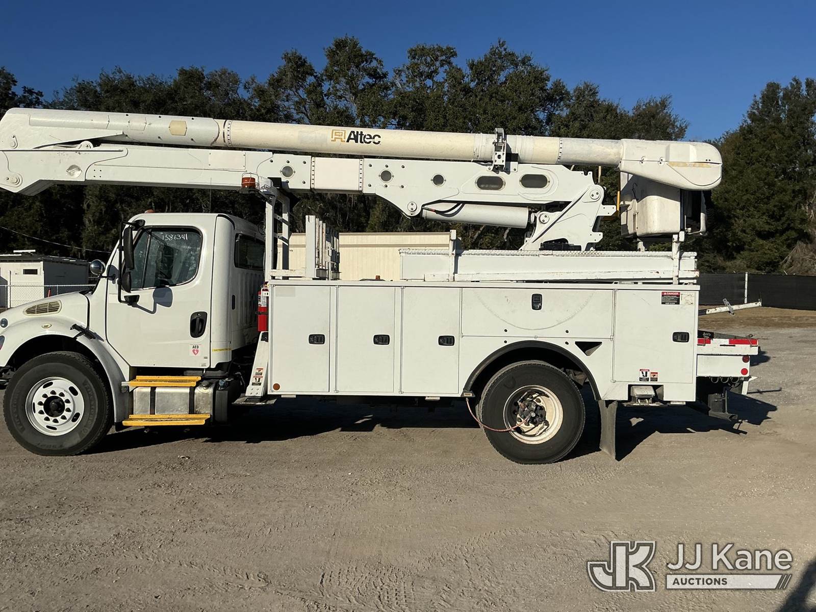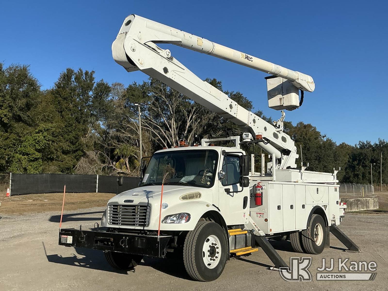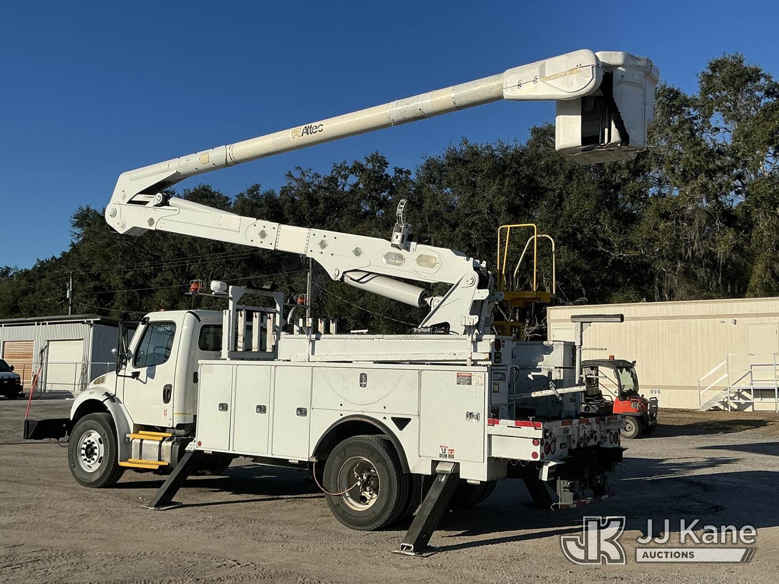 Altec AN55E-OC, 60 ft, Bucket Truck s/n 1213FK0330, with two man bucket, rear mounted on 2014 Freightliner M2 Medium Duty Utility Truck, 6.7L diesel, 4X2, Auto, A/C, with front winch, (84,849 miles) Radio NOT Included (Runs, Moves & Upper Operates) (Radio NOT Included) (FL Residents Purchasing Titled Items - tax, title & registration fees will be collected at the maximum rate of $400.00 under 25,999 and $800.00 for Over 26,000 and $250.00 trailers - Proof of insurance is mandatory; Out of State Residents Purchasing Title Items - tax will be collected based upon your state rate.) This is a Titled Item NOTE: This unit is being sold AS IS/WHERE IS via Timed Auction and is located in Thonotosassa, FL. Inspection & preview days for this unit are the 2 business days prior to the first day of items closing for this auction, item is located at 11720 N US 301 Thonotosassa, Fl 33592 and hours of operations are 8a-4p. For pre-sale questions, please contact Office Staff @ (813) 986-2485. (Manuals provided in cab) (Buyer is responsible for removal. Assistance by consignor or JJ Kane Auctions is not assured.)