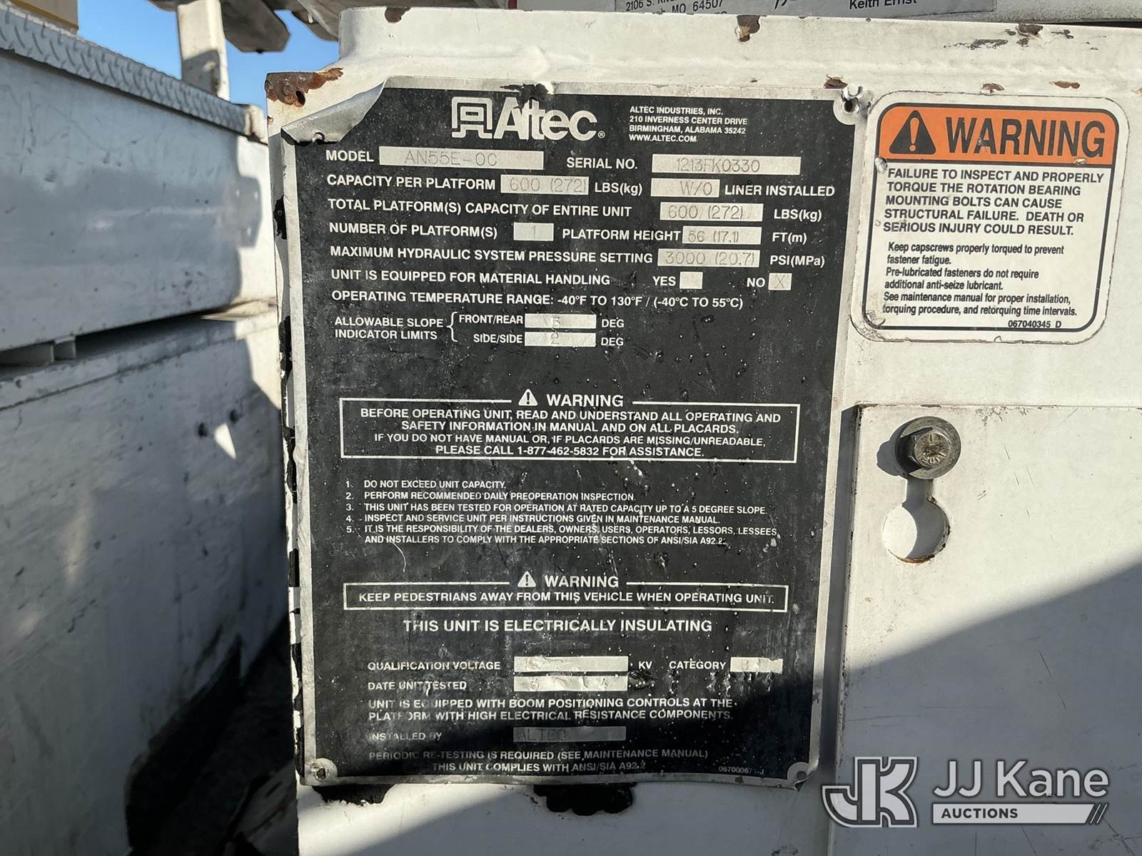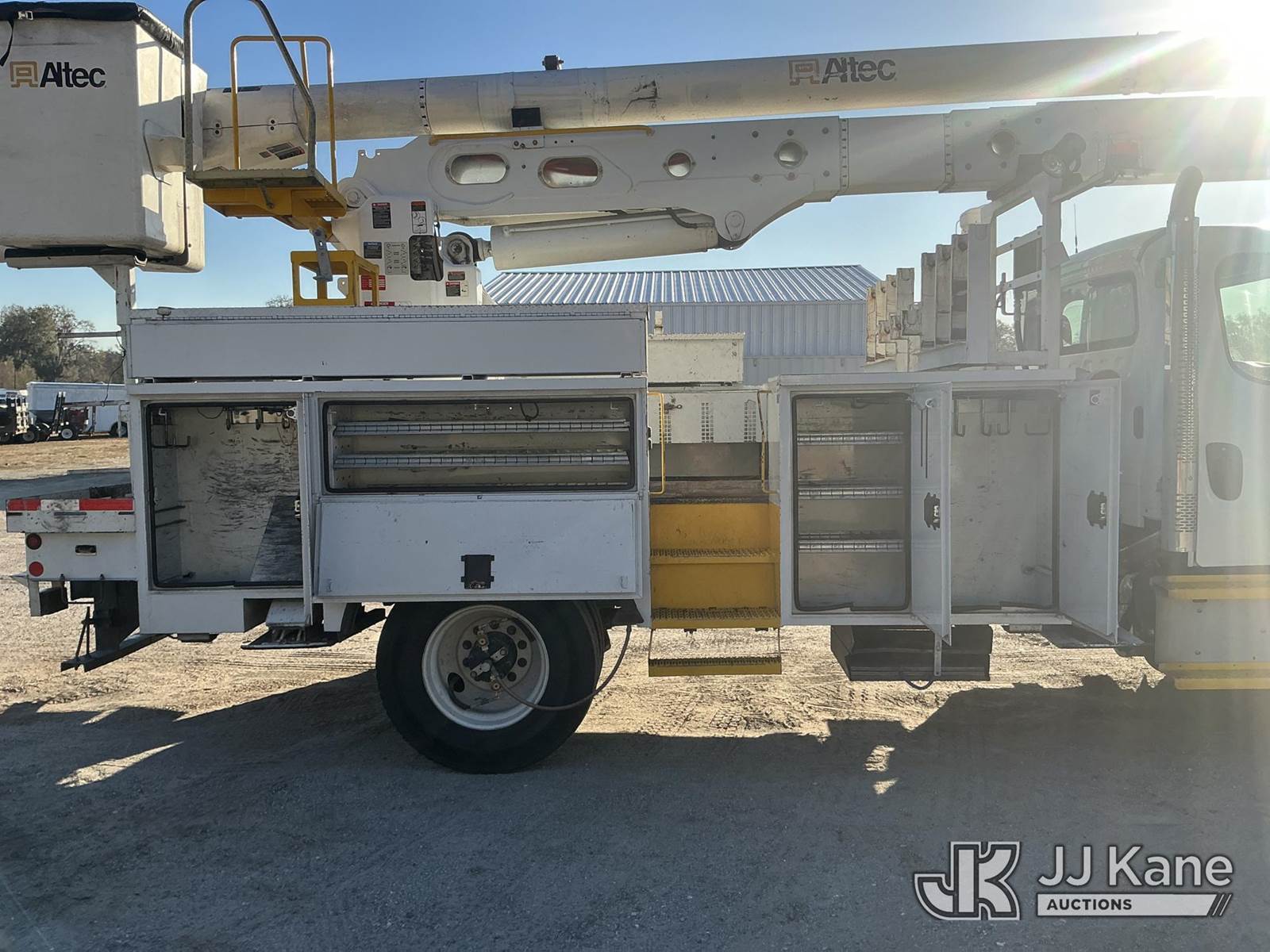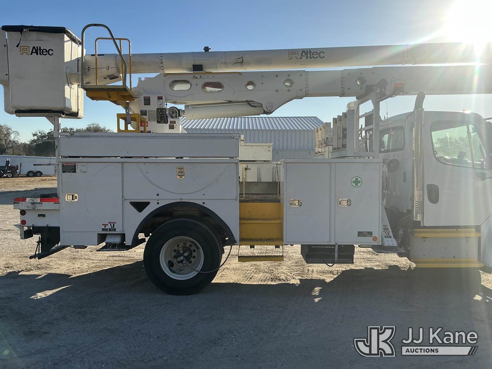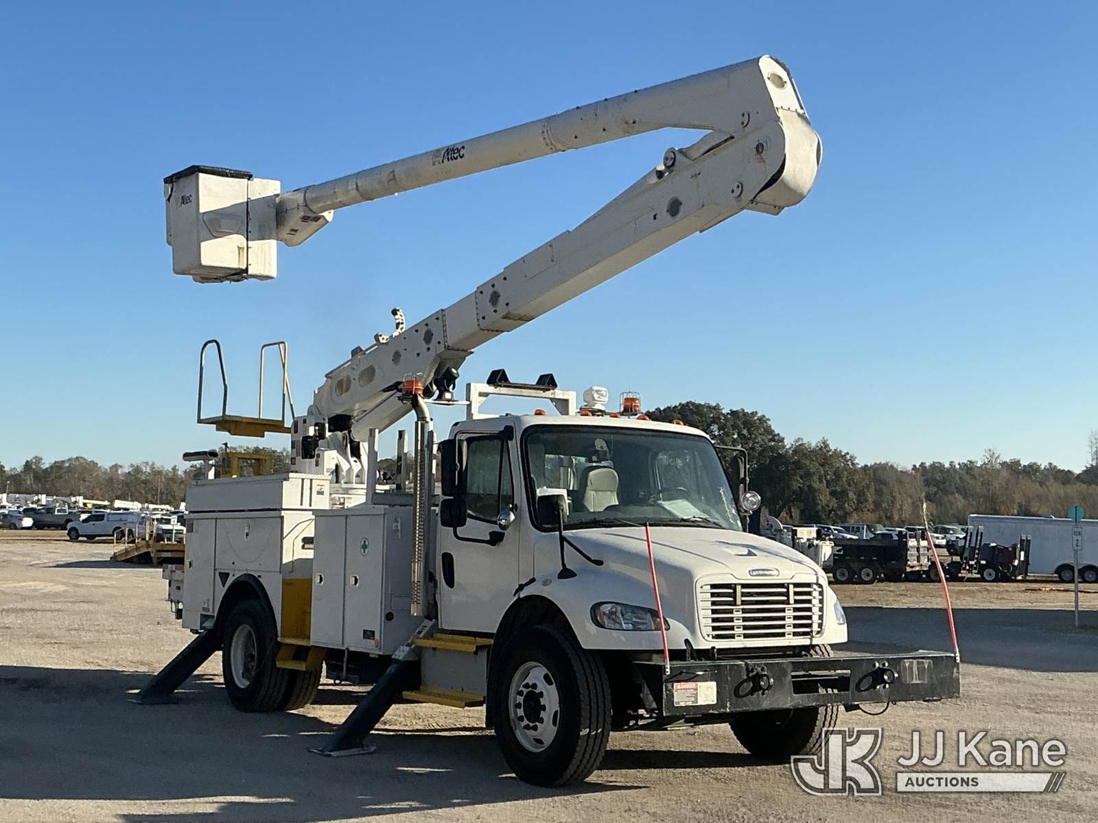 Altec AN55E-OC, 60 ft, Bucket Truck s/n 1213FK0330, with two man bucket, rear mounted on 2014 Freightliner M2 Medium Duty Utility Truck, 6.7L diesel, 4X2, Auto, A/C, with front winch, (84,849 miles) Radio NOT Included (Runs, Moves & Upper Operates) (Radio NOT Included) (FL Residents Purchasing Titled Items - tax, title & registration fees will be collected at the maximum rate of $400.00 under 25,999 and $800.00 for Over 26,000 and $250.00 trailers - Proof of insurance is mandatory; Out of State Residents Purchasing Title Items - tax will be collected based upon your state rate.) This is a Titled Item NOTE: This unit is being sold AS IS/WHERE IS via Timed Auction and is located in Thonotosassa, FL. Inspection & preview days for this unit are the 2 business days prior to the first day of items closing for this auction, item is located at 11720 N US 301 Thonotosassa, Fl 33592 and hours of operations are 8a-4p. For pre-sale questions, please contact Office Staff @ (813) 986-2485. (Manuals provided in cab) (Buyer is responsible for removal. Assistance by consignor or JJ Kane Auctions is not assured.)