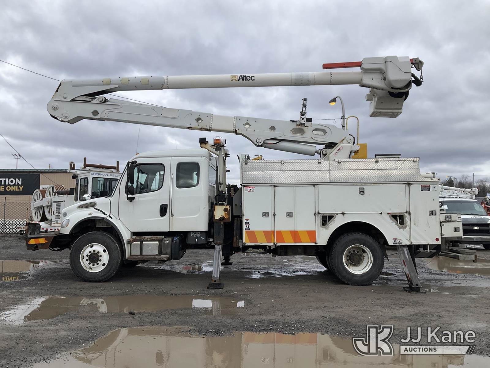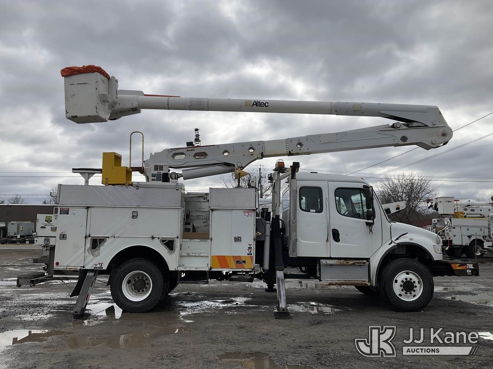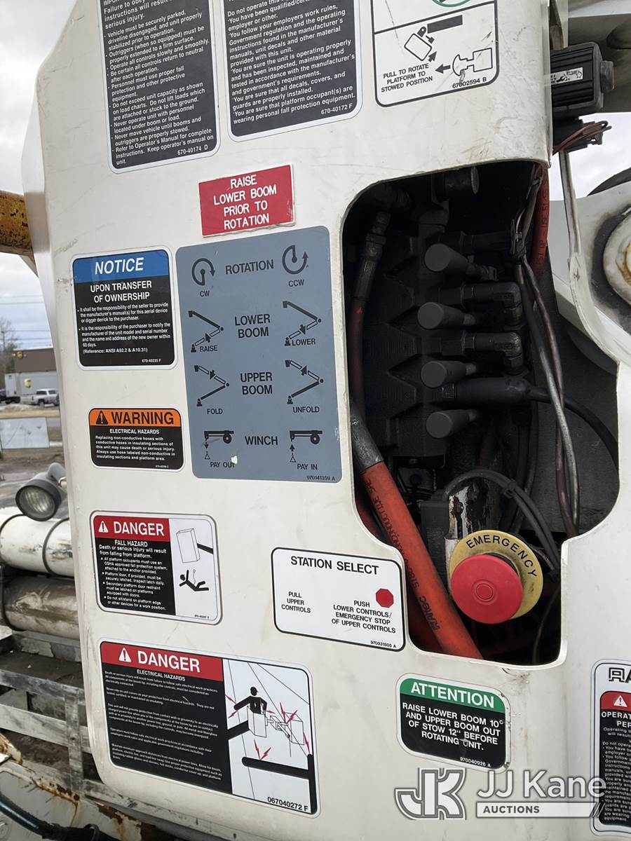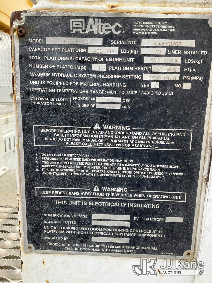 Altec AN55E-OC, 60 ft, Material Handling Bucket Truck s/n 1013FK0262, with Single man Bucket & 4 Outriggers , rear mounted on 2014 Freightliner M2 106 4x4 Extended-Cab Utility Truck, 6.7L diesel, Auto, A/C, with Front Bumper Capstan/ Winch , (133,991 miles) (Runs, Moves & Upper Operates, Jump To Start) This is a Titled Item NOTE: This unit is being sold AS IS/WHERE IS via Timed Auction and is located in Rome, NY. Inspection & preview days for this unit are the 2 business days prior to the first day of items closing for this auction, item is located at 5835 Success Dr Rome, NY 13440 and hours of operations are 8a-4p. For pre-sale questions, please contact Ryan Jackson @ (315) 749-3790 or Ryan.Jackson@jjkane.com. (Manuals provided in cab) Sales Tax Collected Based on Residency (Buyer is responsible for removal. Assistance by consignor or JJ Kane Auctions is not assured.)