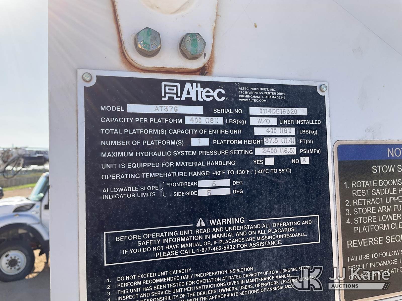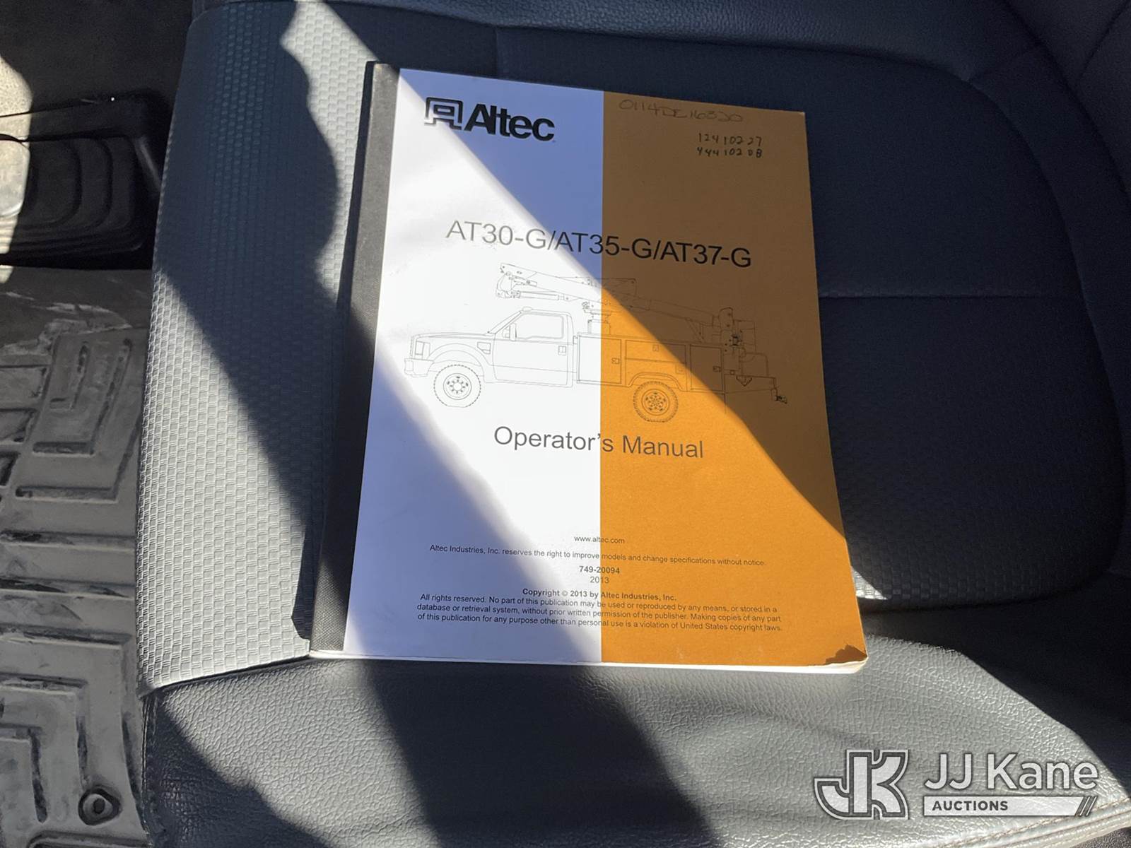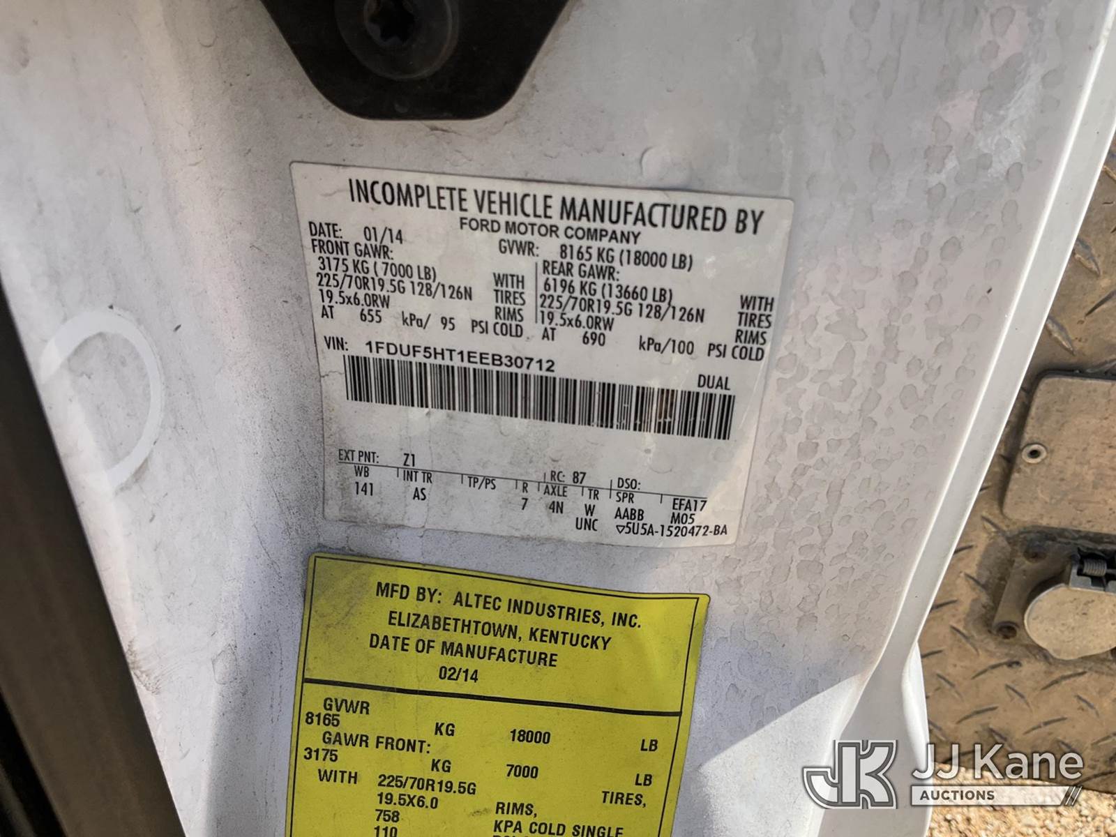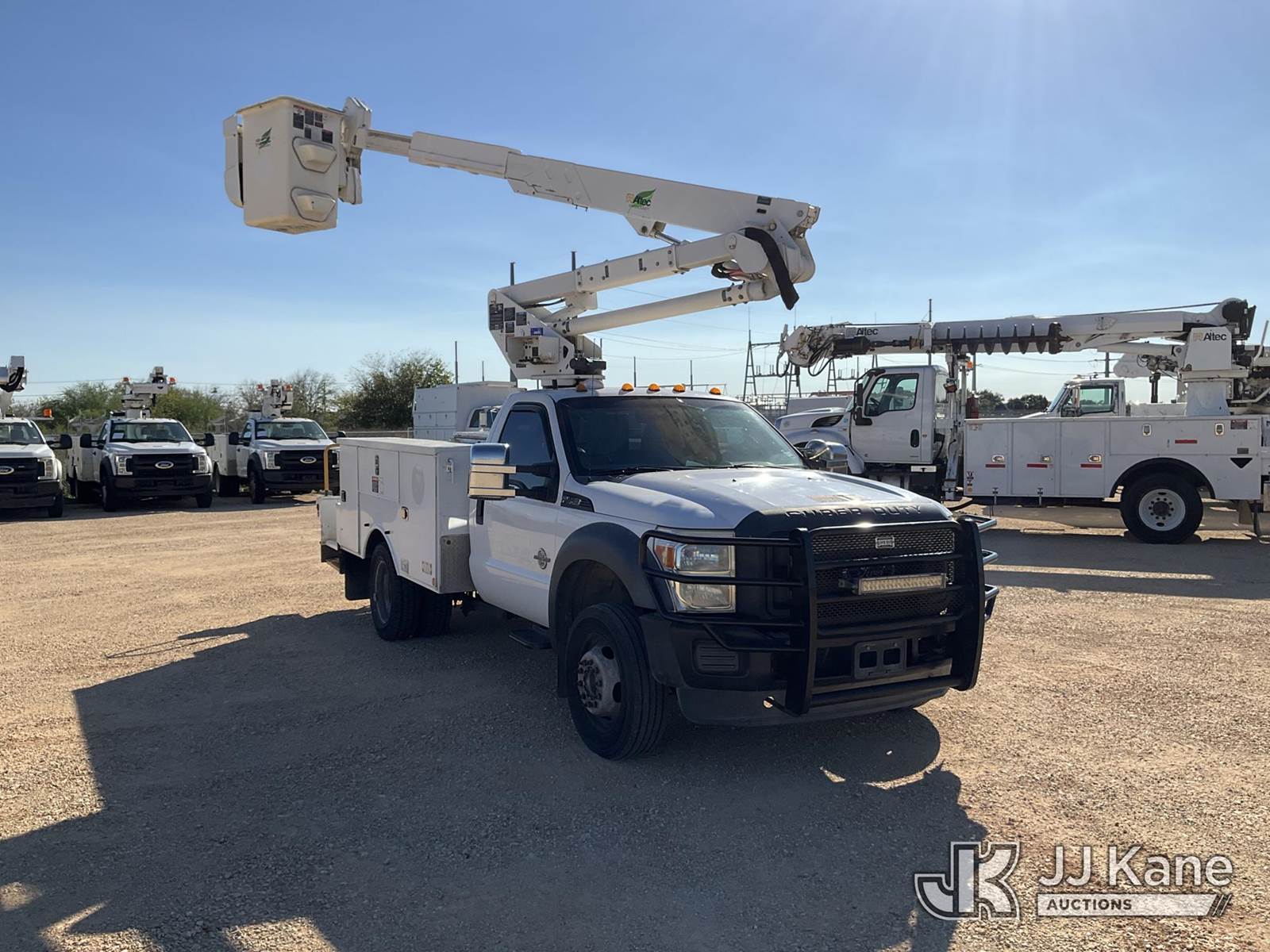 Altec AT37G, 42 ft, Articulating & Telescopic Bucket s/n 0114DE16320, with single man bucket, mounted behind cab on 2014 Ford F550 4x4 Service Truck, 6.7L diesel, Auto, A/C, with backup camera, (101,388 miles) (Runs, Moves, & Upper Operates) (Hail Damage) This is a Titled Item NOTE: This unit is being sold AS IS/WHERE IS via Timed Auction and is located in Marion, TX. Inspection & preview days for this unit are the 2 business days prior to the first day of items closing for this auction, item is located at 3292 S Santa Clara Rd Marion, TX 78124 and hours of operations are 8a-4p. For pre-sale questions, please contact Brian Jarrell @ 210-540-3147. (Manuals provided in cab) (Buyer is responsible for removal. Assistance by consignor or JJ Kane Auctions is not assured.)