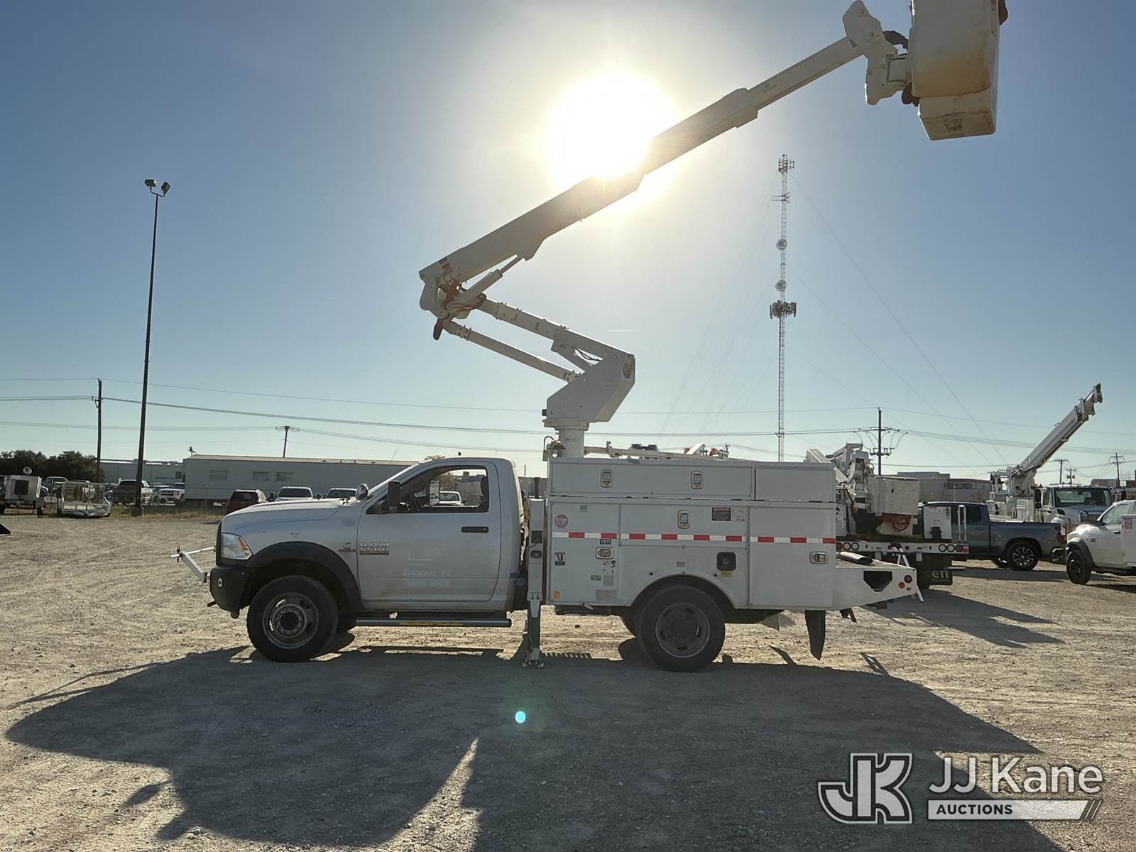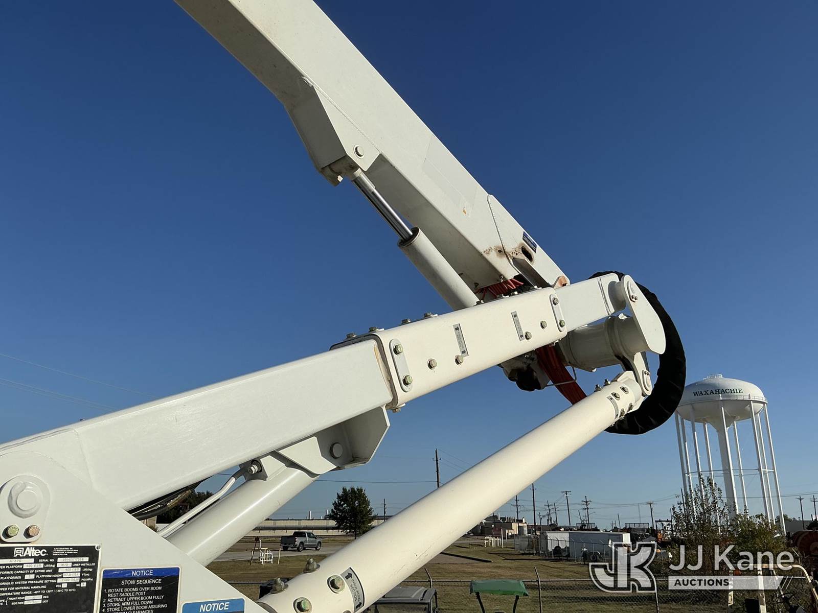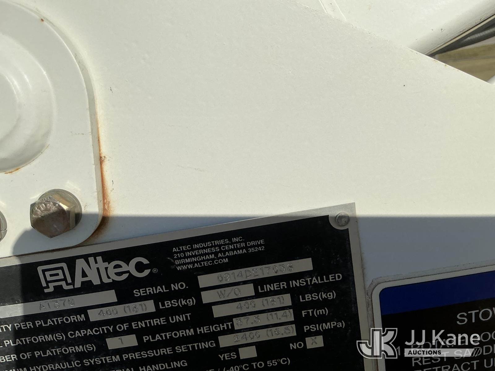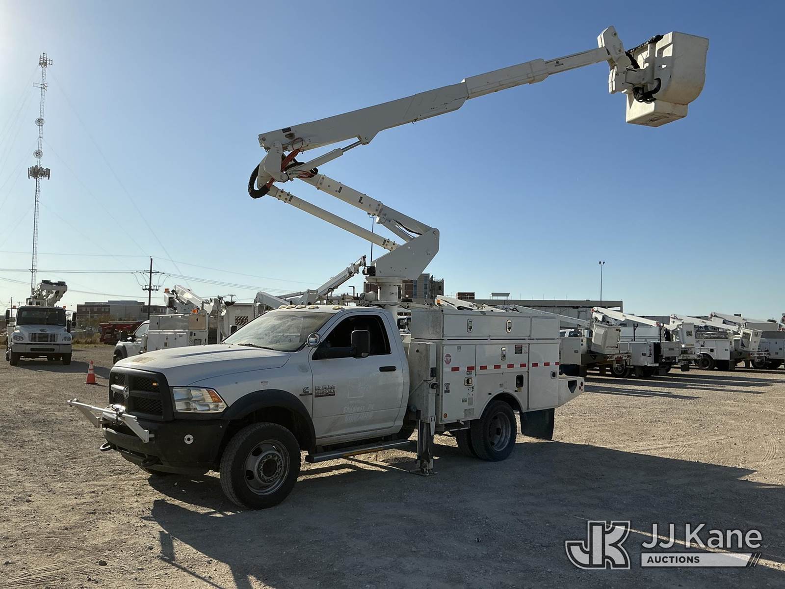 Altec AT37G, 42 ft, Articulating & Telescopic Bucket Truck s/n 0914DE17038, with Single-Man Bucket, mounted behind cab on 2014 RAM 5500 Service Truck, 6.7L Diesel Auto, 4wd, A/C, with Backup Camera , (118,632 miles (unverified)) (Runs, Moves & Upper Operates) This is a Titled Item NOTE: This unit is being sold AS IS/WHERE IS via Timed Auction and is located in Waxahachie, TX. Inspection & preview days for this unit are the 2 business days prior to the first day of items closing for this auction, item is located at 999 Solon Rd Waxahachie, TX 75165 and hours of operations are 8a-4p. For pre-sale questions, please contact Alex Bayless @ (469) 550-4938. (Manuals provided in cab) (Buyer is responsible for removal. Assistance by consignor or JJ Kane Auctioneers is not assured.)