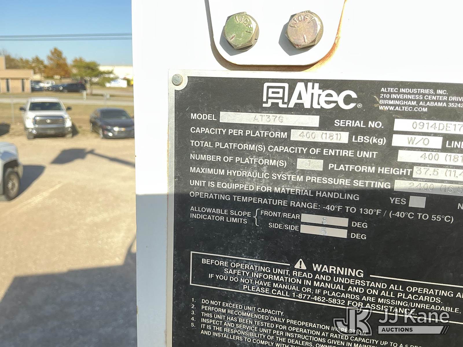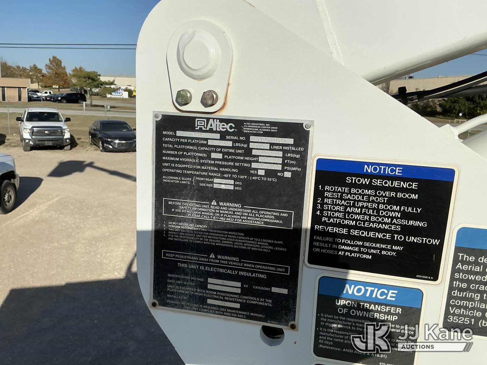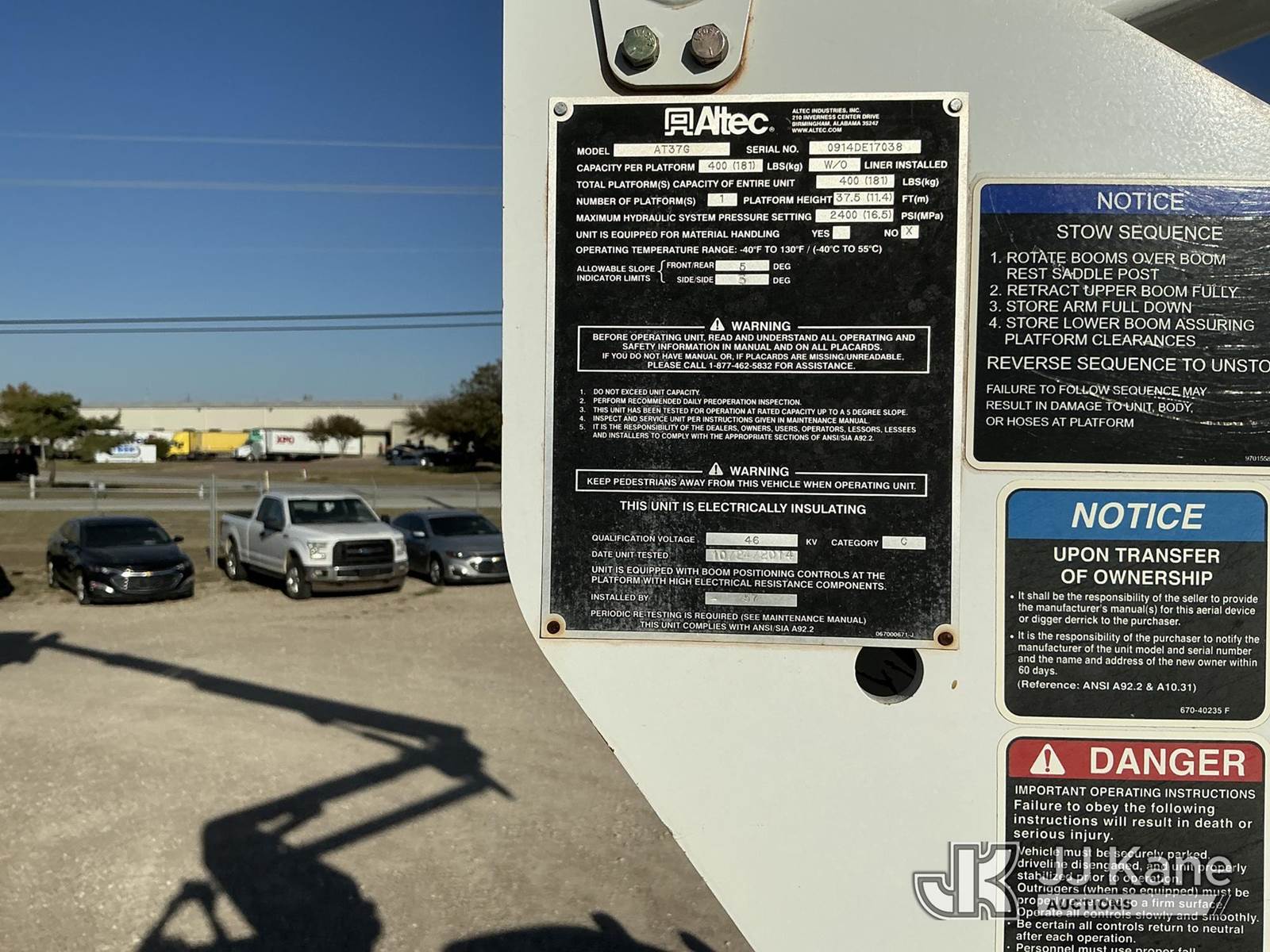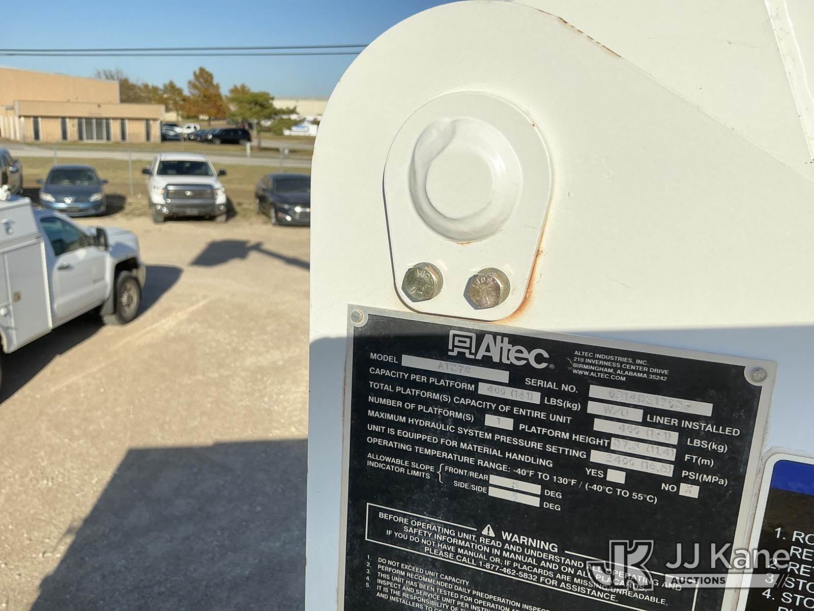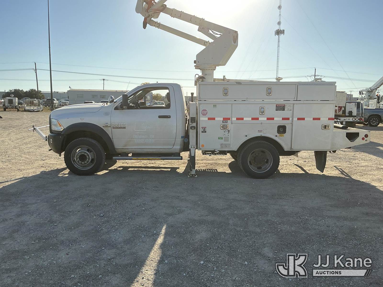 Altec AT37G, 42 ft, Articulating & Telescopic Bucket Truck s/n 0914DE17038, with Single-Man Bucket, mounted behind cab on 2014 RAM 5500 Service Truck, 6.7L Diesel Auto, 4wd, A/C, with Backup Camera , (118,632 miles (unverified)) (Runs, Moves & Upper Operates) This is a Titled Item NOTE: This unit is being sold AS IS/WHERE IS via Timed Auction and is located in Waxahachie, TX. Inspection & preview days for this unit are the 2 business days prior to the first day of items closing for this auction, item is located at 999 Solon Rd Waxahachie, TX 75165 and hours of operations are 8a-4p. For pre-sale questions, please contact Alex Bayless @ (469) 550-4938. (Manuals provided in cab) (Buyer is responsible for removal. Assistance by consignor or JJ Kane Auctioneers is not assured.)
