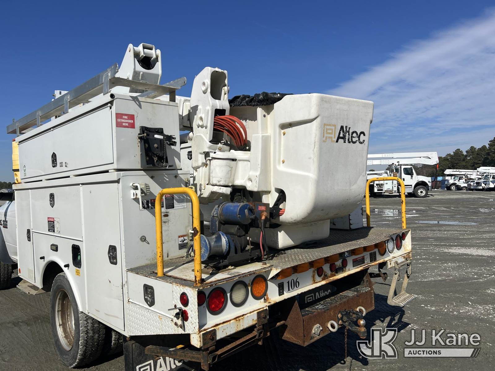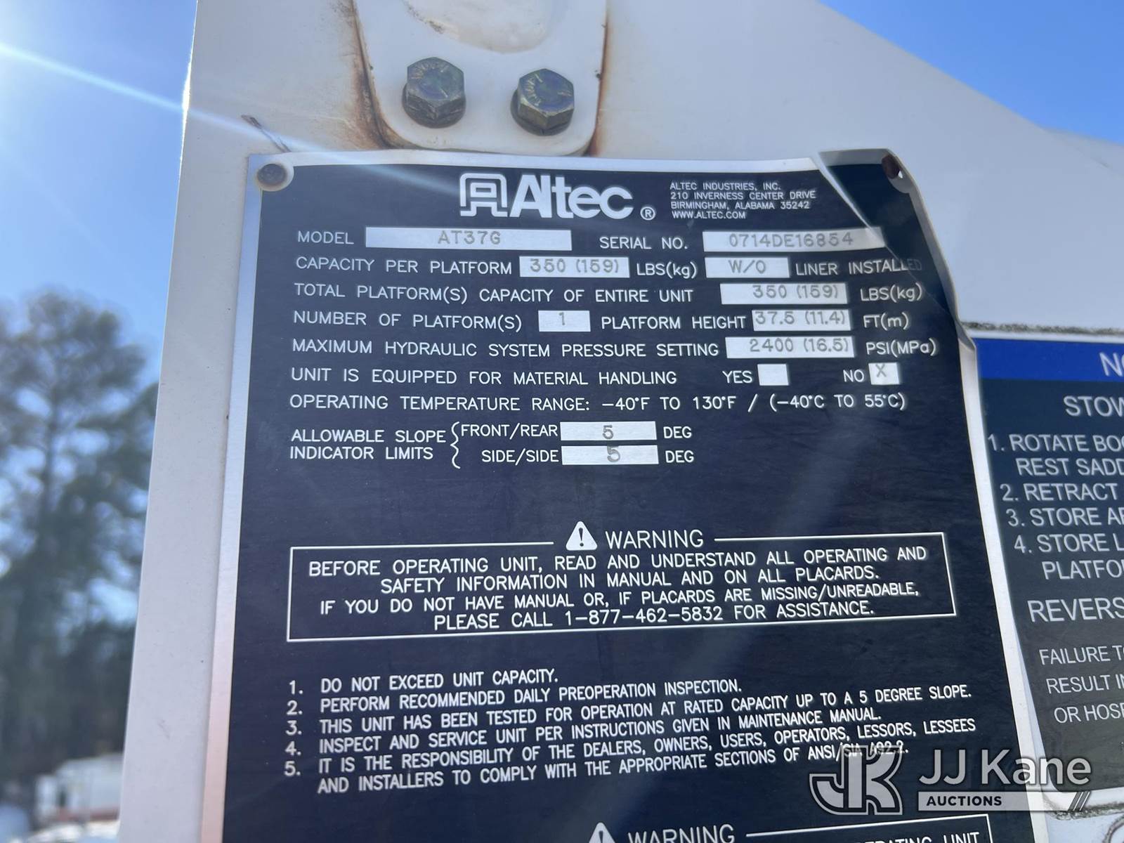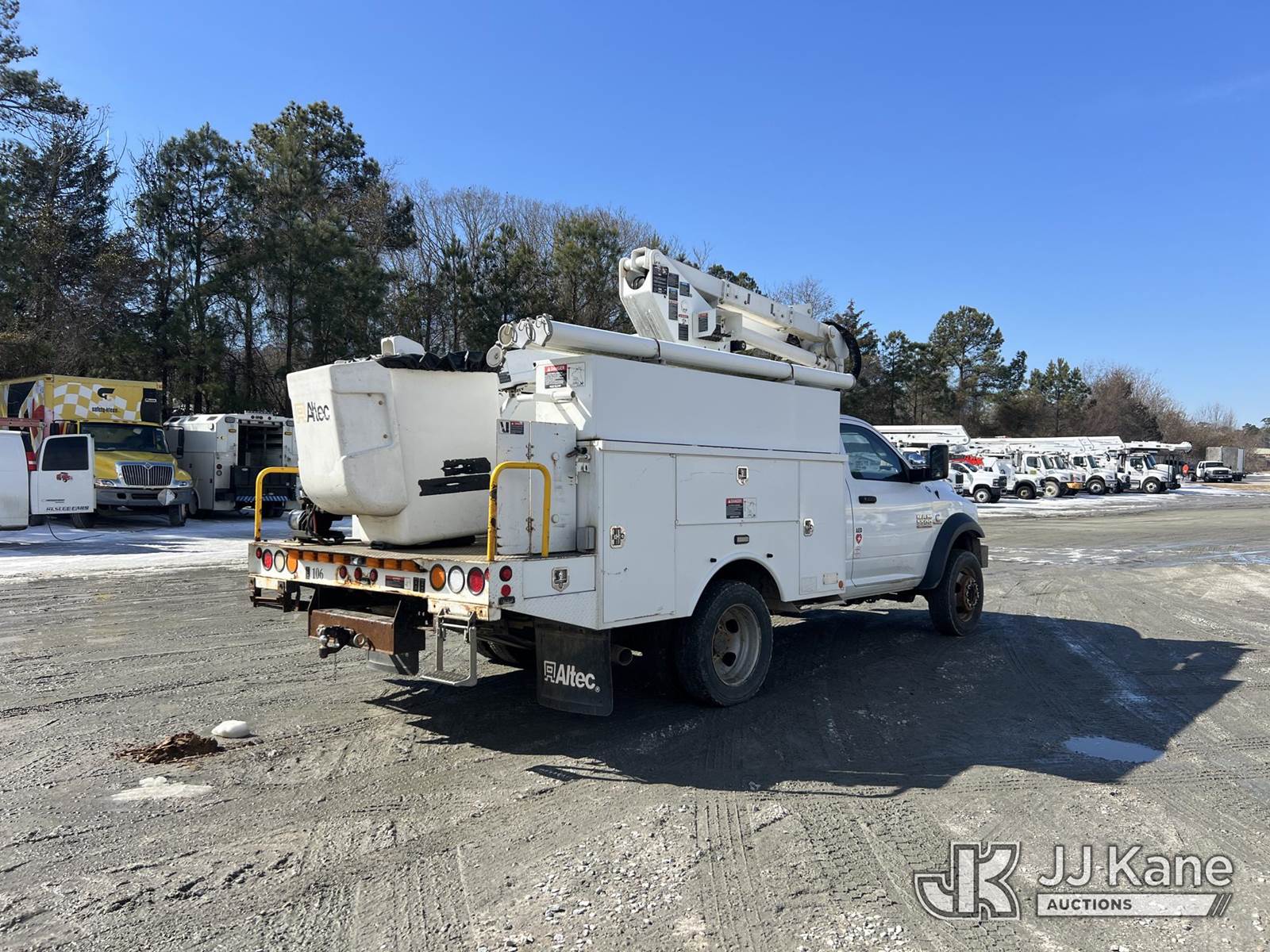 Altec AT37G, 42 ft, Articulating & Telescopic Bucket Truck s/n 0714DE16854, with single-man bucket, mounted behind cab on 2014 RAM 5500 4x4 Service Truck, Cummins 6.7L diesel, Auto, A/C, with electric capstan winch, (282,093 miles) (Runs & Moves) (Jump To Start, Upper Not Operating, Condition Unknown, Check Engine Light On, Rust Damage) This is a Titled Item NOTE: This unit is being sold AS IS/WHERE IS via Timed Auction and is located in Chester, VA. Inspection & preview days for this unit are the 2 business days prior to the first day of items closing for this auction, item is located at 13301 Great Coastal Dr Chester, VA 23836 and hours of operations are 8a-3p. For pre-sale questions, please contact Doug Caton @ 804-807-4574. (Manuals provided in cab) (Buyer is responsible for removal. Assistance by consignor or JJ Kane Auctions is not assured.)