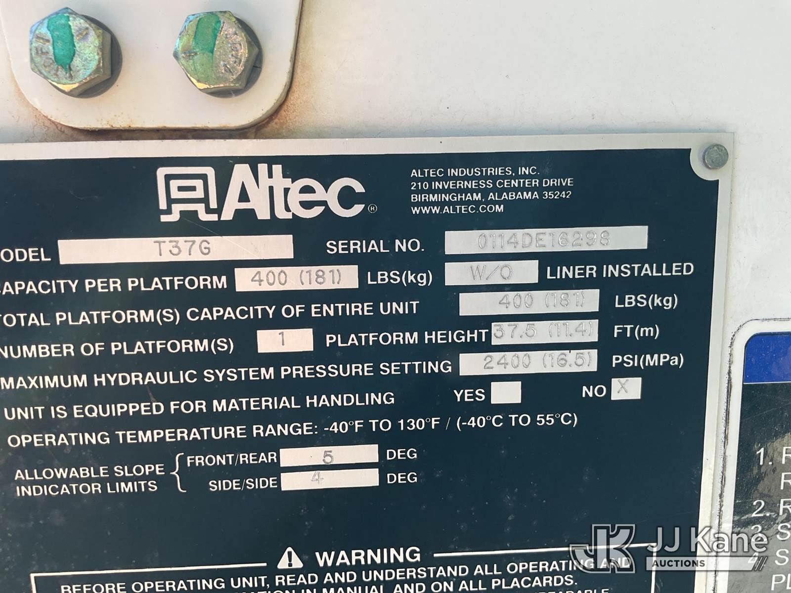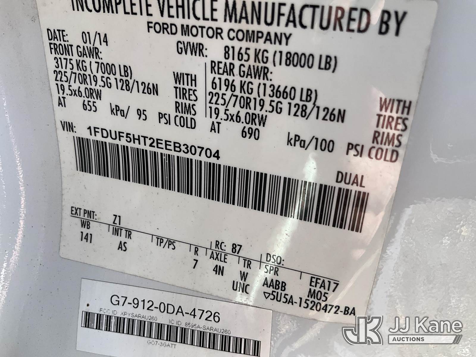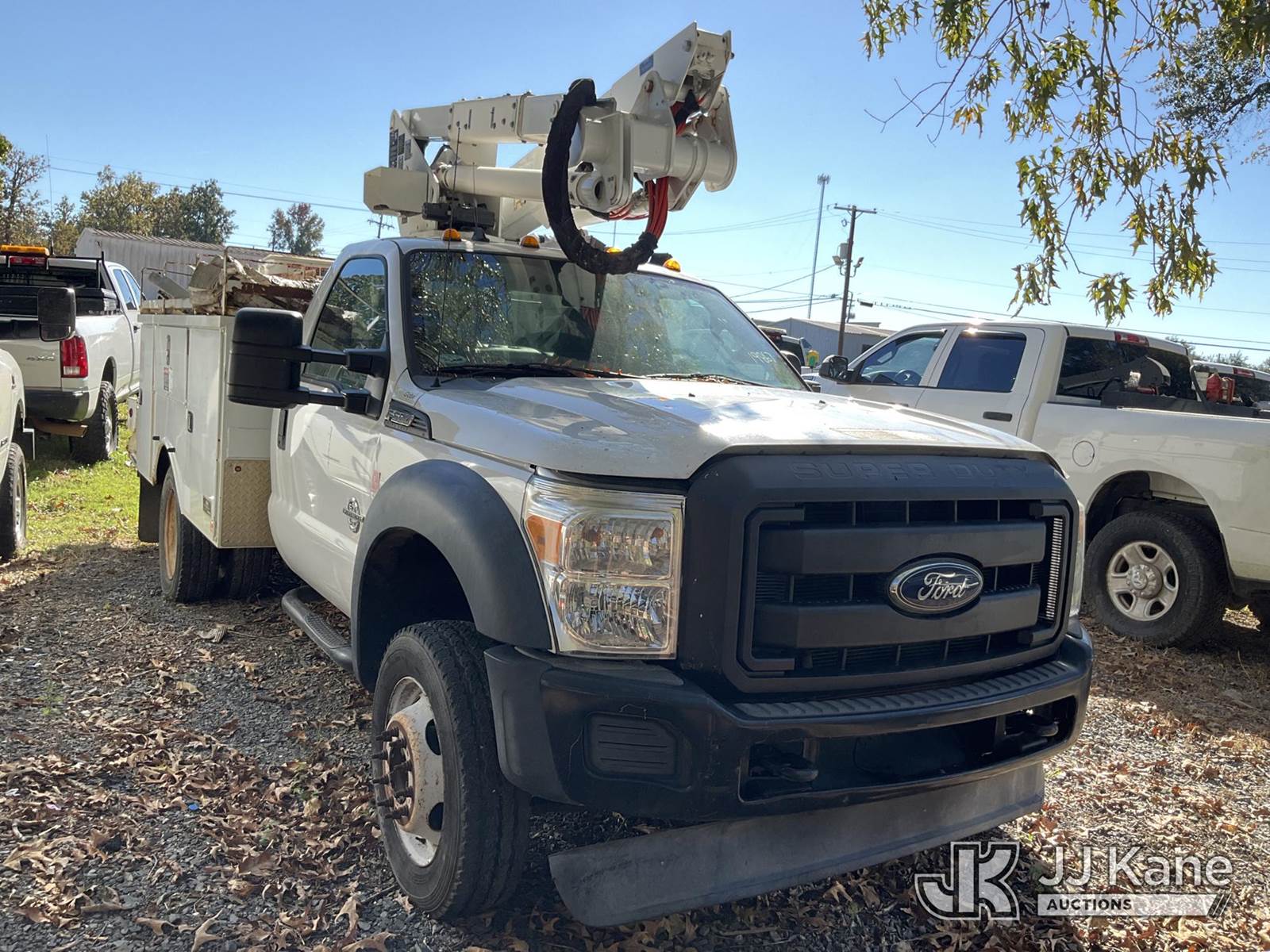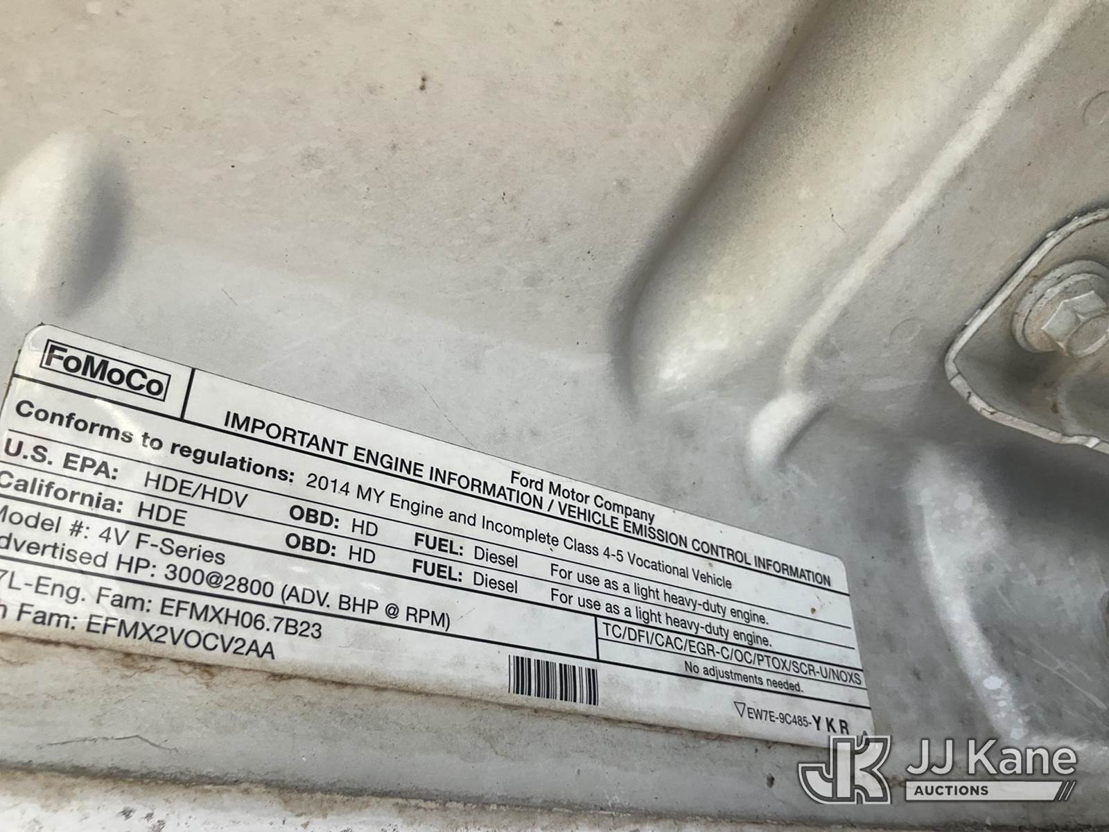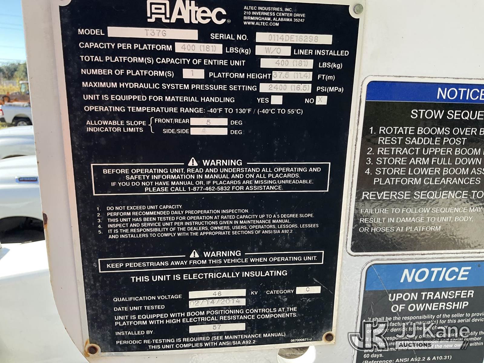 Altec AT37G, 42 ft, Articulating & Telescopic Material Handling Bucket Truck s/n 0114DE16298, with single-man bucket, mounted behind cab on 2014 Ford F550 Service Truck, 6.7L diesel 4wd, Auto, A/C, (146,750 miles) (Not Running, Condition Unknown, Upper Condition Unknown) (Per Seller: "Engine Bad Needs To Be Replaced" Jump for Odometer) This is a Titled Item NOTE: This unit is being sold AS IS/WHERE IS via Timed Auction and is located in Waxahachie, TX. Inspection & preview days for this unit are the 2 business days prior to the first day of items closing for this auction, item is located at 999 Solon Rd Waxahachie, TX 75165 and hours of operations are 8a-4p. For pre-sale questions, please contact Alex Bayless @ (469) 550-4938. (Missing manuals, See Auction Company for Manufacturers Information to obtain manuals) (Buyer is responsible for removal. Assistance by consignor or JJ Kane Auctions is not assured.)