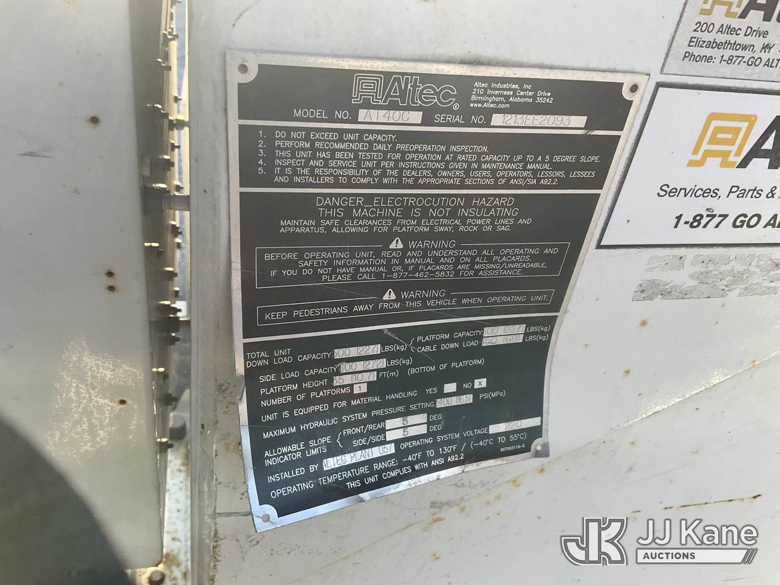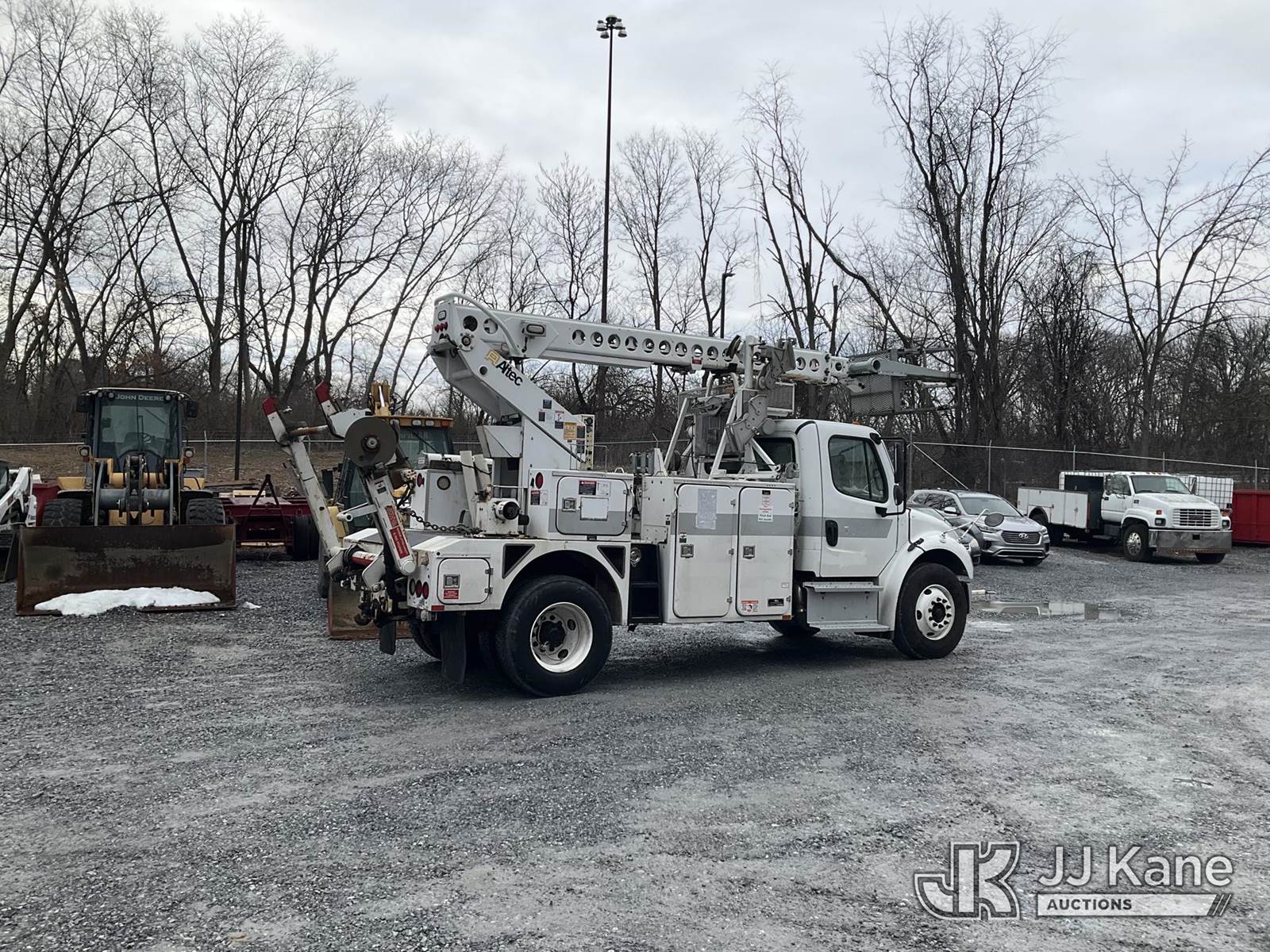 Altec AT40C, 40 ft, Non-Insulated Cable Placing Bucket s/n 1213EE2093, with Single Man Bucket, mounted on 2014 Freightliner M2 106 Utility Truck, 6.7L L6 Diesel, Auto, A/C, (100,427 miles) (Runs & Moves, PTO Not Engaging, Conditions Unknown, Check Engine Light On, “Requires ANSI Inspection for Repair/Replacement Requirements” ) (Removal is by Appointment Only, Buyer MUST make a appointment prior to picking up, Buyer/Transporter Must have PAID IN FULL RELEASE. No onsite assistance available, Please Come prepared) The manufacturer has notified JJ Kane that this equipment is subject to an open recall. CSN 612 Trailer Relay Module Circuit Breaker Change The equipment should not be operated until this is addressed. Buyer is responsible for reviewing the recall notice and contacting the manufacturer to schedule the recommended corrective actions. Associated costs may be covered by the manufacturer in some cases.) (Reads 3,123 hours) This is a Titled Item NOTE: This unit is being sold AS IS/WHERE IS via Timed Auction and is located in Hagerstown, MD. Inspection & preview days for this unit are by appointment only; please contact us at contact@jjkane.com or 84-Go-JJKane for more details. For pre-sale questions, please contact the on-site office @ (301) 895-7777 or Kevin.Waggoner@JJKane.com. (Missing manuals, See Auction Company for Manufacturers Information to obtain manuals) (Buyer is responsible for removal. Assistance by consignor or JJ Kane Auctions is not assured.)