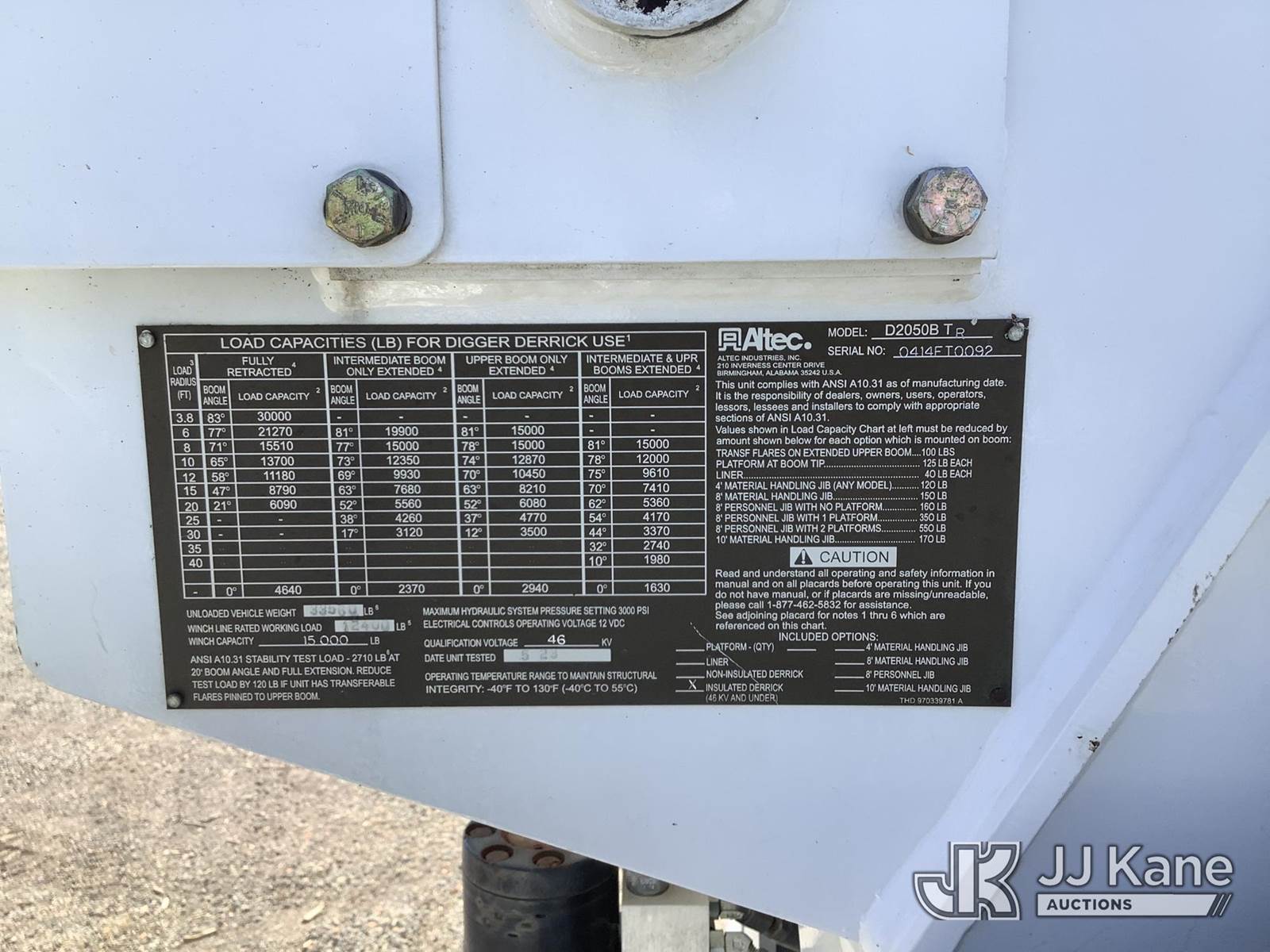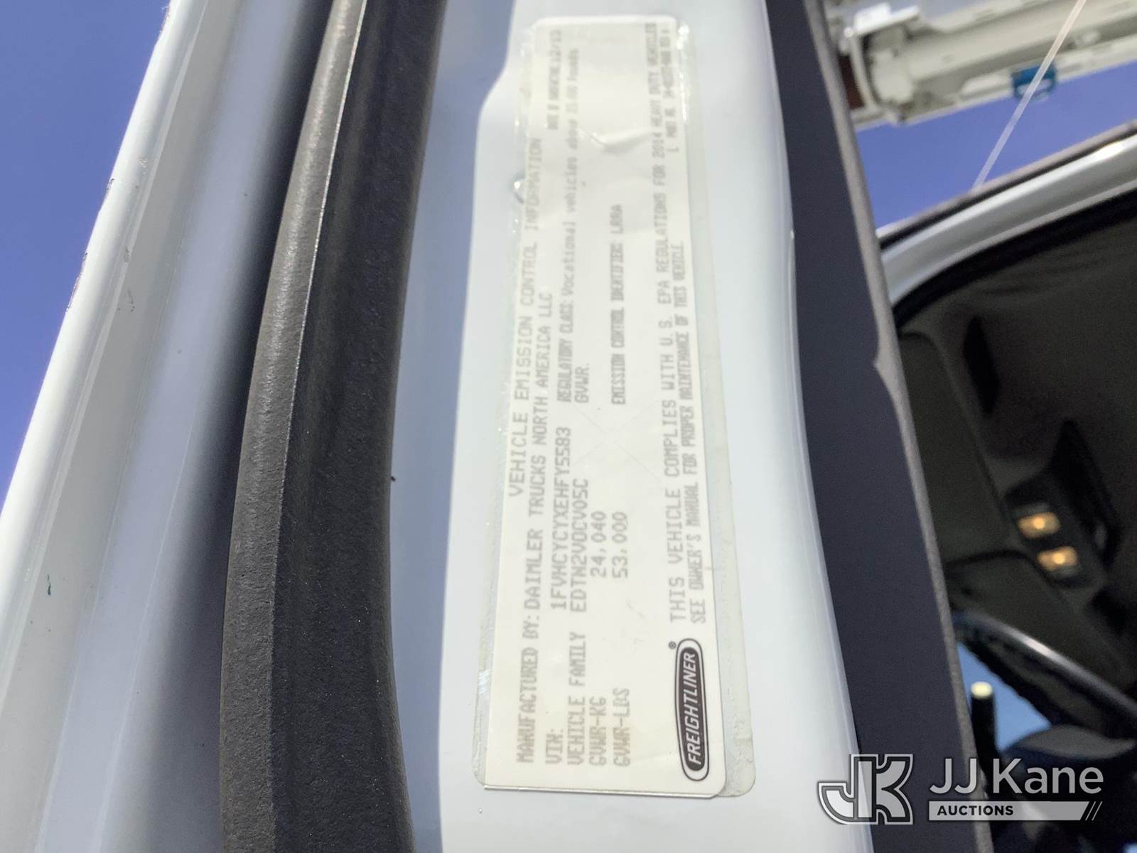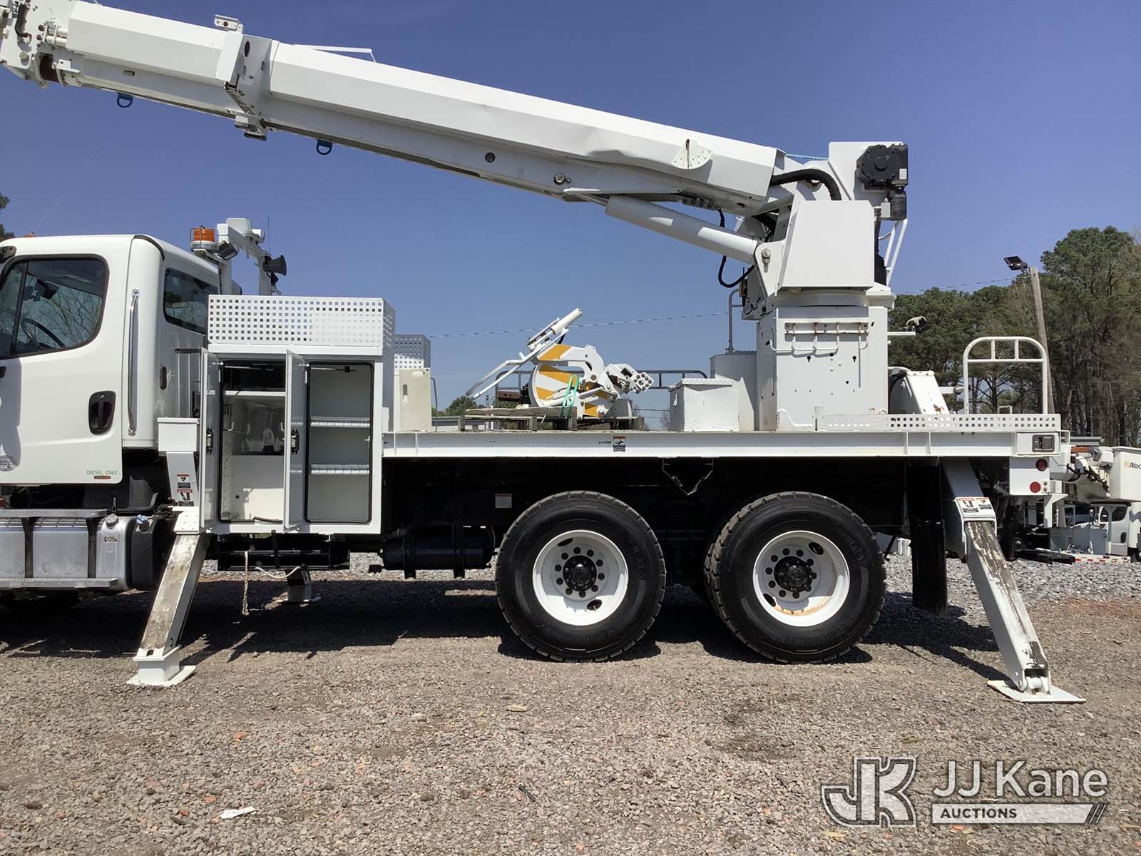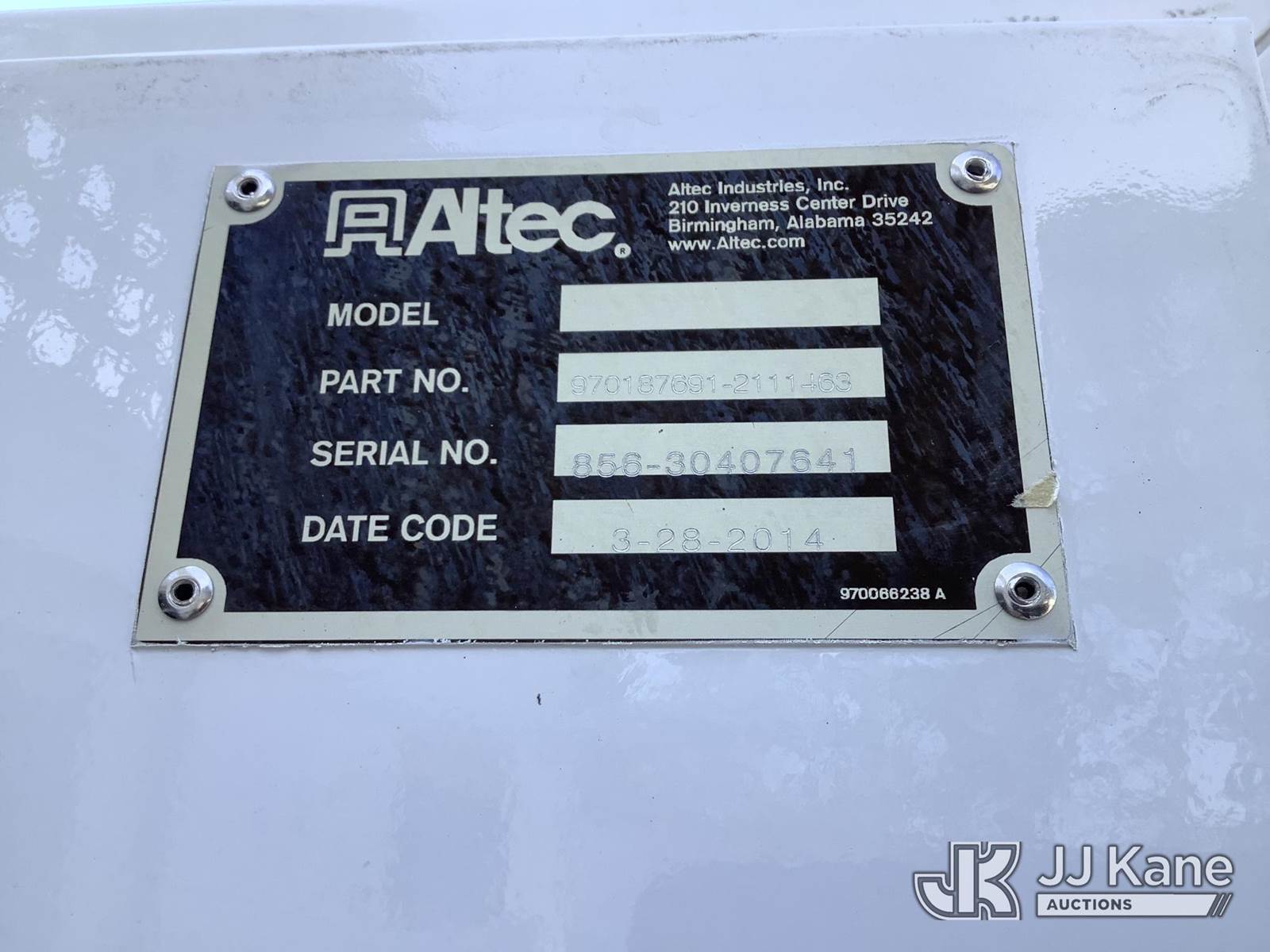 Altec D2050BTR, 30,000 Lb Digger Derrick s/n 0414FT0092, with 50' sheave height, 2 spd digger, tip winch, pole grabs & riding console, rear mounted on 2014 Freightliner M2 106 T/A Flatbed/Utility Truck, 8.9L L6 DIESEL 6X4, Auto, (039,606 miles) (Runs, Moves & Upper Operates) (Outriggers Operate, Rust Damage, Minor Body Damage) This is a Titled Item NOTE: This unit is being sold AS IS/WHERE IS via Timed Auction and is located in Graysville, AL. Inspection & preview days for this unit are by appointment only; please contact us at contact@jjkane.com or 84-Go-JJKane for more details. Alabama Auctioneer Michael Whitebread - License # 5592 (Manuals provided in cab) (Buyer is responsible for removal. Assistance by consignor or JJ Kane Auctions is not assured.)