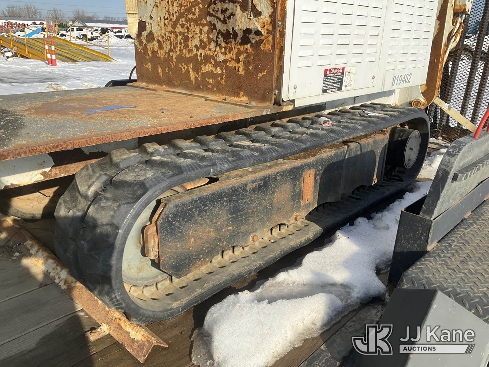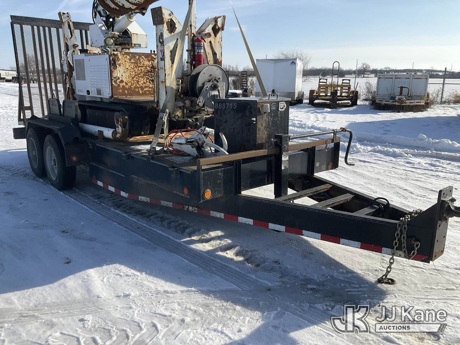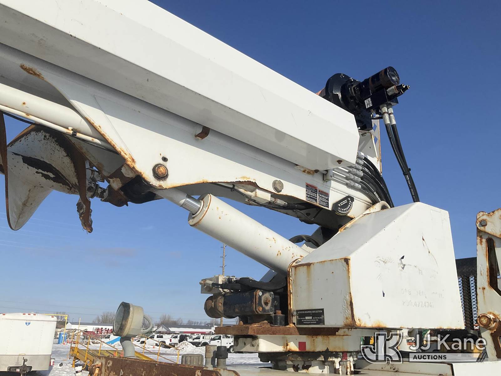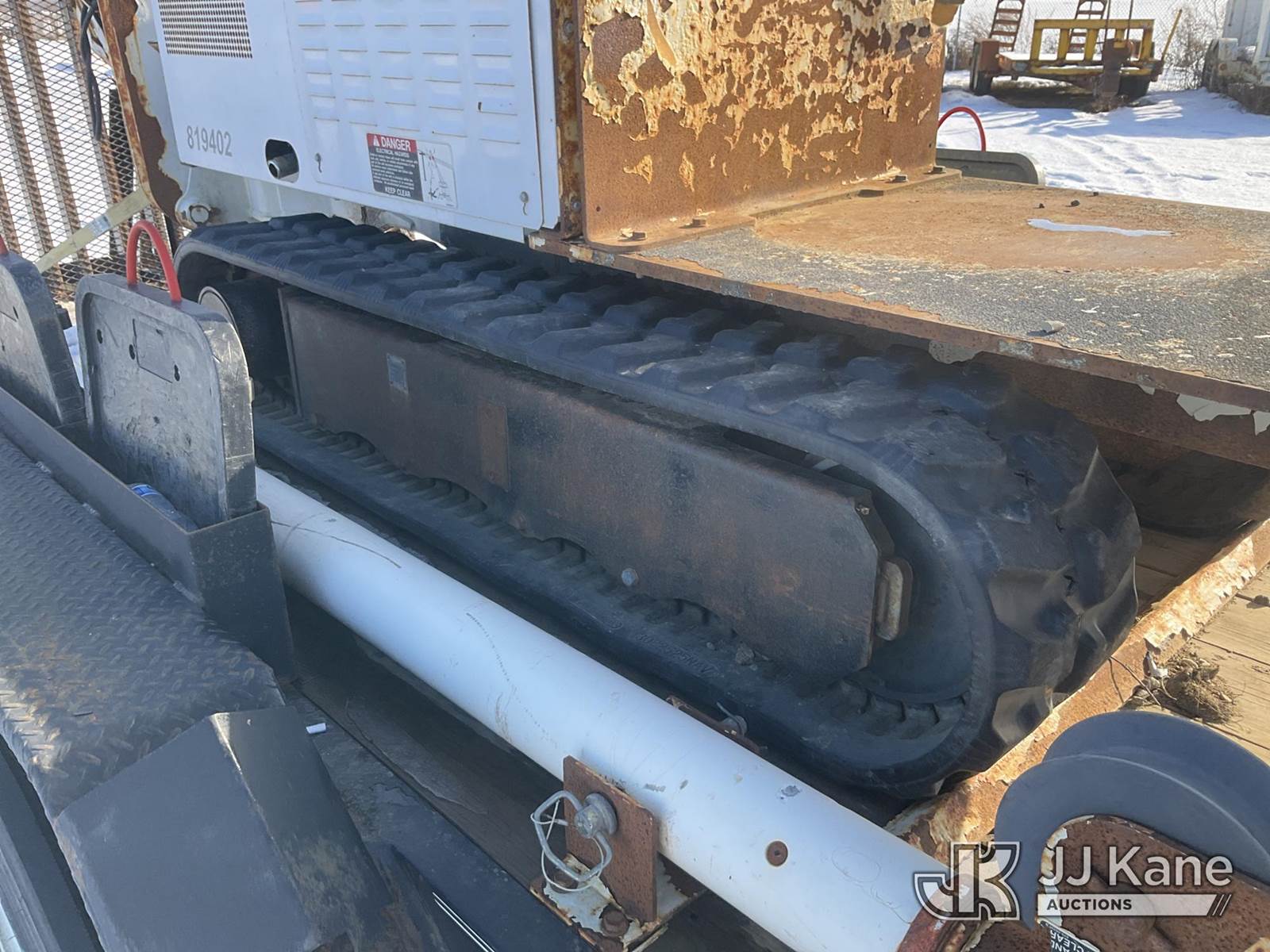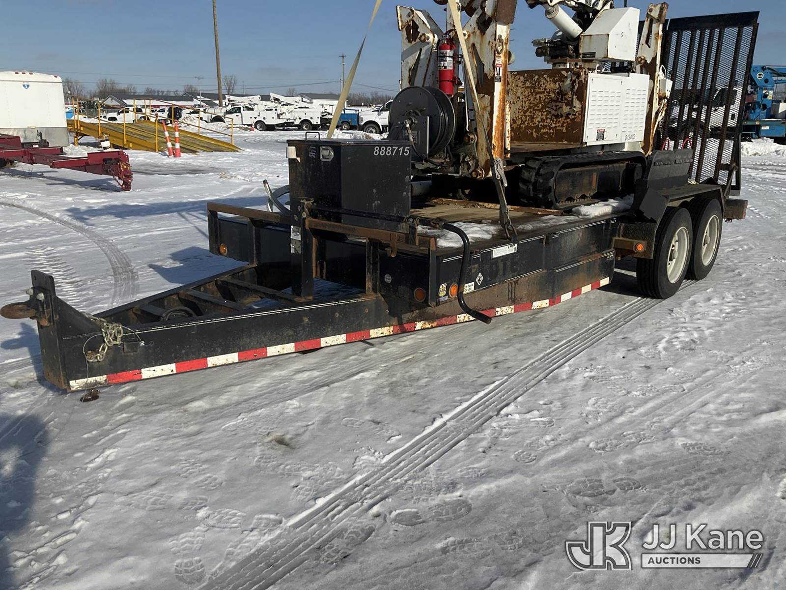 Altec DB37, 3,800 Lb Back Yard Digger Derrick s/n 0614ET0642, with 37 ft. sheave height, 8 ft. pin on jib, three section hydraulic boom, heel winch, pole guides, auger, mounted on 2014 Altec Crawler Back Yard Carrier, s/n C64180, Kubota Hydraulic Drive, diesel, with wireless remote (condition unknown), rubber tracks, four hydraulic outriggers, sells with support trailer ID 1569446 (Runs, Does Not Move, Upper Condition Unknown) (Jump to Start, Rust, Pole Guide Removed) (Reads 652 hours) NOTE: This unit is being sold AS IS/WHERE IS via Timed Auction and is located in Charlotte, MI. Inspection & preview days for this unit are the 2 business days prior to the first day of items closing for this auction, item is located at 750 Island Hwy Charlotte, MI 48813 and hours of operations are 8a-4p. For pre-sale questions, please contact Corey Cook at (517) 983-0796 or corey.cook@jjkane.com (Manuals provided in cab) (Buyer is responsible for removal. Assistance by consignor or JJ Kane Auctions is not assured.)