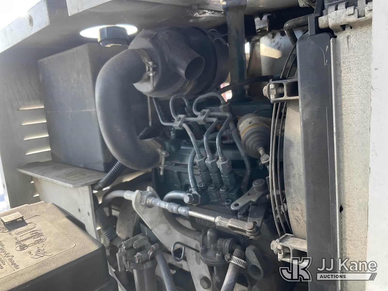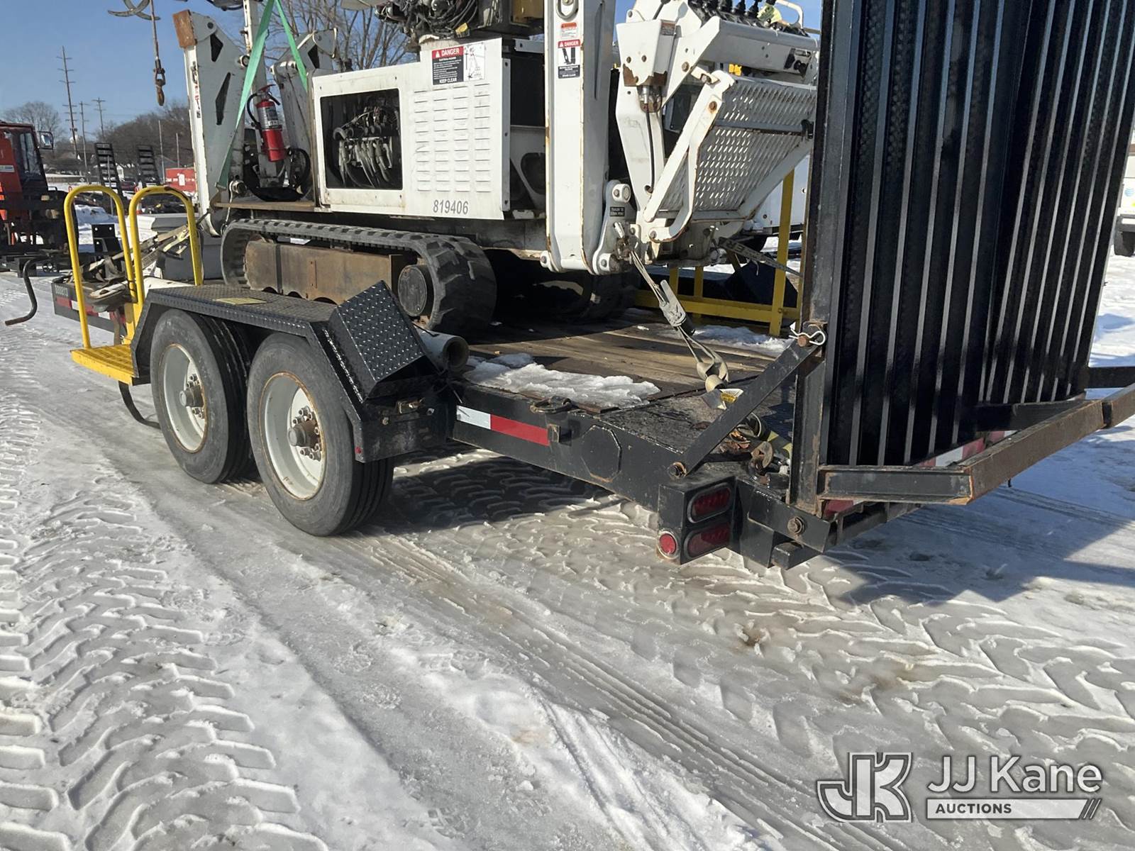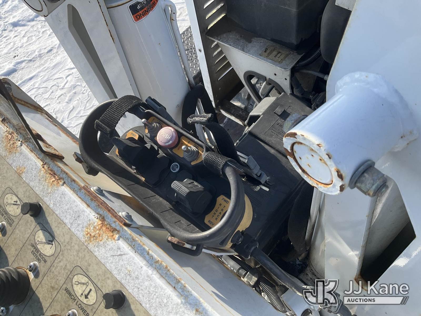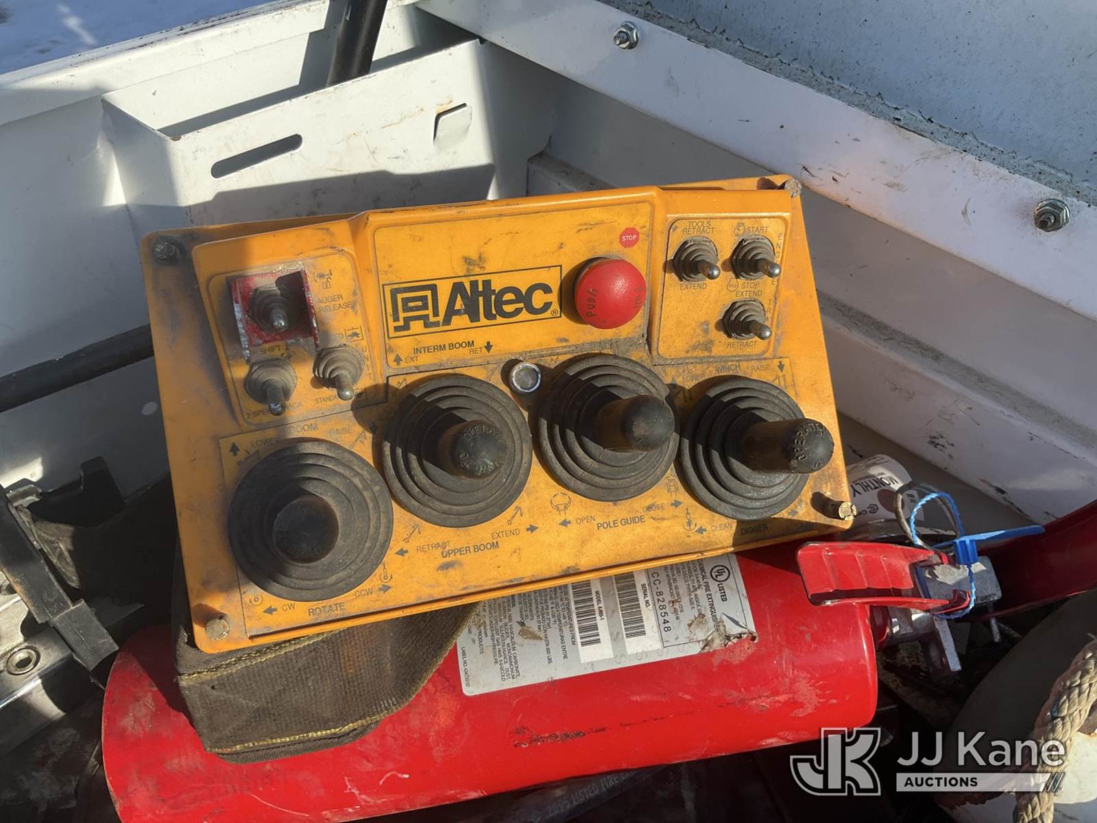 Altec DB37, 3,800 Lb Back Yard Digger Derrick s/n 0614ET0640, with 37 ft. sheave height, 8 ft. pin on jib, three section hydraulic boom, heel winch, pole guides, auger, mounted on 2014 Altec Crawler Back Yard Carrier, Kubota Hydraulic Drive, diesel, with wireless remote (condition unknown), rubber tracks, four hydraulic outriggers, sells with support trailer ID 1569448 (Runs, Does Not Move, Upper Condition Unknown) (Red Tagged, Damage to Rotation Gear, Damage to Upper Boom, Jump to Start, Engine Cover Panels Missing) (**Dealer Only** Seller states this item has been removed from service due to the listed safety repairs that were not completed. The safety items below must be completed by an approved upper OEM facility before the unit can return to service: UNIT INVOLVED IN ROLLOVER INCIDENT; REQUIRES MAJOR UNIT DAMAGE INSPECTION; COMPLETE ANY REQUIRED TESTING AND REPAIRS AFTER INSPECTIONS ARE COMPLETED.) (Bidding Restricted to Licensed Vehicle Dealers Only), NOTE: This unit is being sold AS IS/WHERE IS via Timed Auction and is located in Charlotte, MI. Inspection & preview days for this unit are the 2 business days prior to the first day of items closing for this auction, item is located at 750 Island Hwy Charlotte, MI 48813 and hours of operations are 8a-4p. For pre-sale questions, please contact Corey Cook at (517) 983-0796 or corey.cook@jjkane.com (Manuals provided in cab) (Buyer is responsible for removal. Assistance by consignor or JJ Kane Auctions is not assured.)