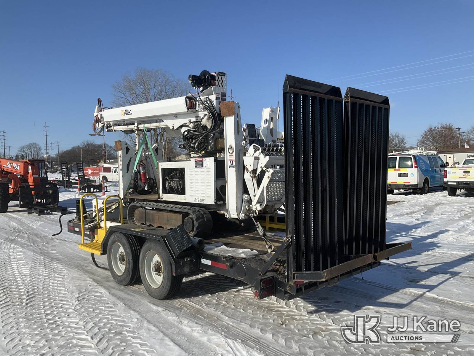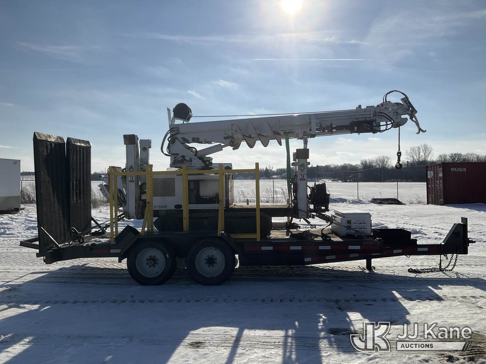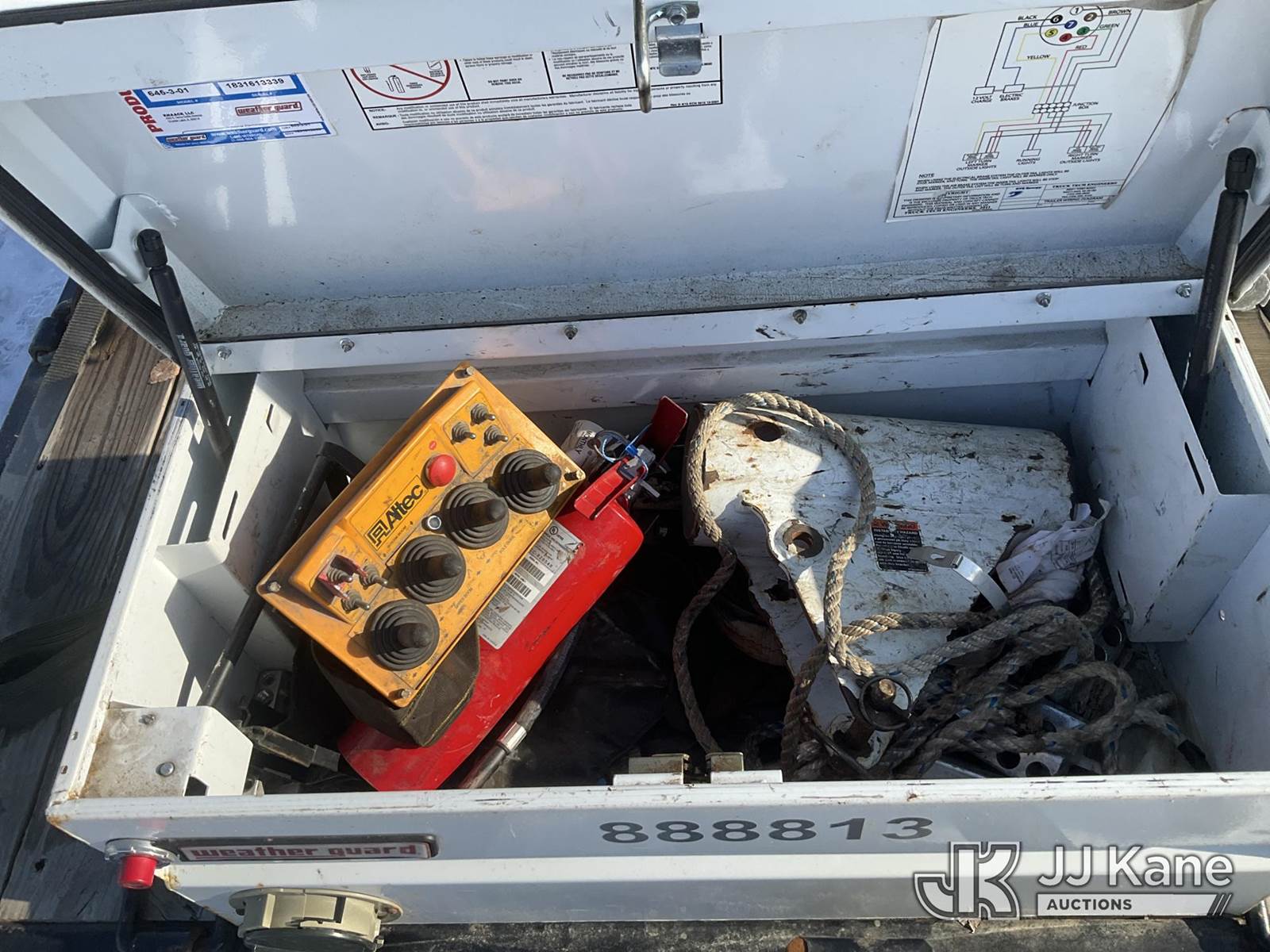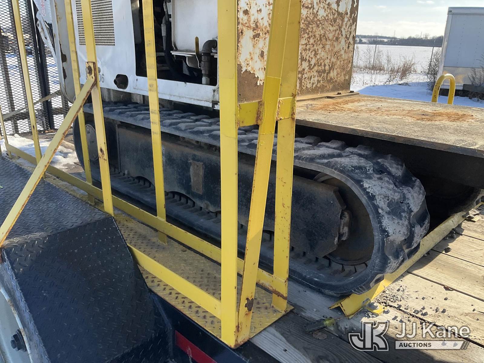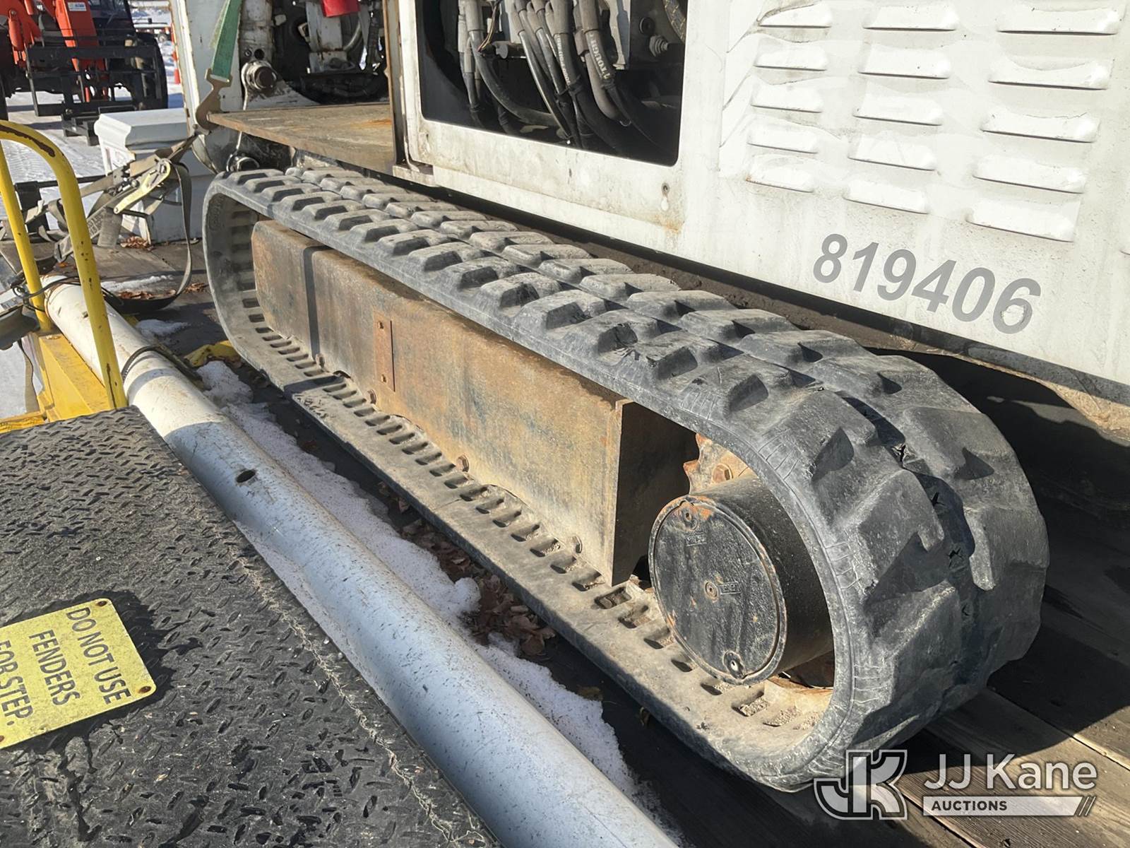 Altec DB37, 3,800 Lb Back Yard Digger Derrick s/n 0614ET0640, with 37 ft. sheave height, 8 ft. pin on jib, three section hydraulic boom, heel winch, pole guides, auger, mounted on 2014 Altec Crawler Back Yard Carrier, Kubota Hydraulic Drive, diesel, with wireless remote (condition unknown), rubber tracks, four hydraulic outriggers, sells with support trailer ID 1569448 (Runs, Does Not Move, Upper Condition Unknown) (Red Tagged, Damage to Rotation Gear, Damage to Upper Boom, Jump to Start, Engine Cover Panels Missing) (**Dealer Only** Seller states this item has been removed from service due to the listed safety repairs that were not completed. The safety items below must be completed by an approved upper OEM facility before the unit can return to service: UNIT INVOLVED IN ROLLOVER INCIDENT; REQUIRES MAJOR UNIT DAMAGE INSPECTION; COMPLETE ANY REQUIRED TESTING AND REPAIRS AFTER INSPECTIONS ARE COMPLETED.) (Bidding Restricted to Licensed Vehicle Dealers Only), NOTE: This unit is being sold AS IS/WHERE IS via Timed Auction and is located in Charlotte, MI. Inspection & preview days for this unit are the 2 business days prior to the first day of items closing for this auction, item is located at 750 Island Hwy Charlotte, MI 48813 and hours of operations are 8a-4p. For pre-sale questions, please contact Corey Cook at (517) 983-0796 or corey.cook@jjkane.com (Manuals provided in cab) (Buyer is responsible for removal. Assistance by consignor or JJ Kane Auctions is not assured.)